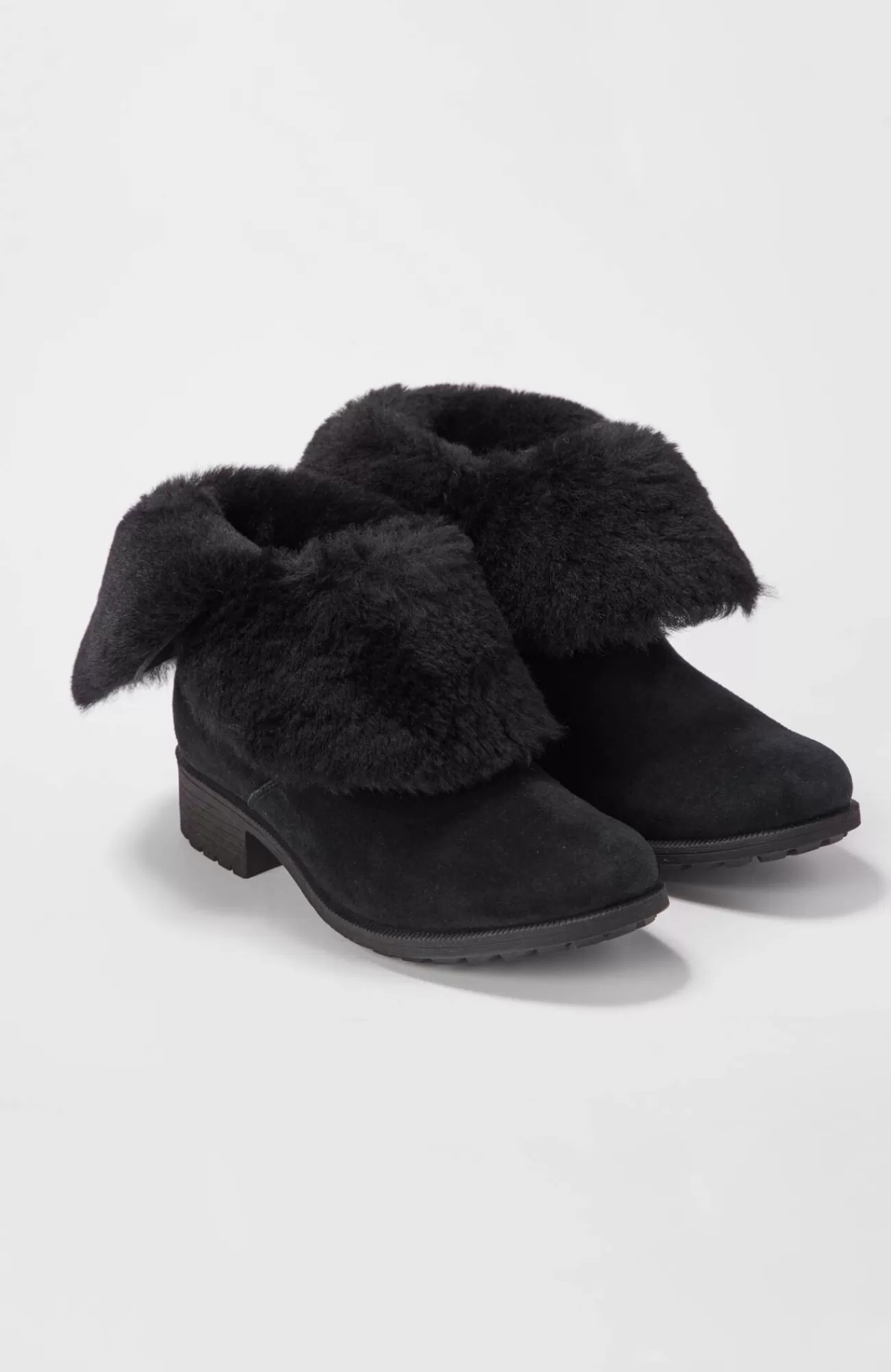 Warmth, comfort and lasting style come together in moto-inspired all-weather boots by famous maker UGG®. Seam-sealed waterproof suede uppers with a water-resistant sheepskin shaft keep your feet dry in any season. UGGpure™ wool lining in the vamp and heel counter keep your feet warm. A foam-cushioned, moisture-wicking curly sheepskin insole naturally helps to maintain a comfortable temperature so your feet don’t get cold or too warm. Removable ankle strap with a double-ring buckle and rivets. Molded rubber sole. 7” shaft. 1½” heel.