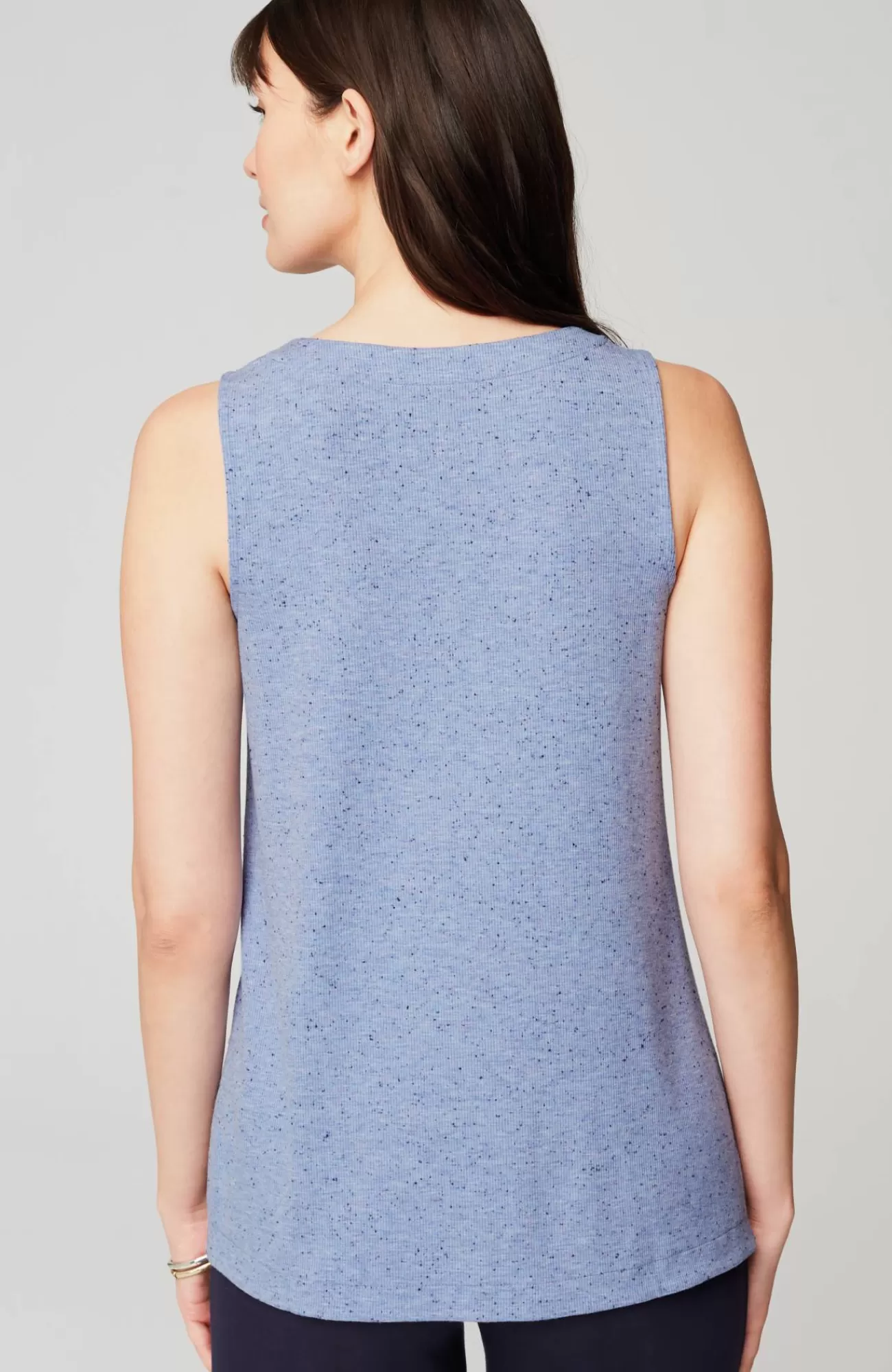 Our soft knit tank is a versatile wardrobe essential. Layer it under your favorite cardis, jackets and shirts. Crew neckline. Side vents. The seamed option has a striped panel for extra panache. Effortlessly packable knit style. Made from soft European yarns.