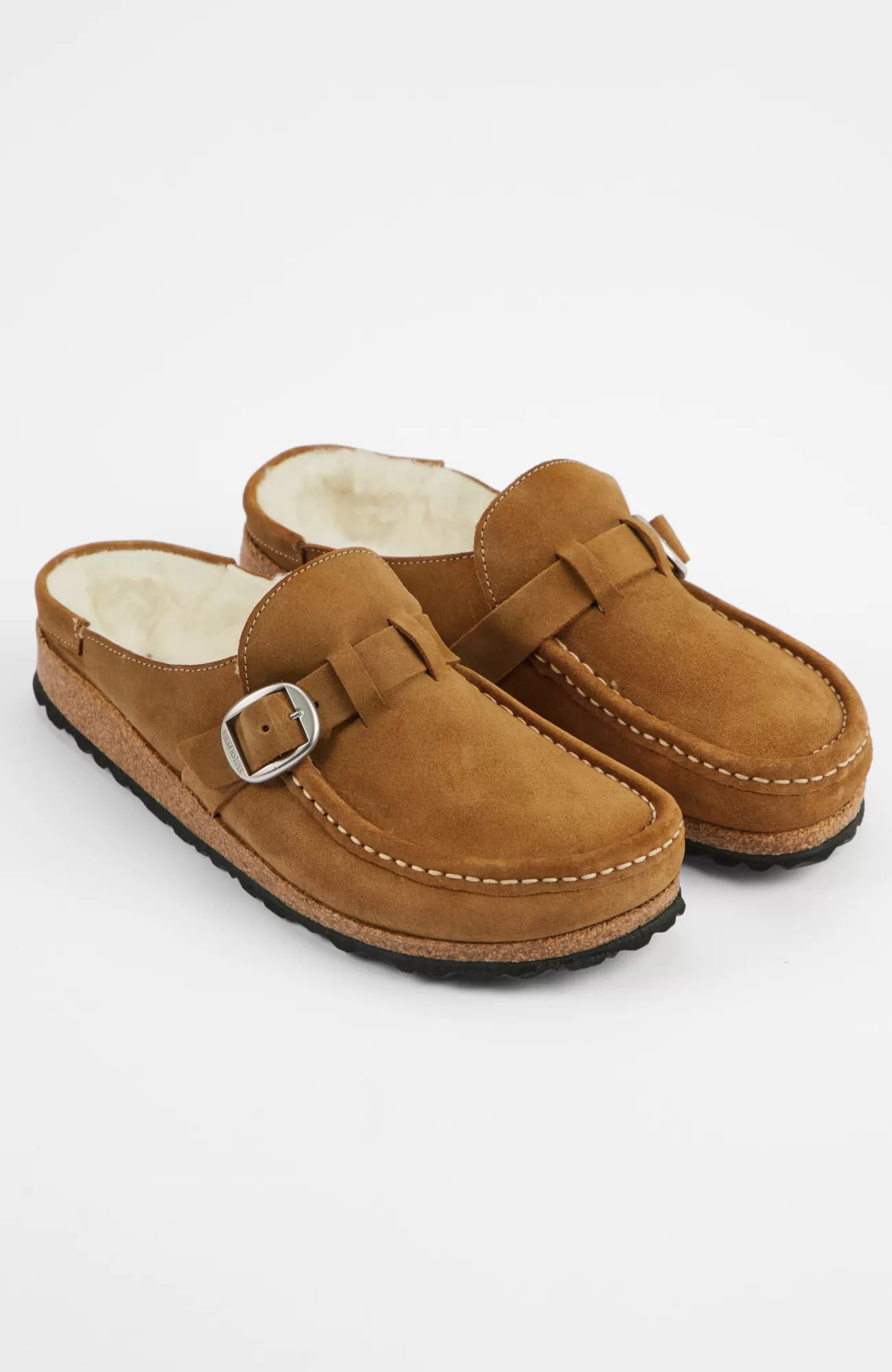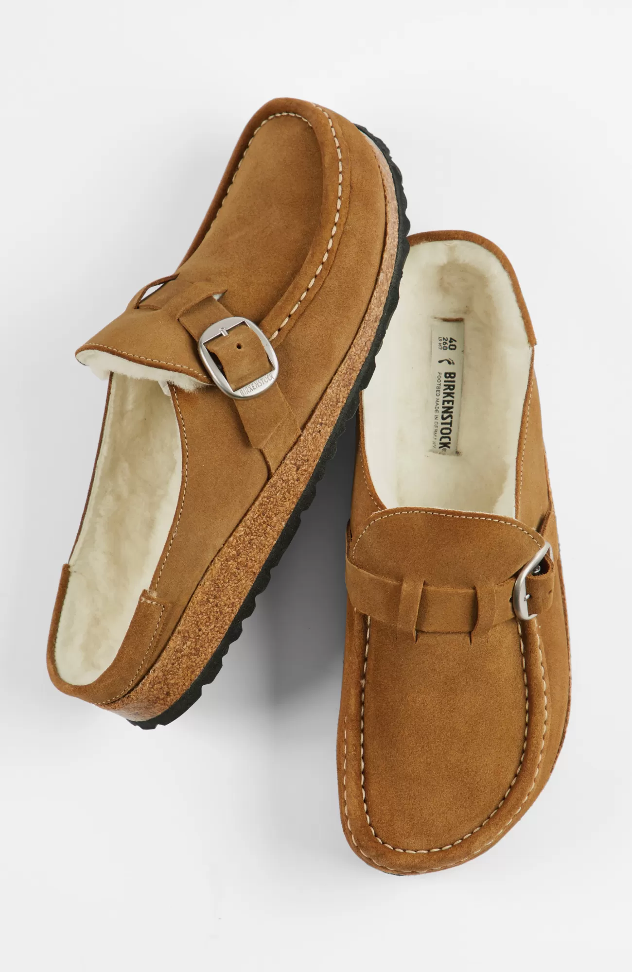 From the brand known for exceptional comfort come these suede moccasin-inspired slip-on clogs. An adjustable buckled strap at the inset lets you create a more customized fit. The roomy toe box and luxe shearling lining make it feel like you’re wearing slippers. Cork and latex footbed with arch support. EVA outsole with treads for traction and light cushioning. Catalog & Online Exclusive.