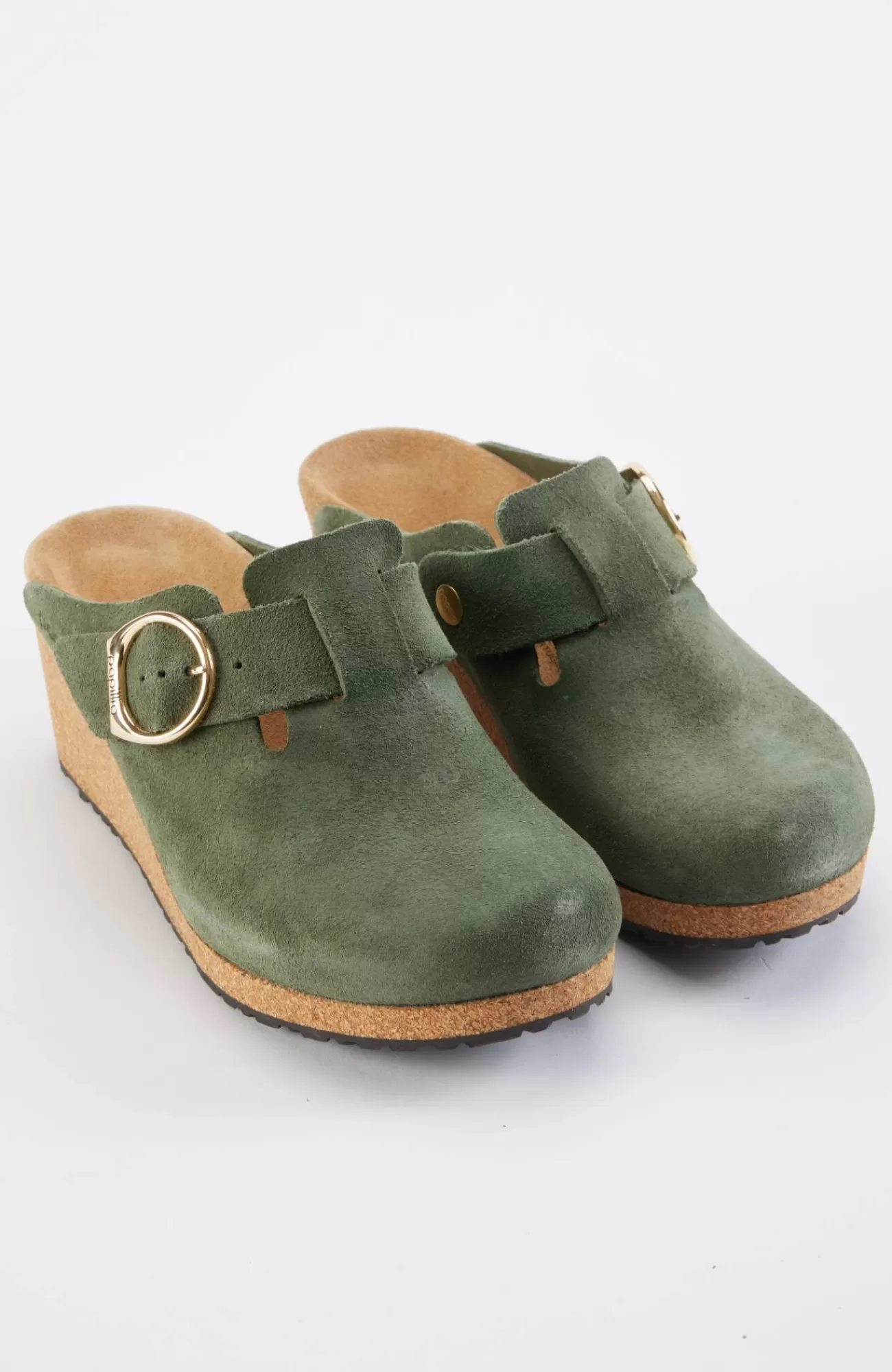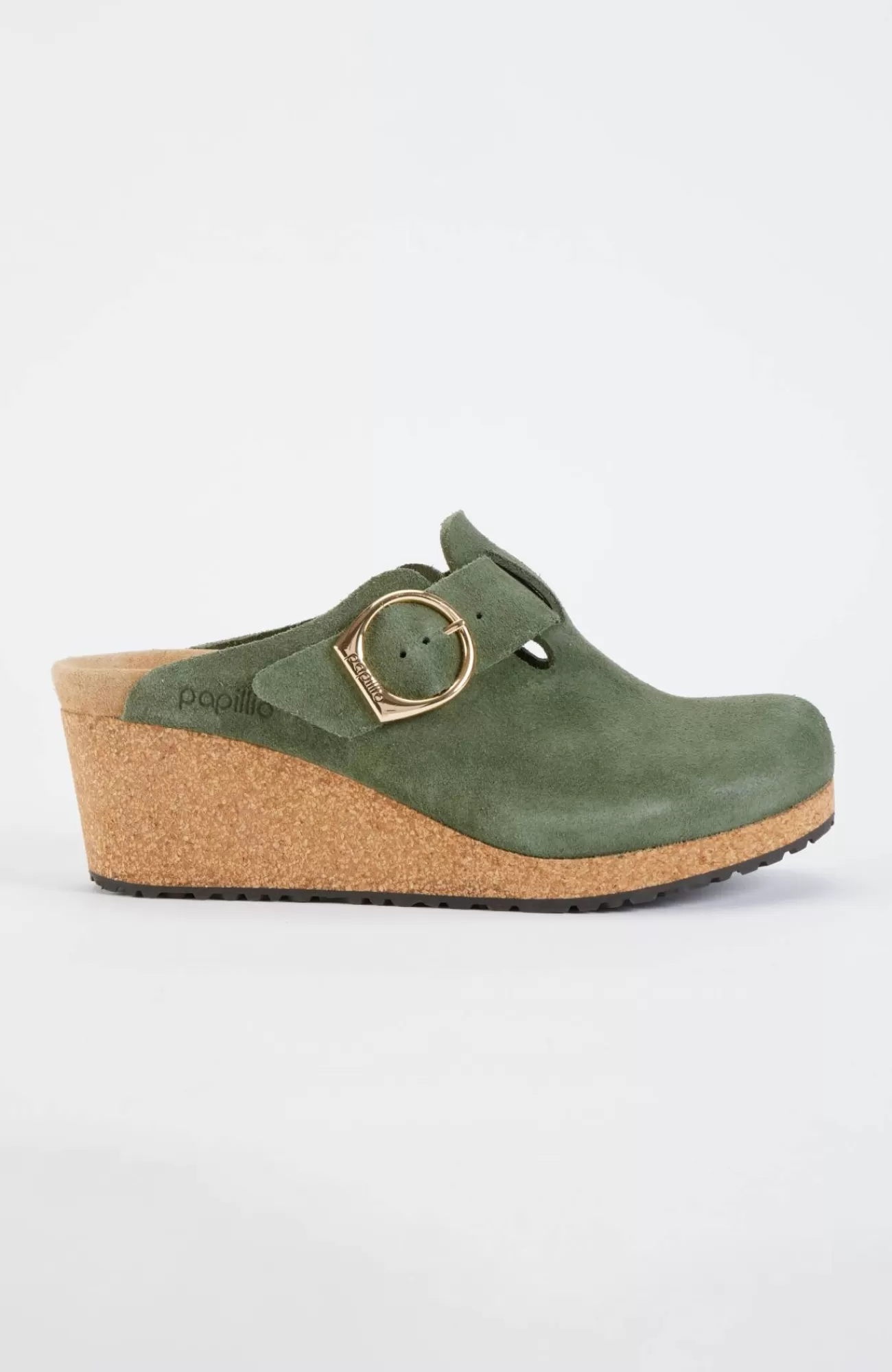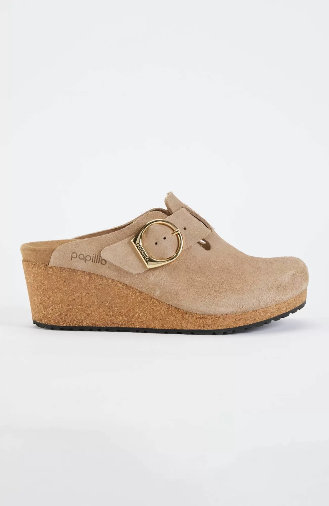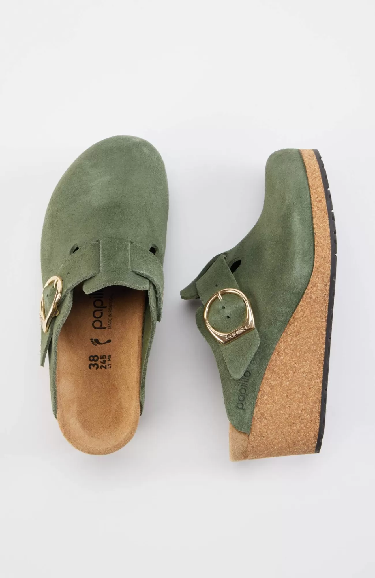 Classic Birkenstock® shoes get their latest update with a featherlight cork heel. Designed with an adjustable buckle, suede footbed, and Birkenstock's signature PU tread, which gives you all-day, lightweight traction.