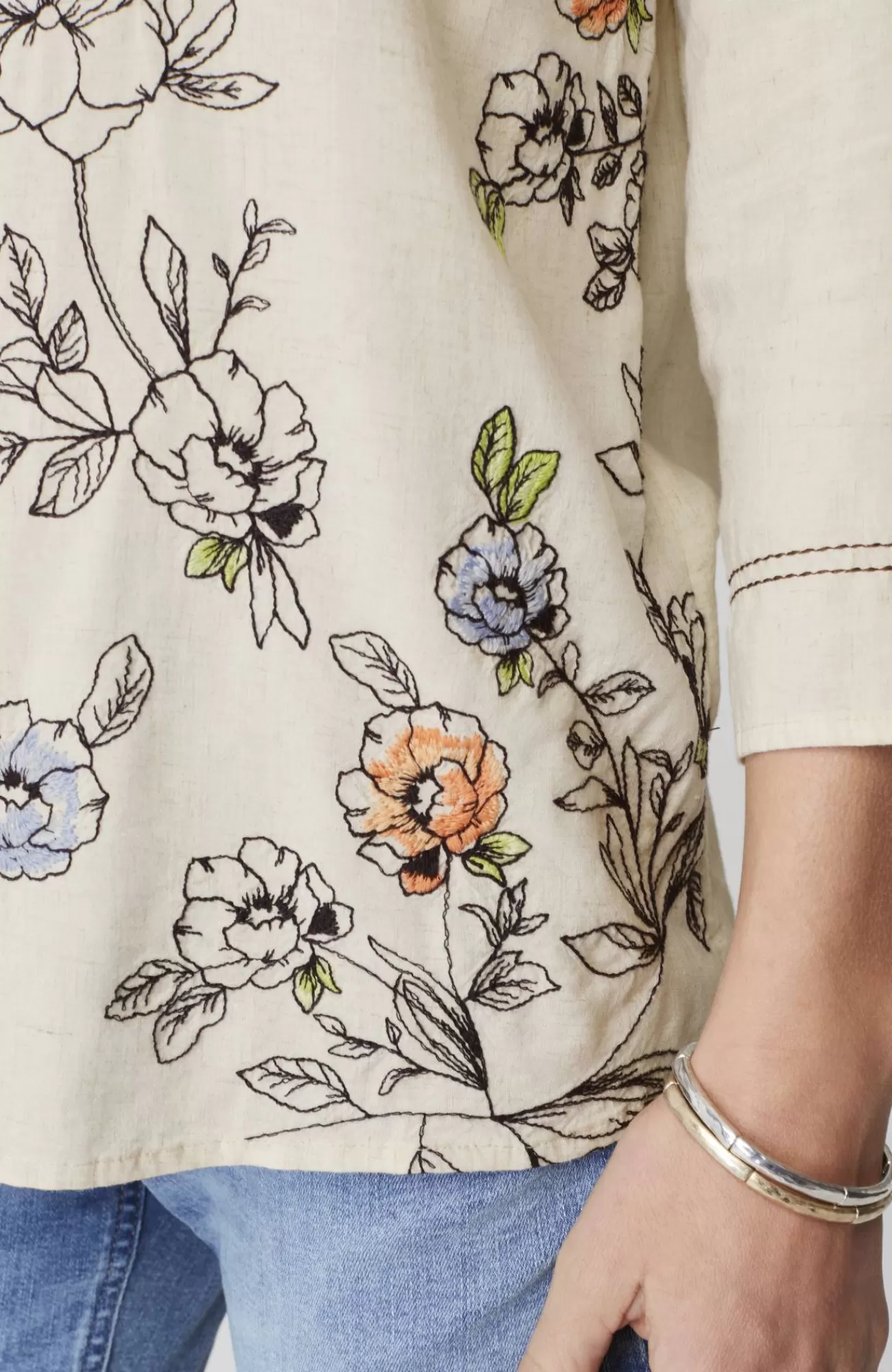 - 80% viscose rayon and 20% linen woven. Embroidery: 100% polyester.
