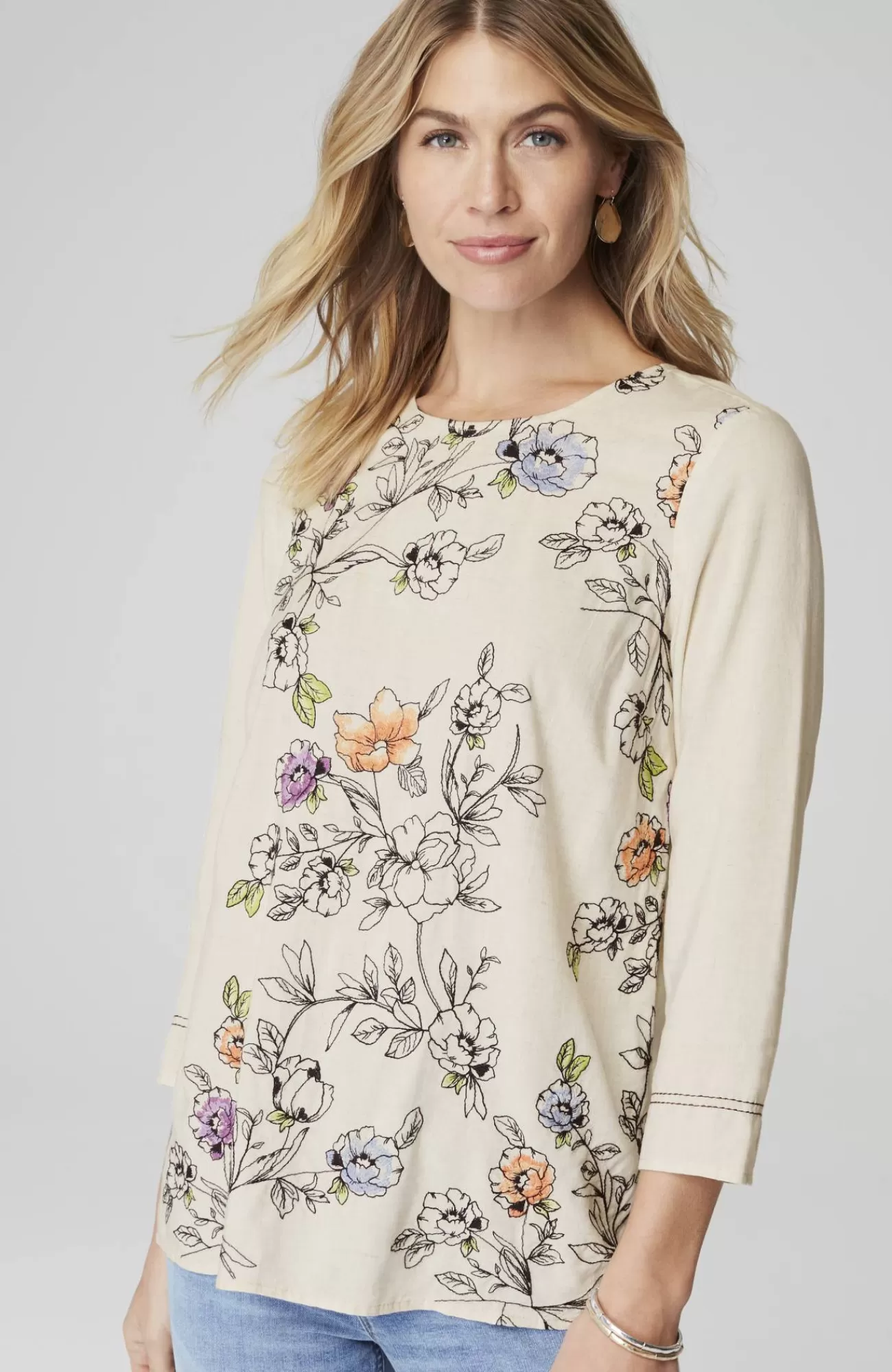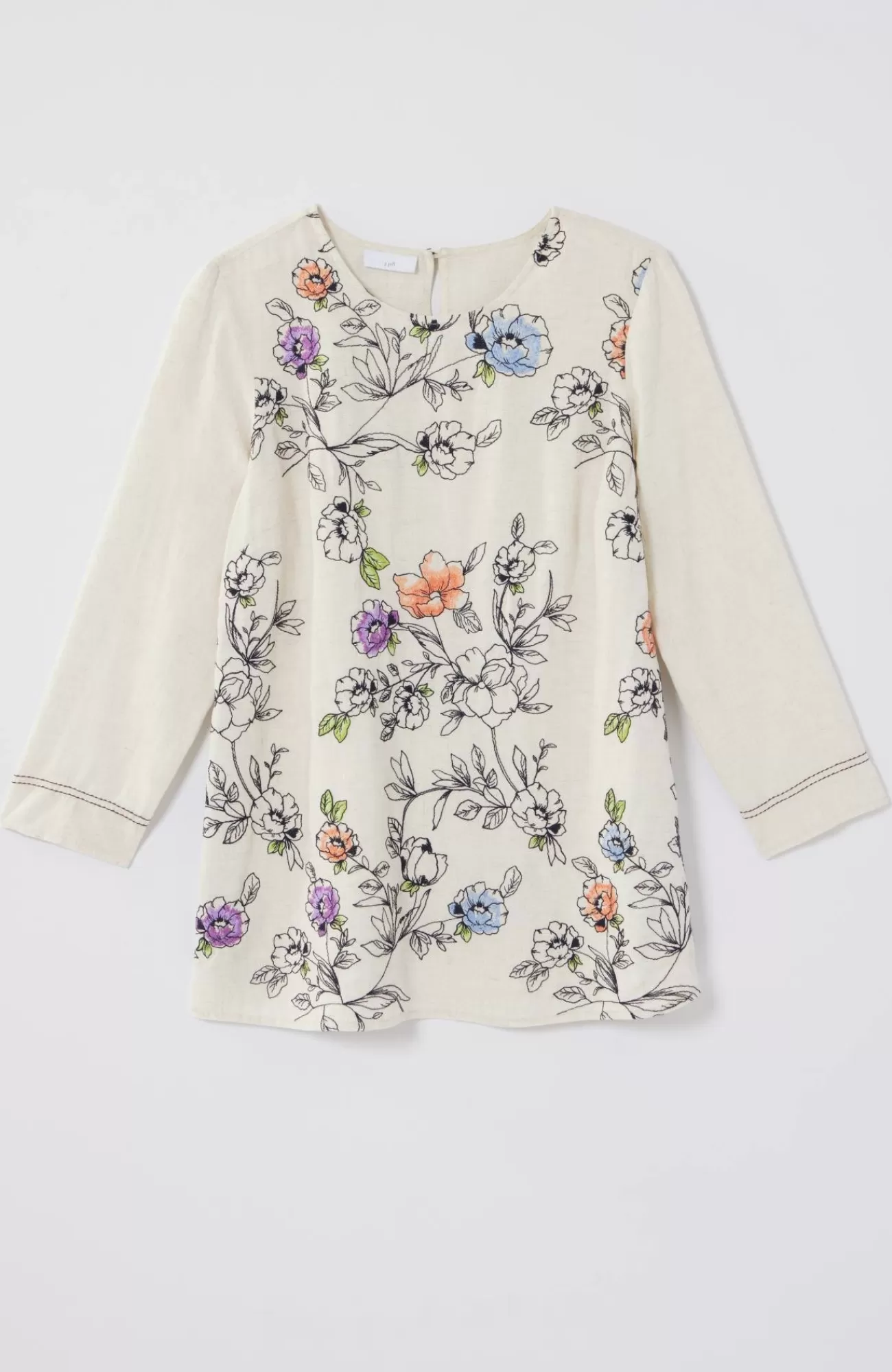 Designed to welcome warmer days. Our fresh floral pullover, with allover embroidery at the front, in a soft, lightweight spring-ready fabric. Back keyhole closure.