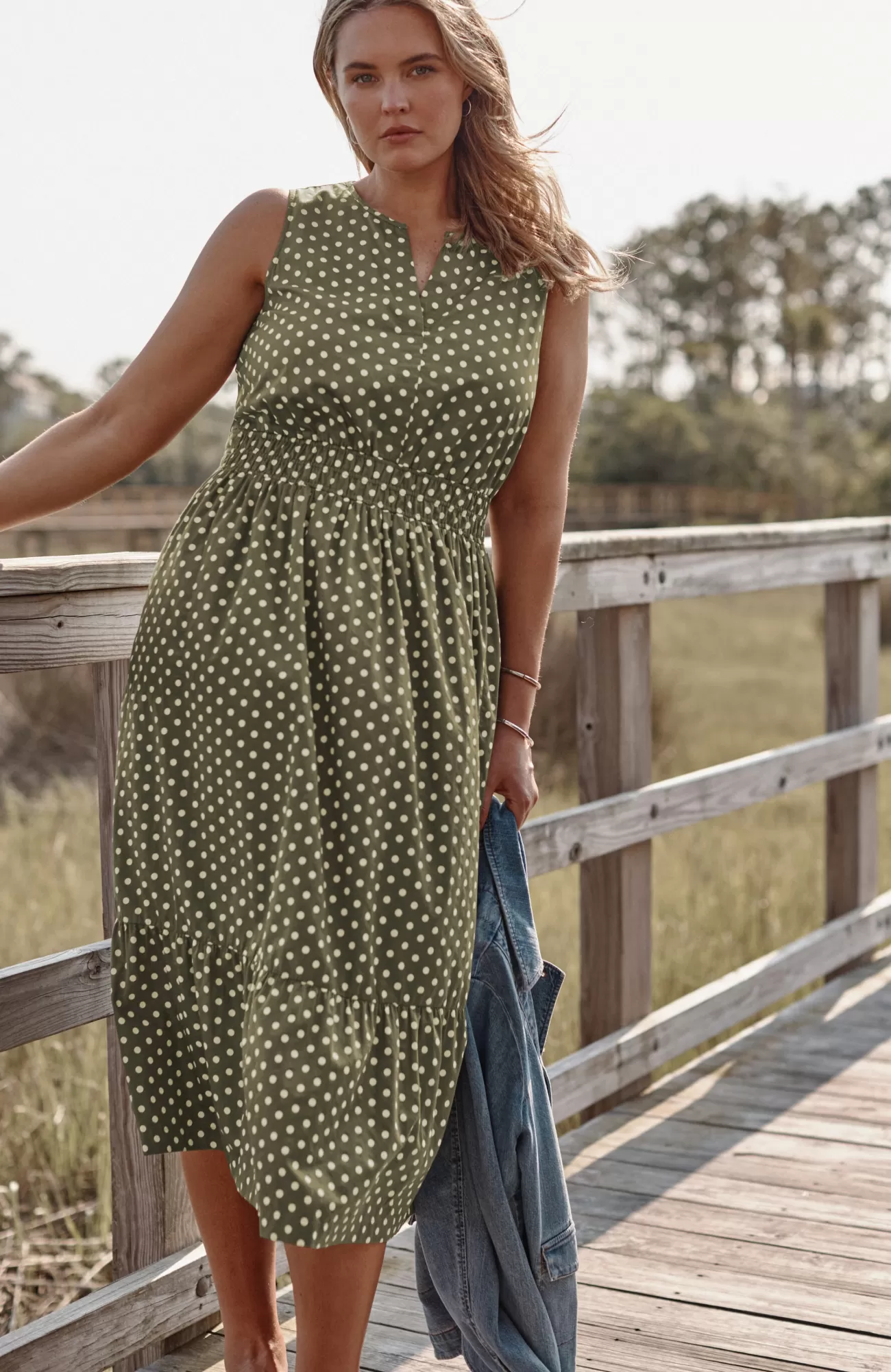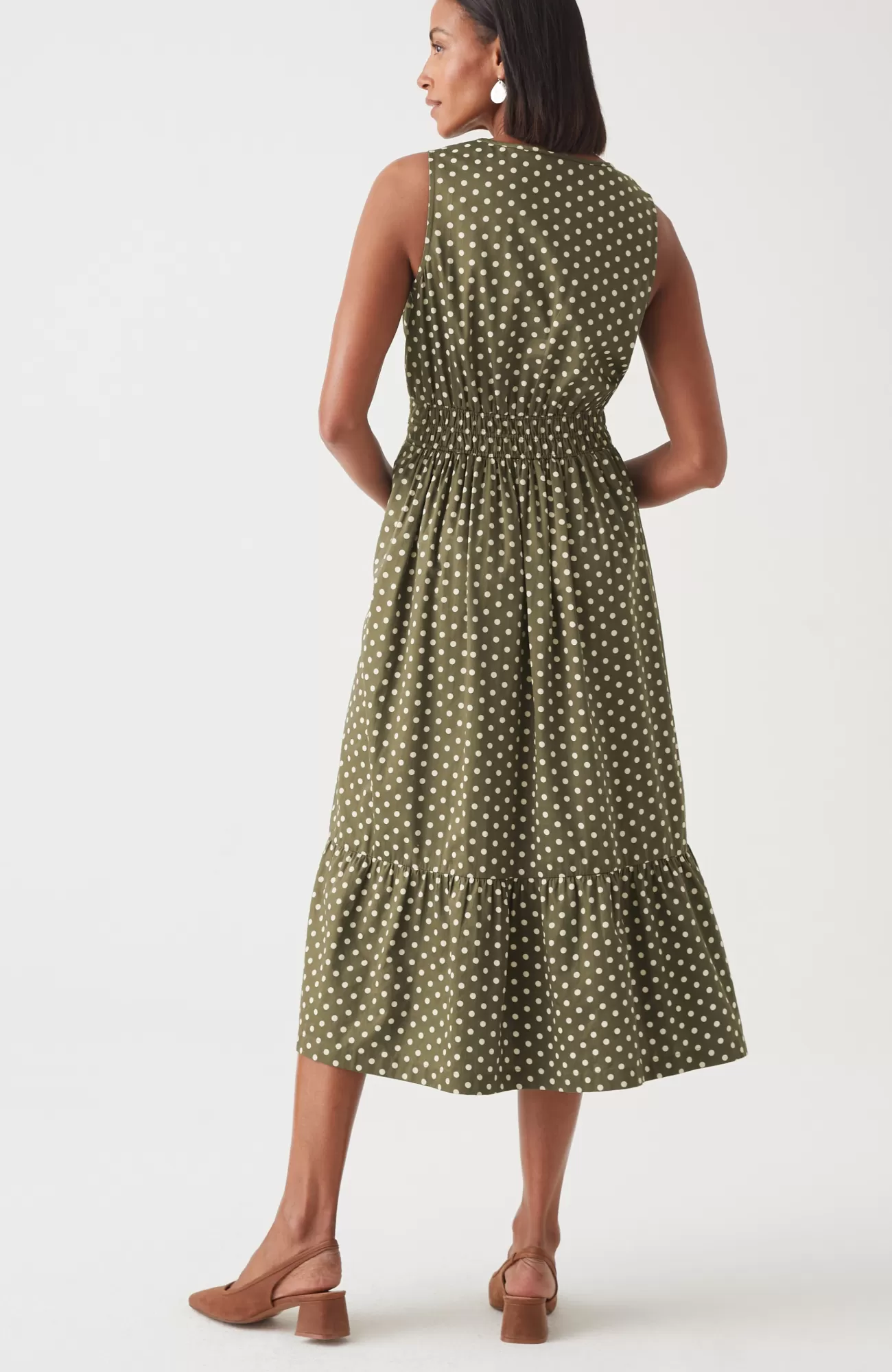 Timeless, textured and totally transitional—our midi goes from day to night and season to season with ease. We added a chic split necklne, a smocked elasticized waist for ultimate comfort, and a playful flounce at the hem for moves-with-you fluidity. Did we mention it has pockets?