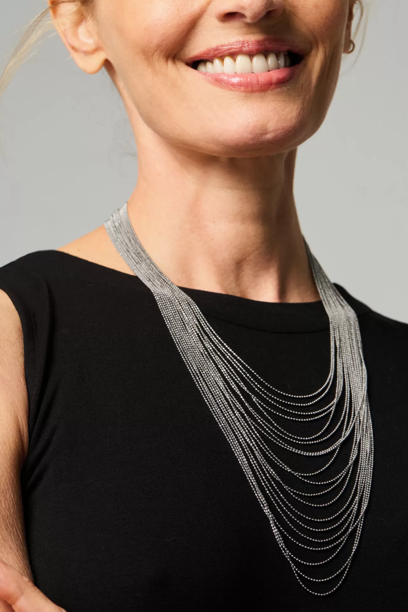 Enhance every look with 19 showstopping layers of cascading silvertone metal chains. Lobster-claw closure.