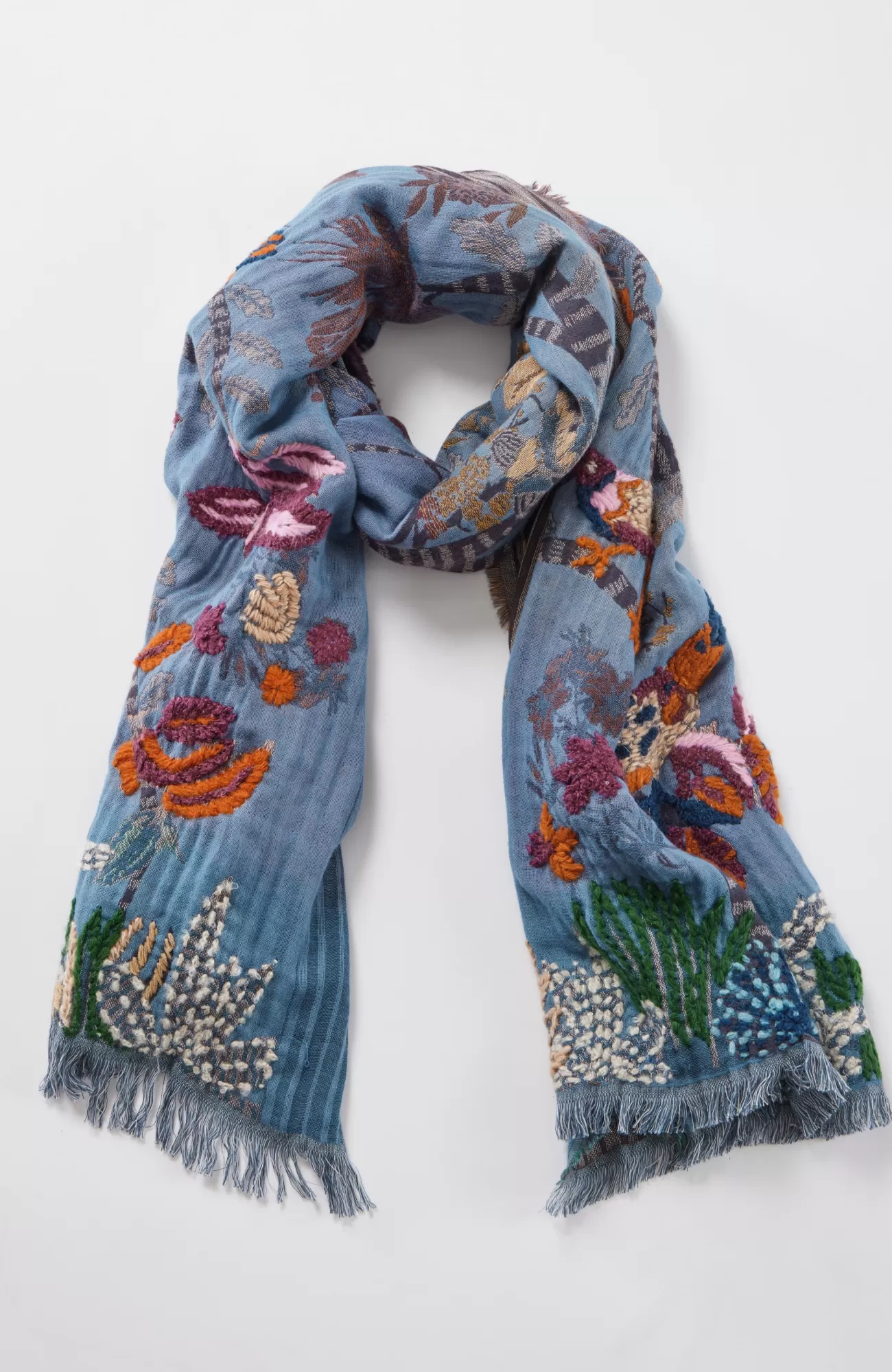 The scarf that keeps on giving. Designed with a supremely soft feel and unique, nature-inspired embroidery like bird motifs and florals. When you purchase this exclusive scarf, 100% of the net proceeds will support and empower women in communities across the US through the J.Jill Compassion Fund.