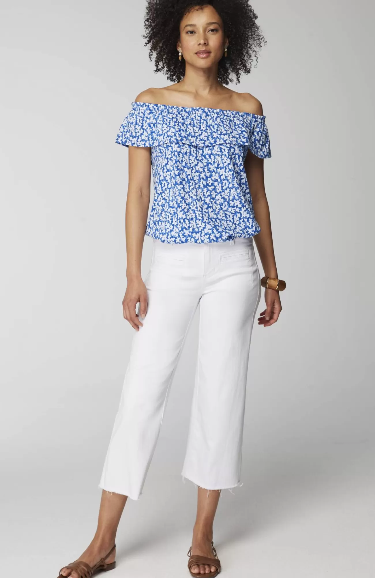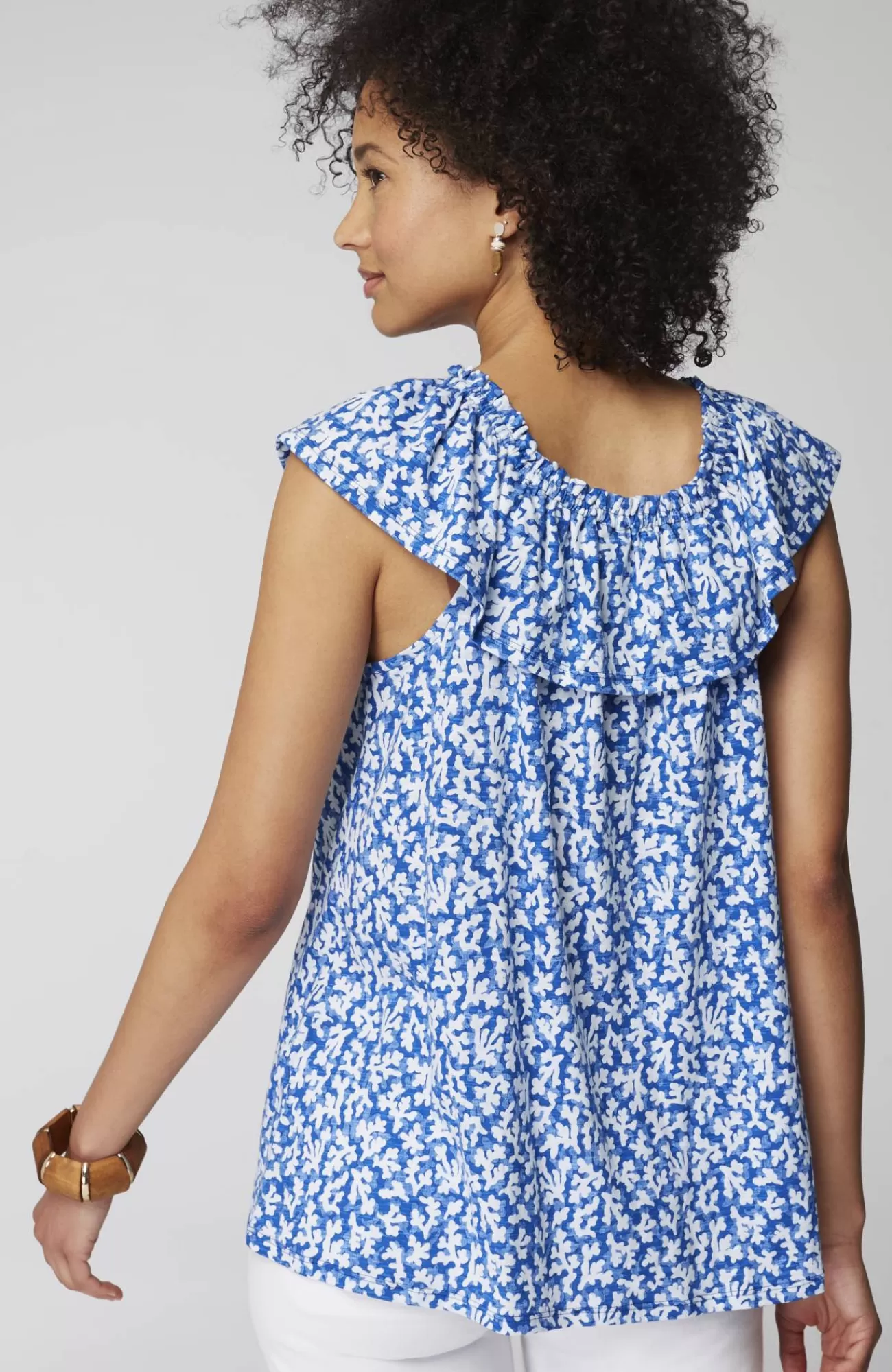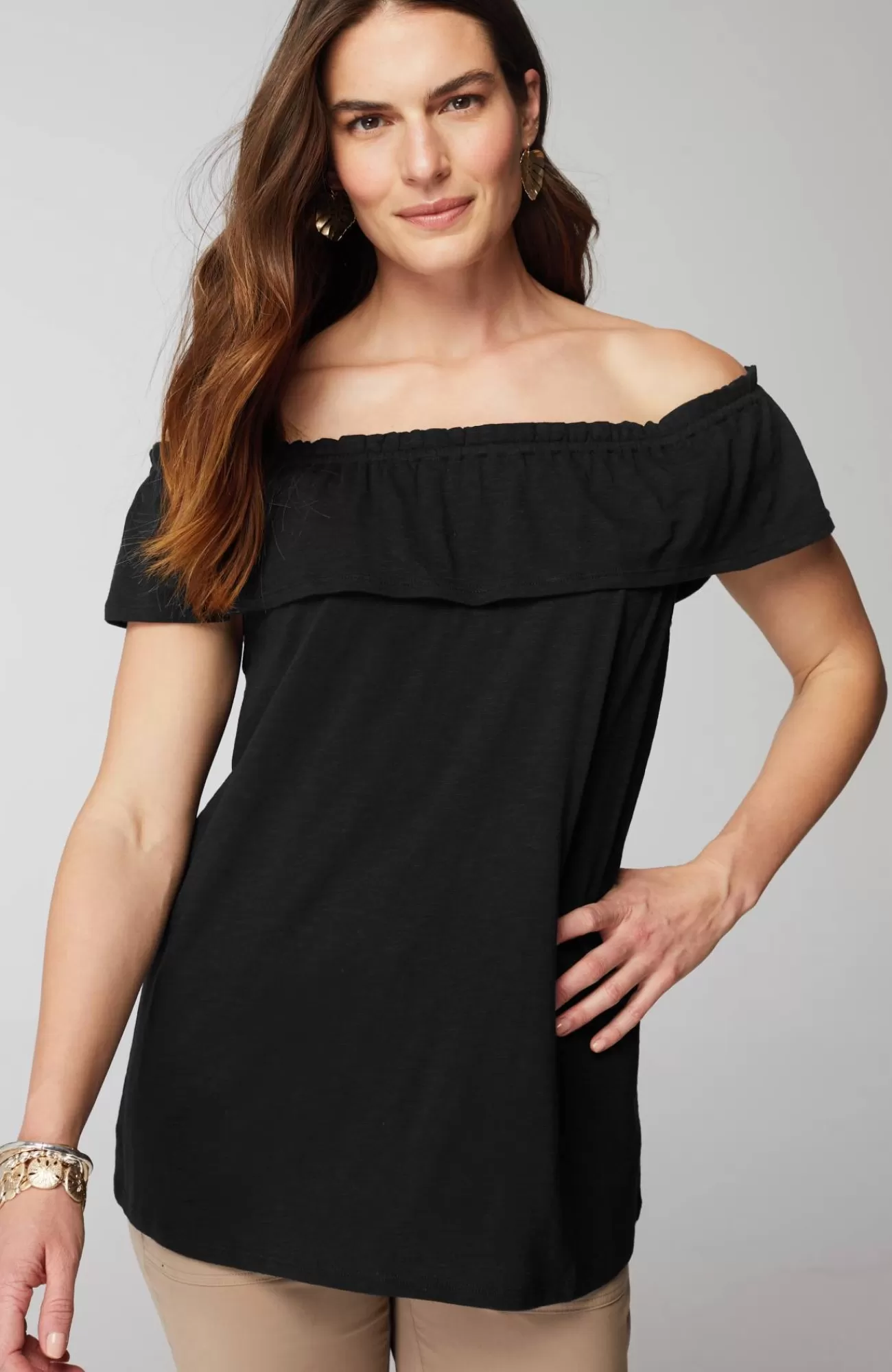 The summer top that gives you more—with a convertible ruffled neckline so you can wear it on or off the shoulder. Designed in the softest cotton blend with an easy shape, it's an effortless style to dress up or down.