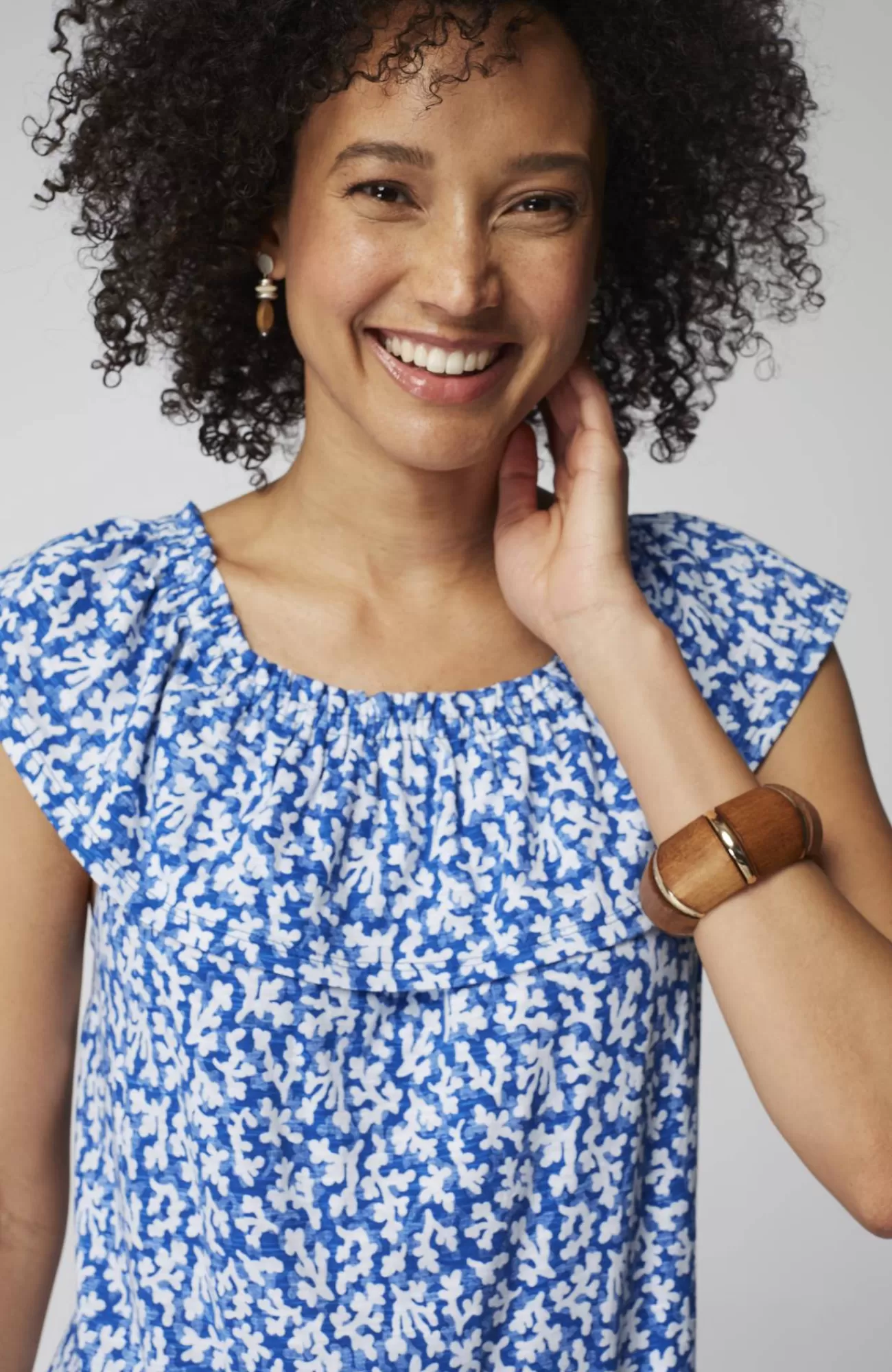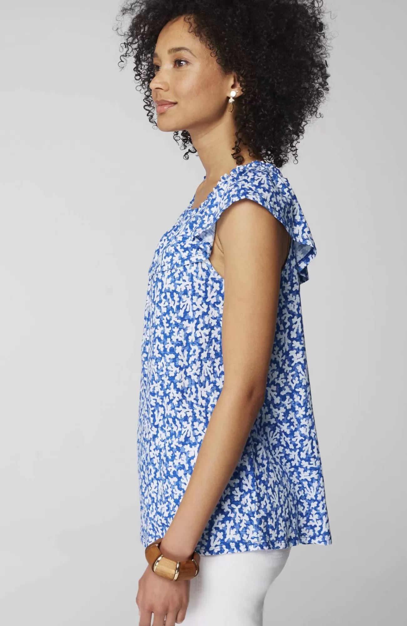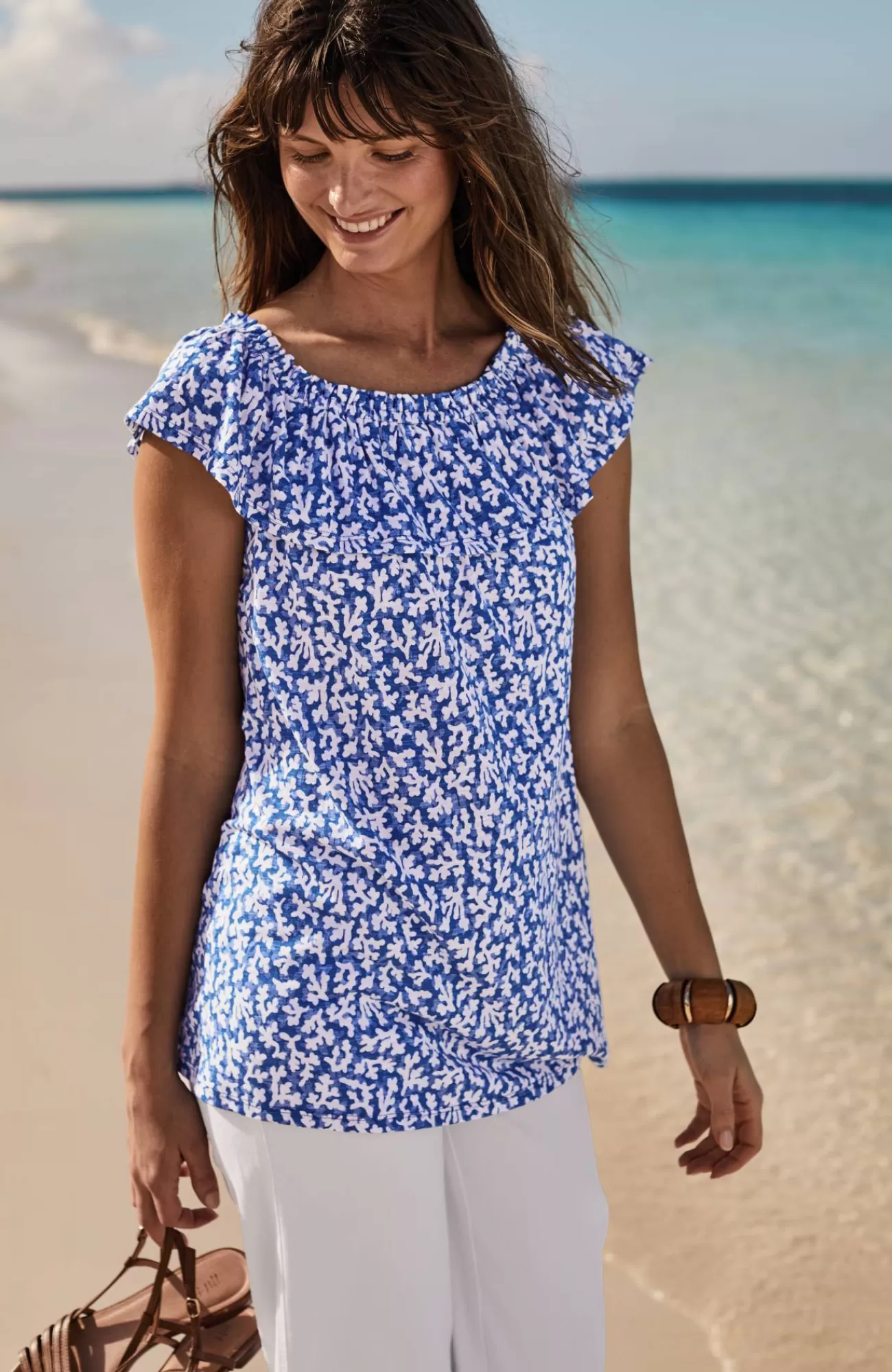 The summer top that gives you more—with a convertible ruffled neckline so you can wear it on or off the shoulder. Designed in the softest cotton blend with an easy shape, it's an effortless style to dress up or down.