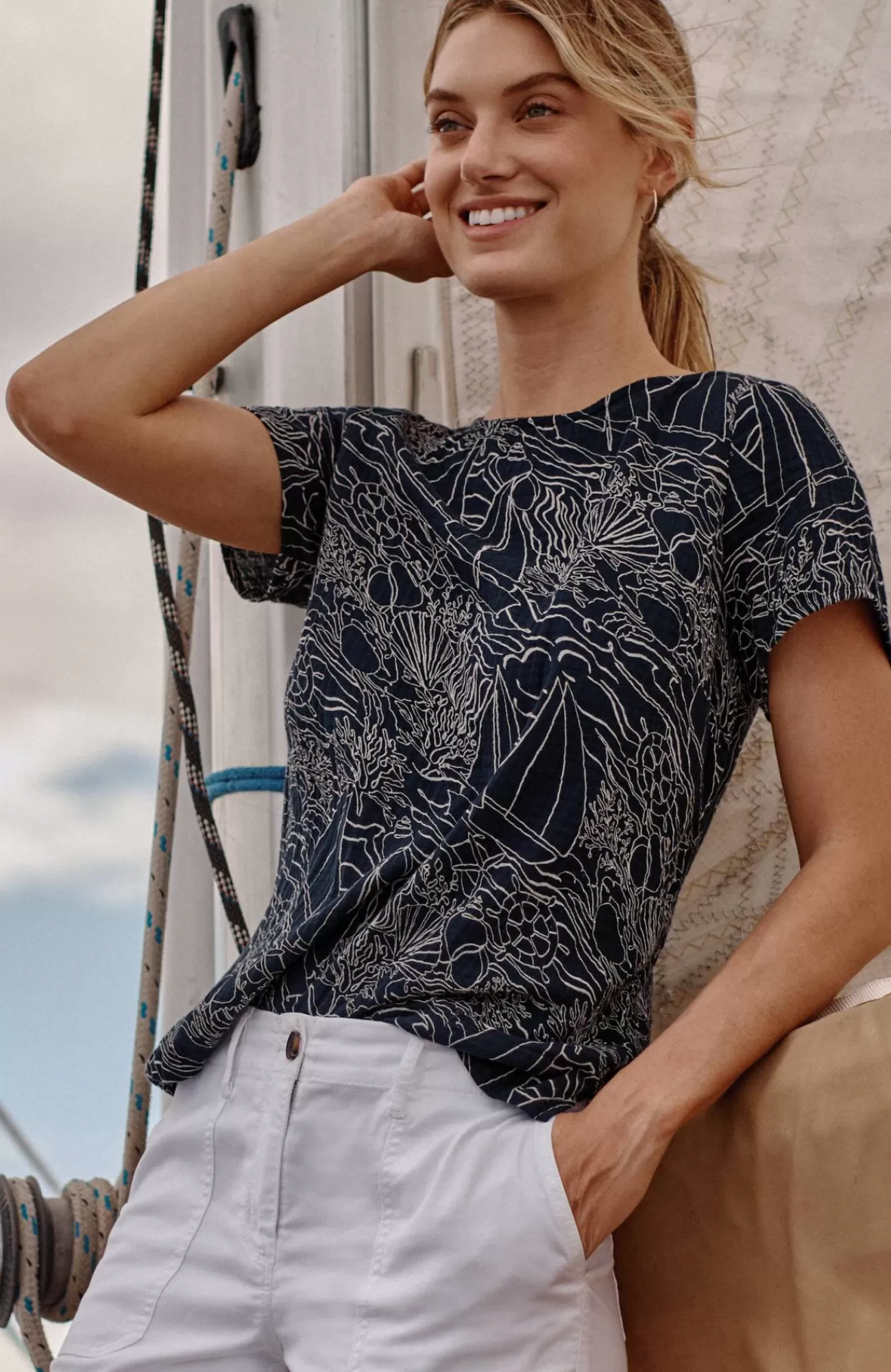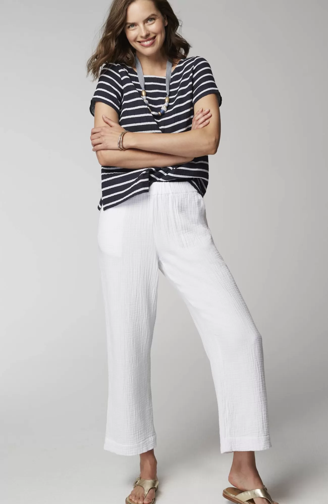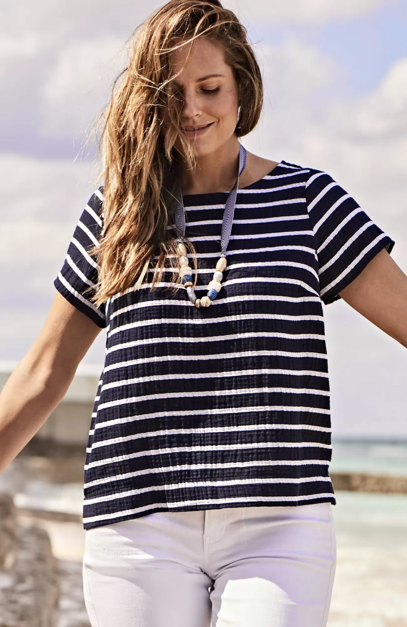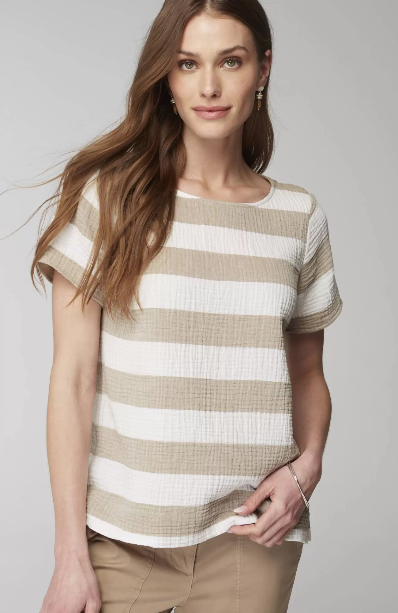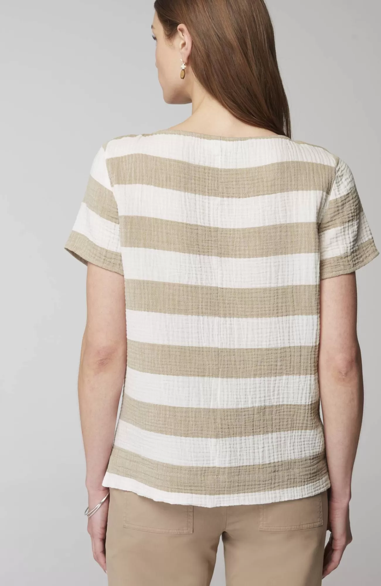 Our relaxed boat-neck top is made with a cotton-gauze fabric for a slightly more substantial look and feel that's both soft and light. It will be a warm-weather favorite as the shorter length gives you so many styling options. You'll love it with jeans, crops, shorts and skirts. Side vents.