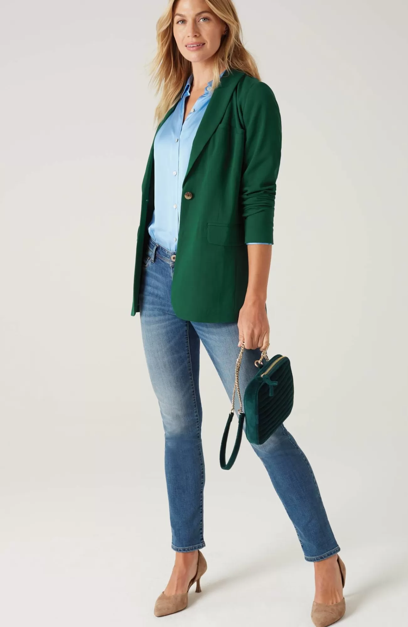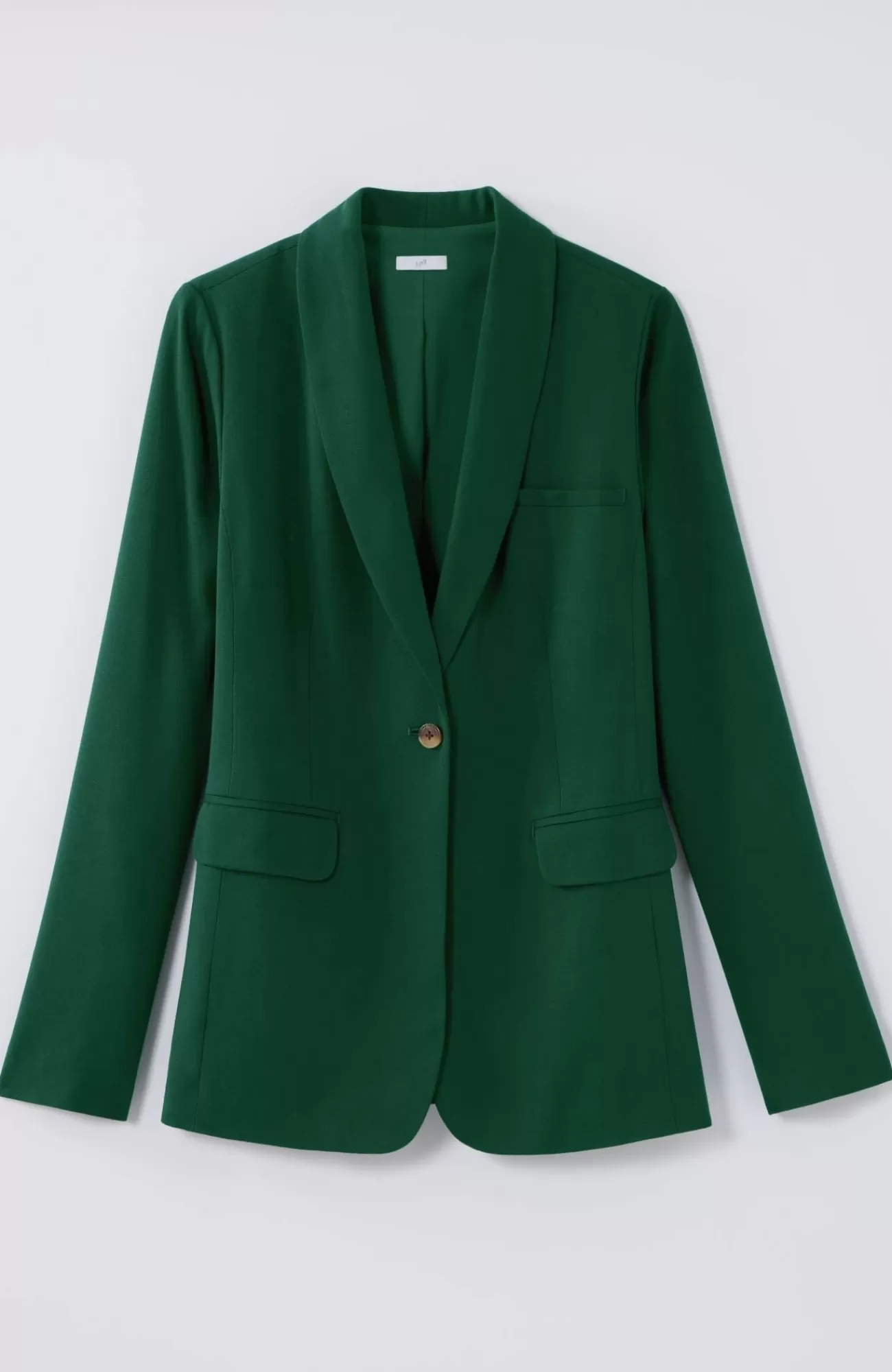Your new day-to-night layer is here with this easy and elevated shawl-collar blazer. Wear it with so many holiday outfits or pair it with our matching wide-leg trousers for a softer take on suiting. Fully lined with single-button closure, chest welt pocket, flap pockets and a back vent.