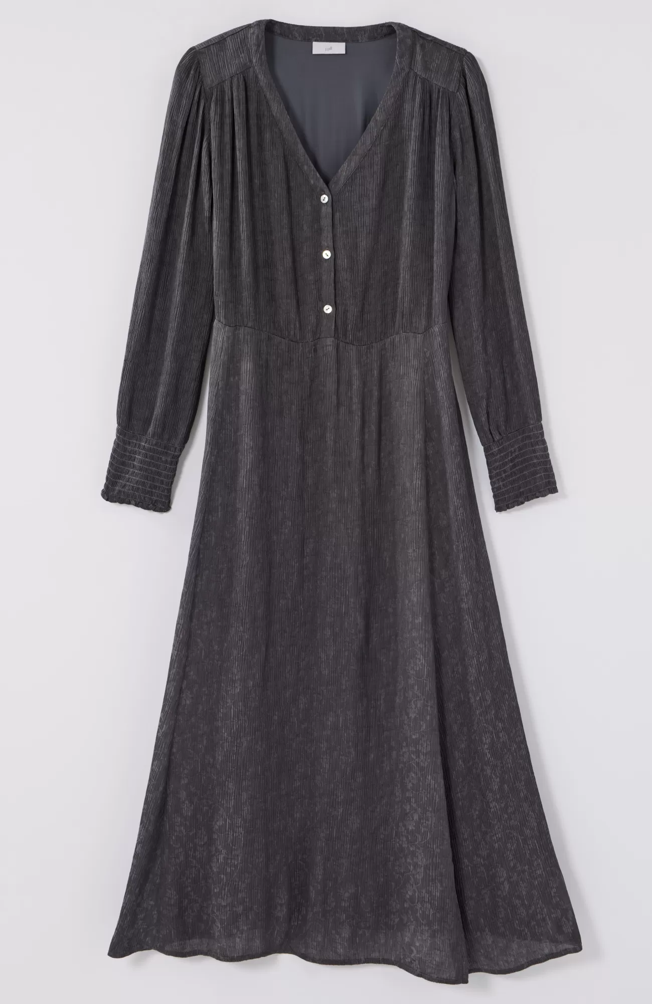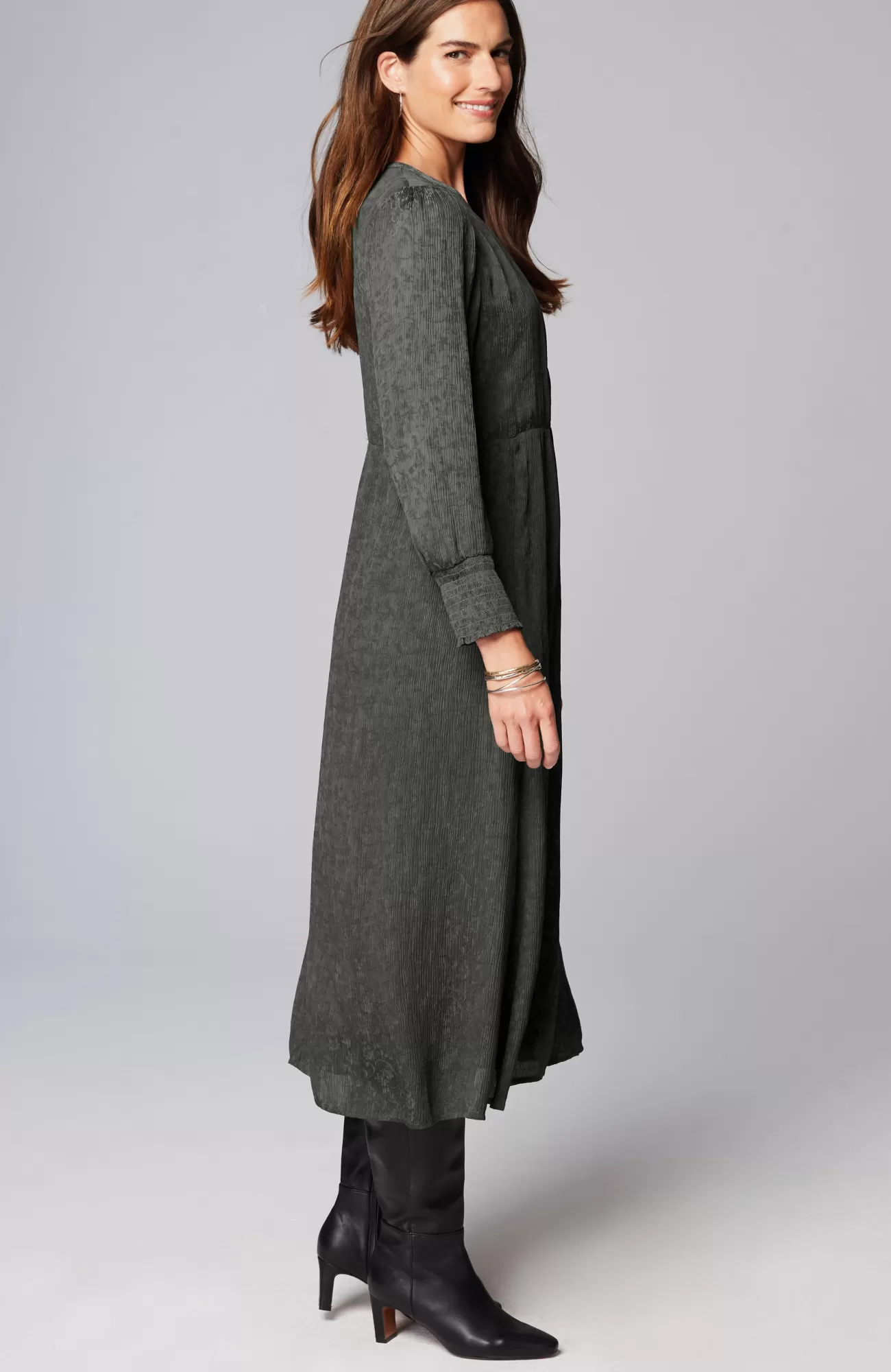 One-and-done dressing is made easy in our seasonal dress, designed in a crinkle-jacquard fabric that offers breathability, softness and a flattering drape. We added elastic detailing at the smocked cuffs and three functional agoya-shell buttons down the front. Fully lined. Catalog & Online Exclusive.