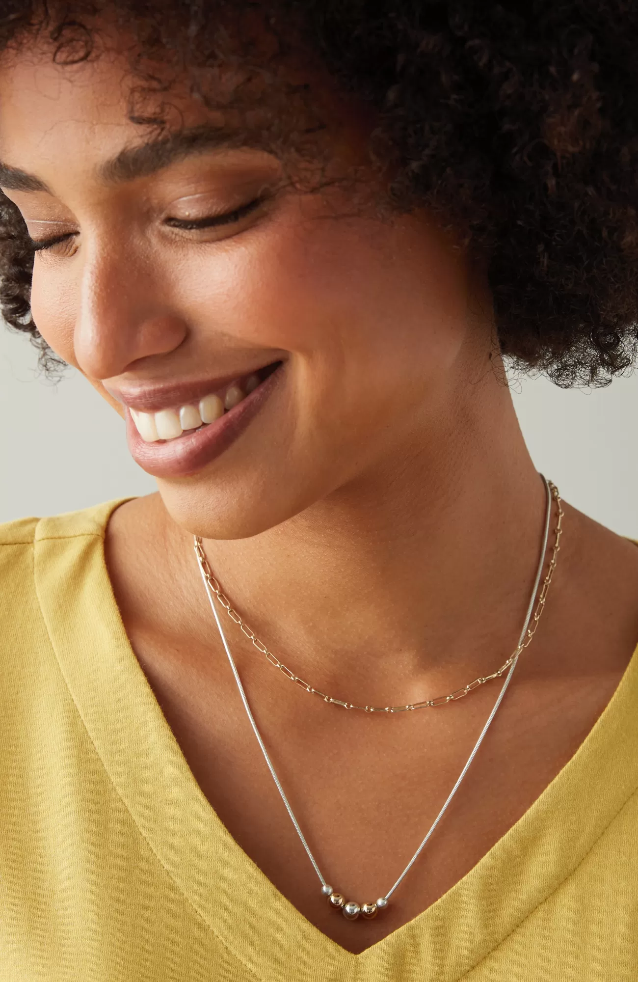 Our most delicate necklace with a mix of metals and petite beaded accents. Lobster-claw clasp. 18" long. 1½&qu…