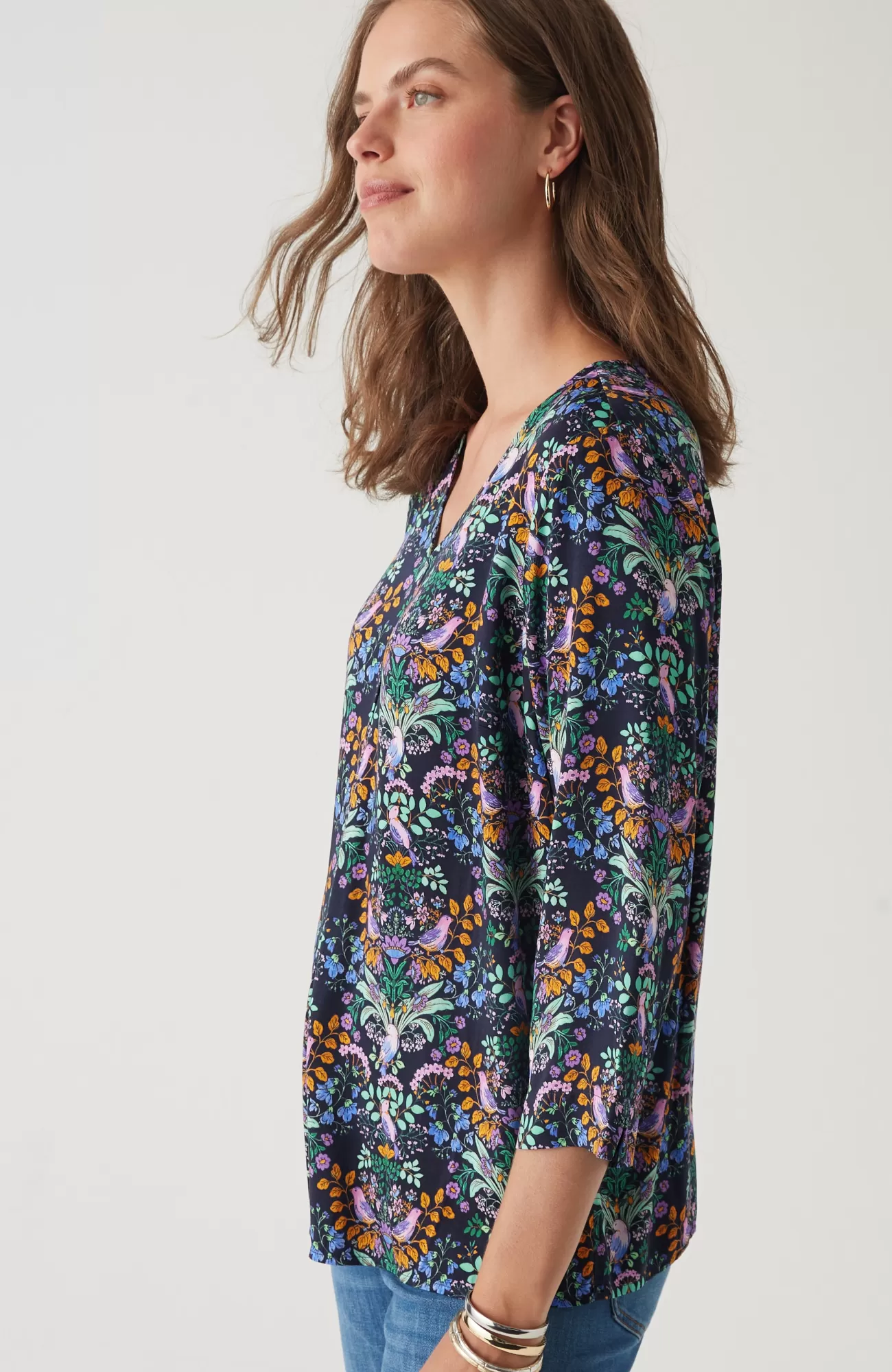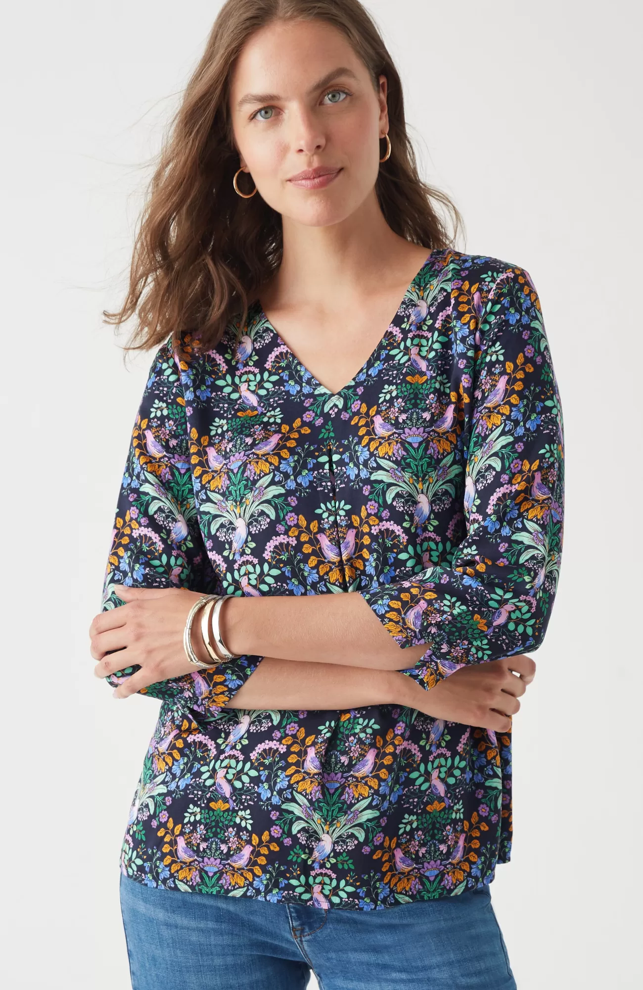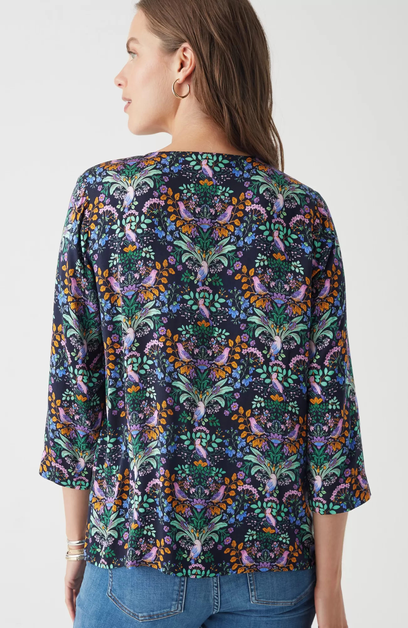 Designed in soft LENZING™ ECOVERO™ Viscose satin, our elevated popover has an allover garden print and a subtle shine that takes your outfit up a notch. The inverted box pleat below the V-neckline adds a feminine touch. It's a simple way to dress up your everyday look.
