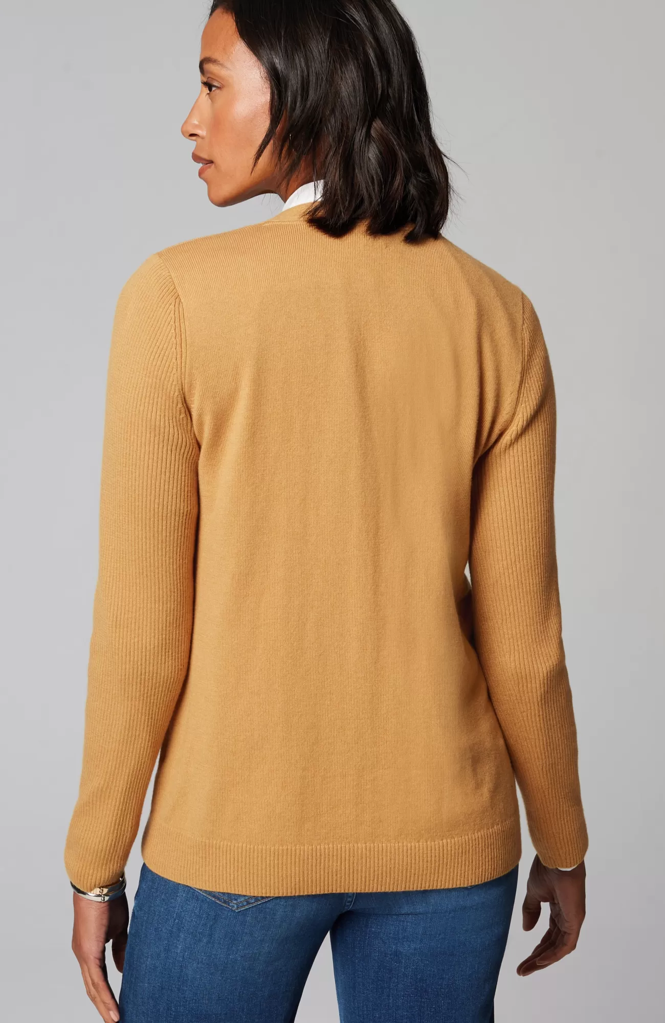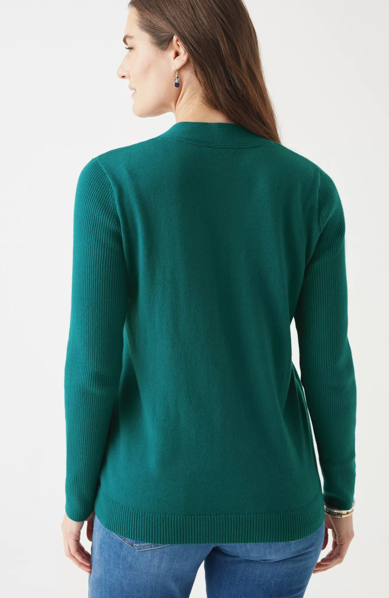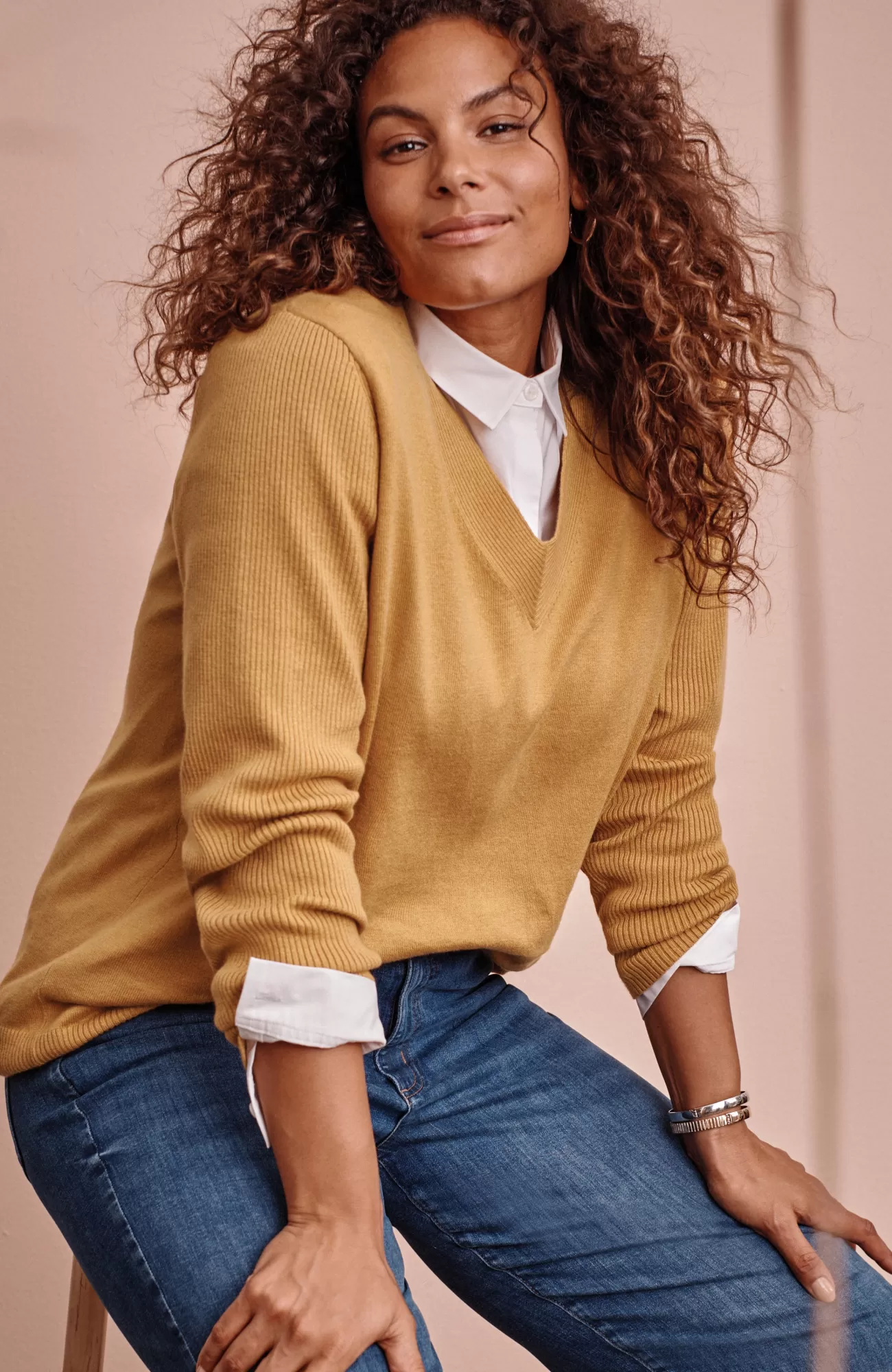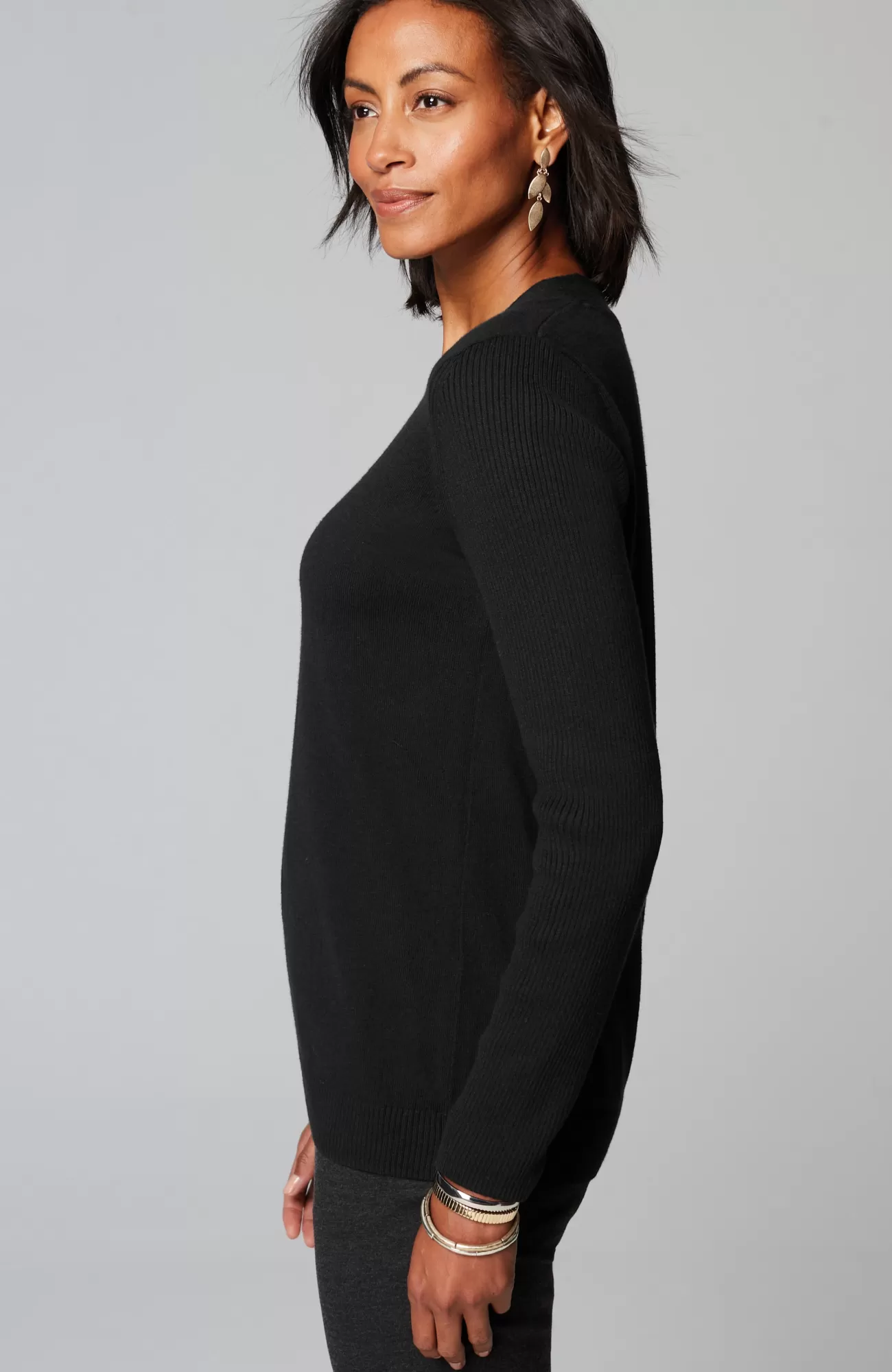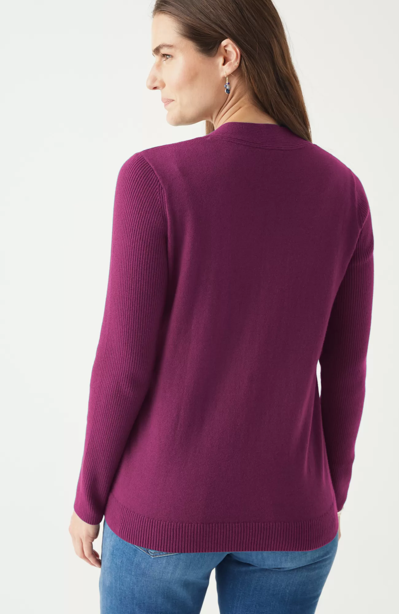 Just in time for sweater season—our V-neck pullover is soft, versatile and light enough to layer. Cozy ribbed texture at the neckline, hem and long sleeves.