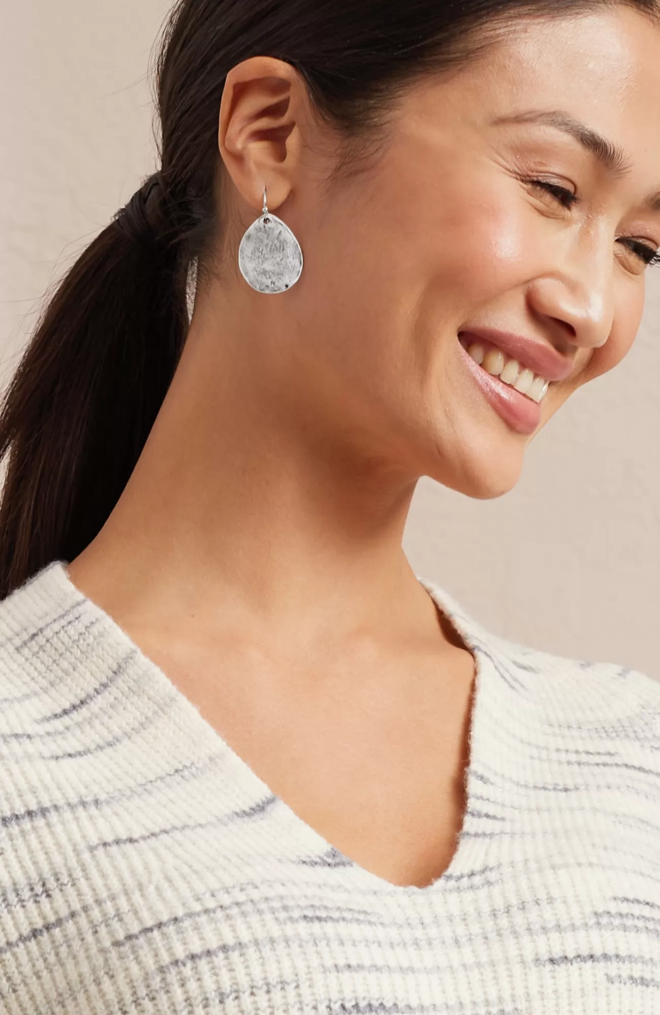 Our hammered goldtone drop earrings add a warm touch of shine to your look. The classic design makes it easy to add them to your daily rotation. Ear wire. 1½" drop.