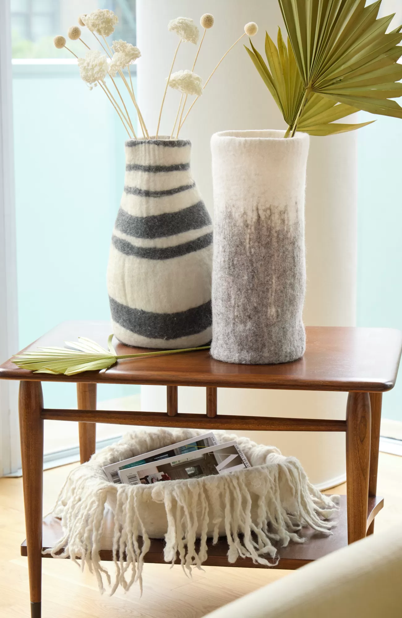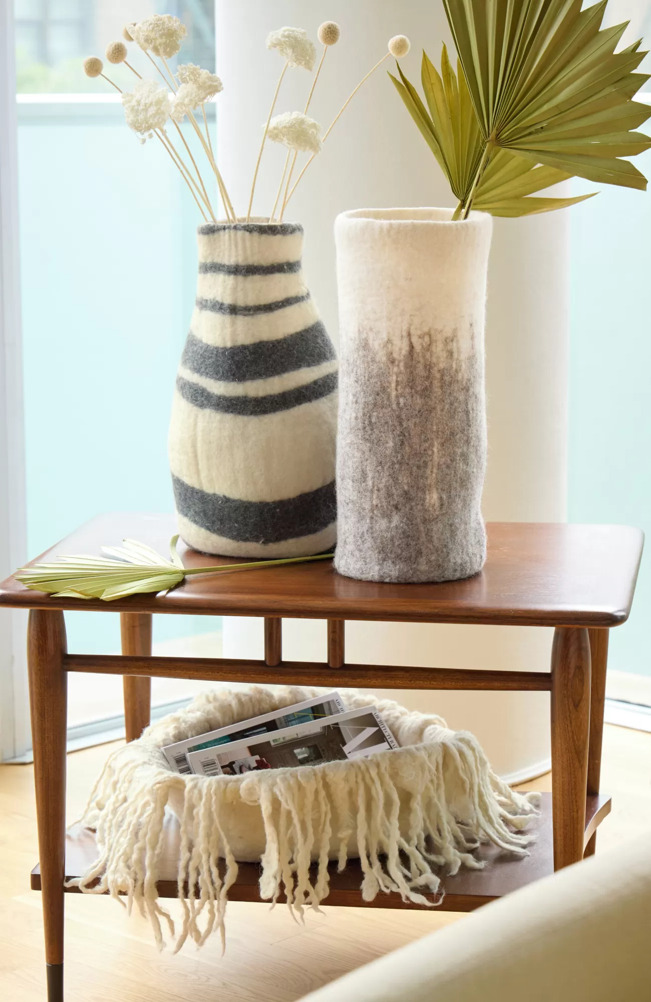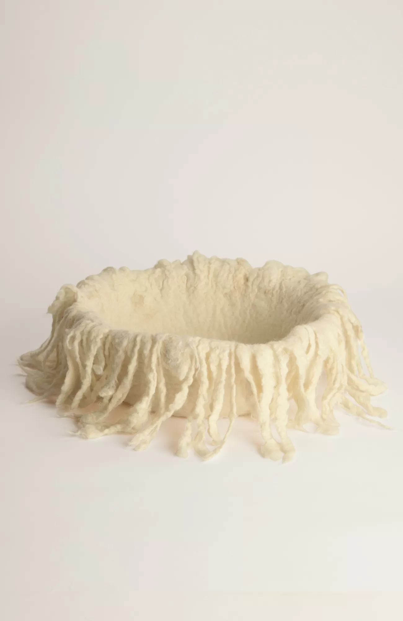 Exclusively part of our limited-edition Pure Jill Elements Home Collection—available online and in select stores. Made with soft hand-woven wool, each one of our bowls is one of a kind, has an organic look and serves as a cozy nest for all your treasures. The fringe trim adds texture and depth. According to Elliot Staples, our SVP of Design, this piece has a perfectly imperfect shape and playful, fun texture. Shipping note: bowl ships flat and will initially need manipulation to restore its shape.