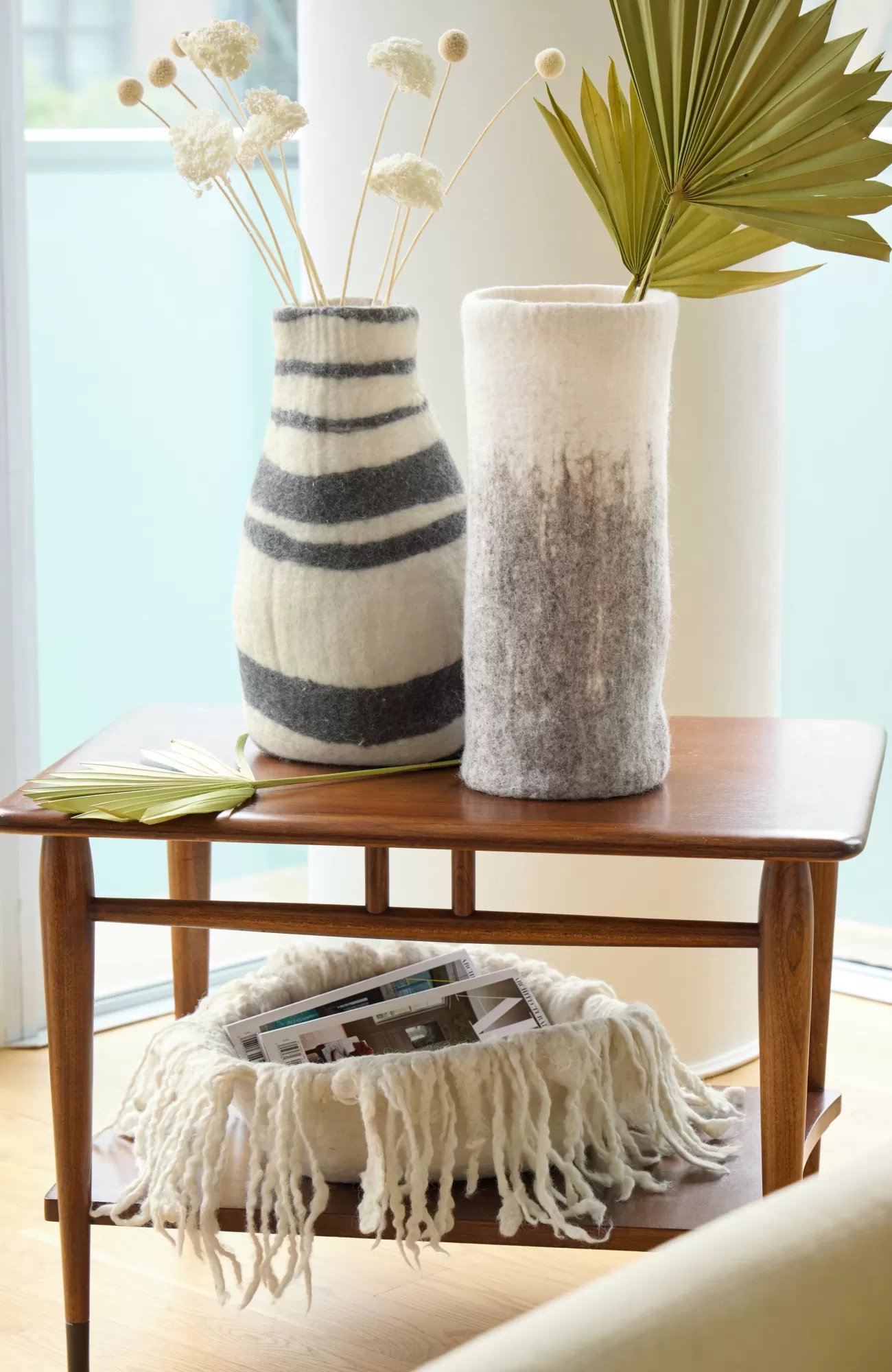 Exclusively part of our limited-edition Pure Jill Elements Home Collection—available online and in select stores. Unique by design and full of contrast, our large wool vessel was loomed by hand—creating an eye-catching curved shape. Because of its textile composition, it is not meant to hold water. Shipping note: vase ships flat and will initially need manipulation to restore its shape.