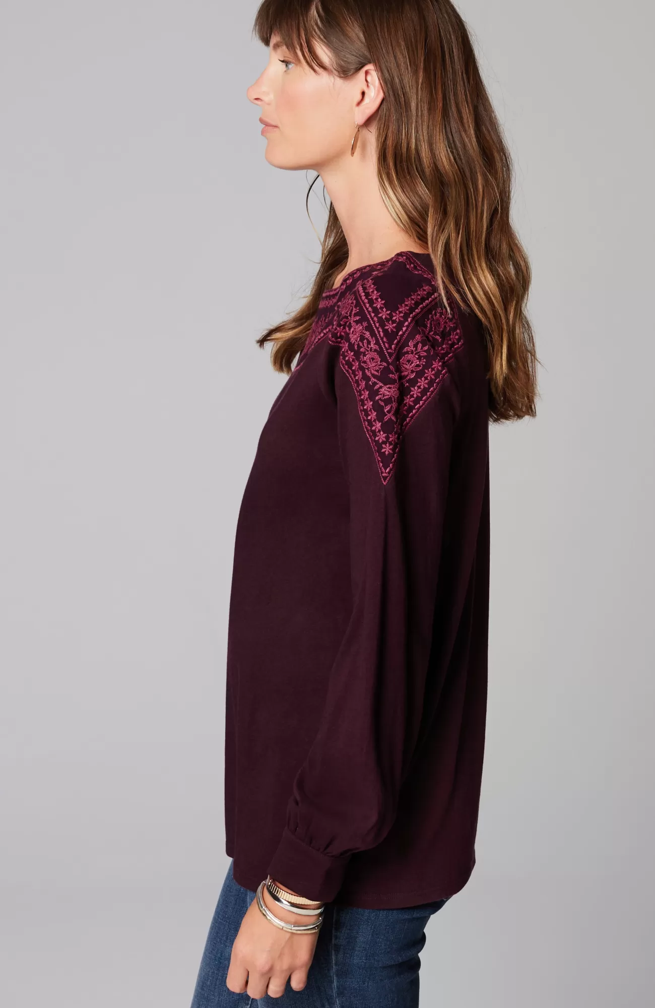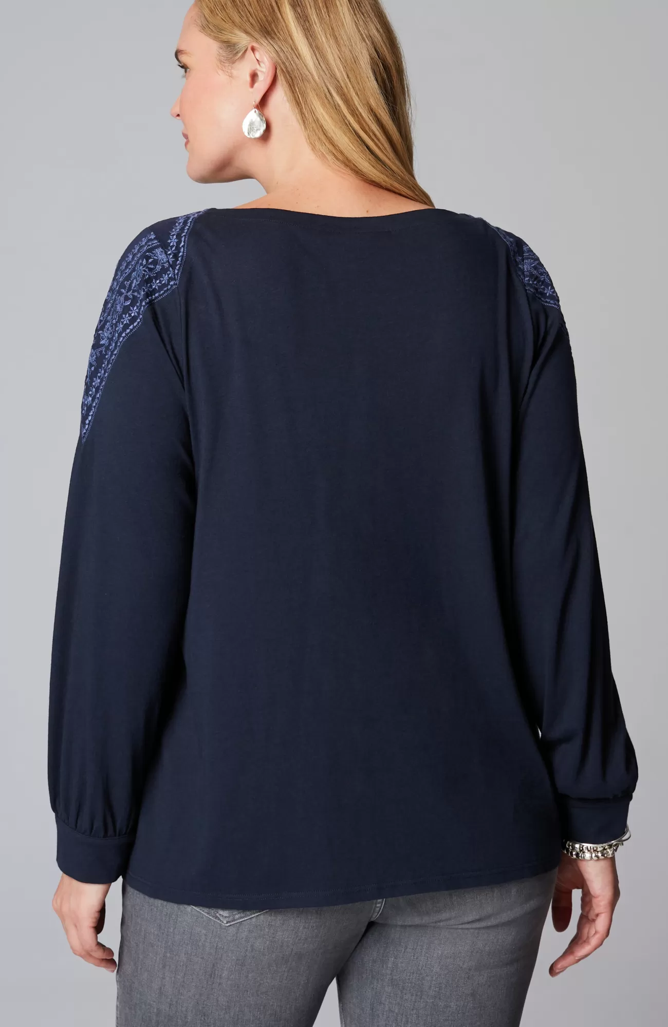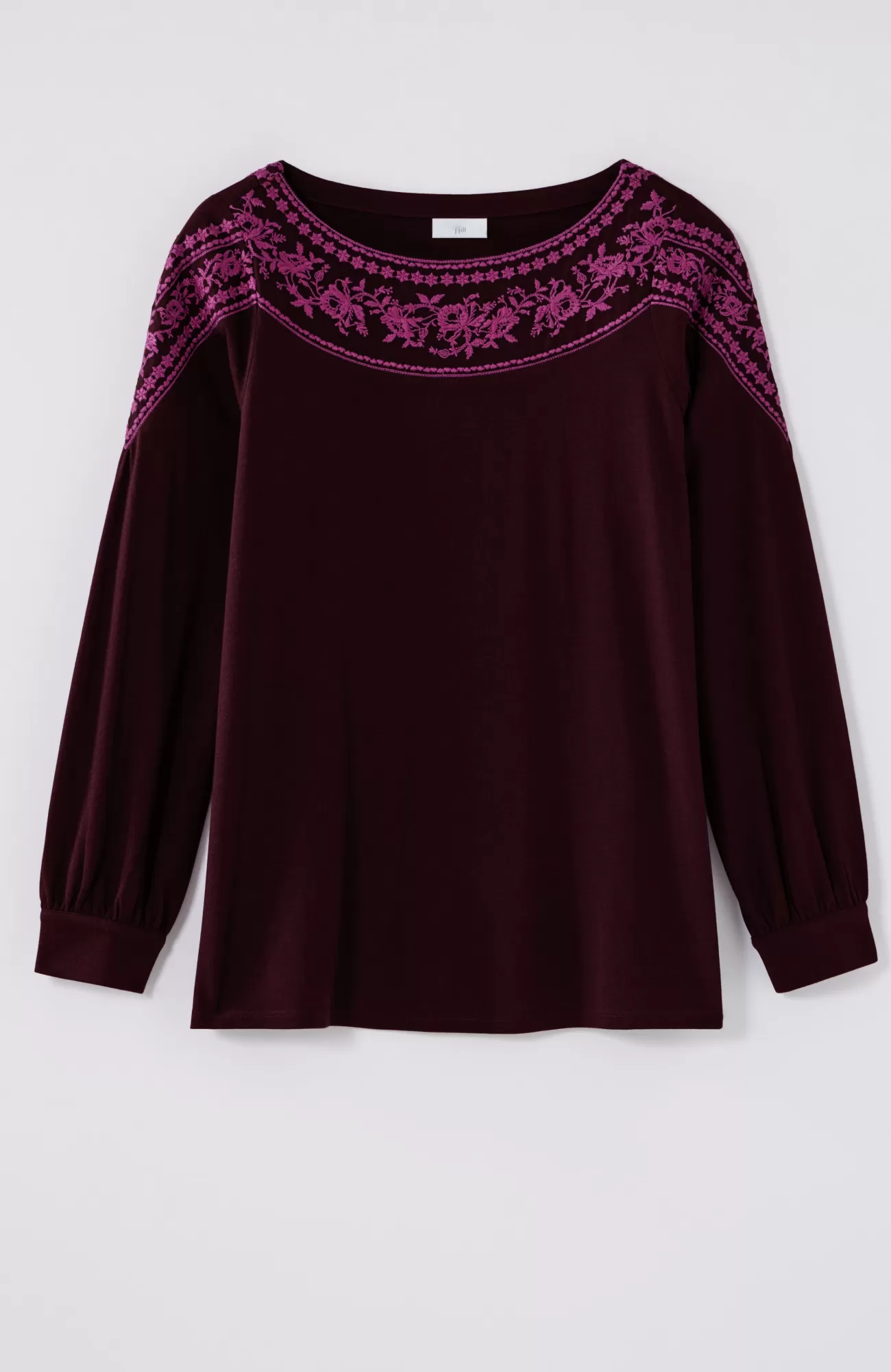 The everyday top, elevated with special details to discover. It's designed with a woven cotton-voile yoke that features intricate floral embroidery along the boat neckline and shoulders. The knit body is made of a soft blend of cotton and TENCEL™ Modal for feel-good style and all-day comfort.