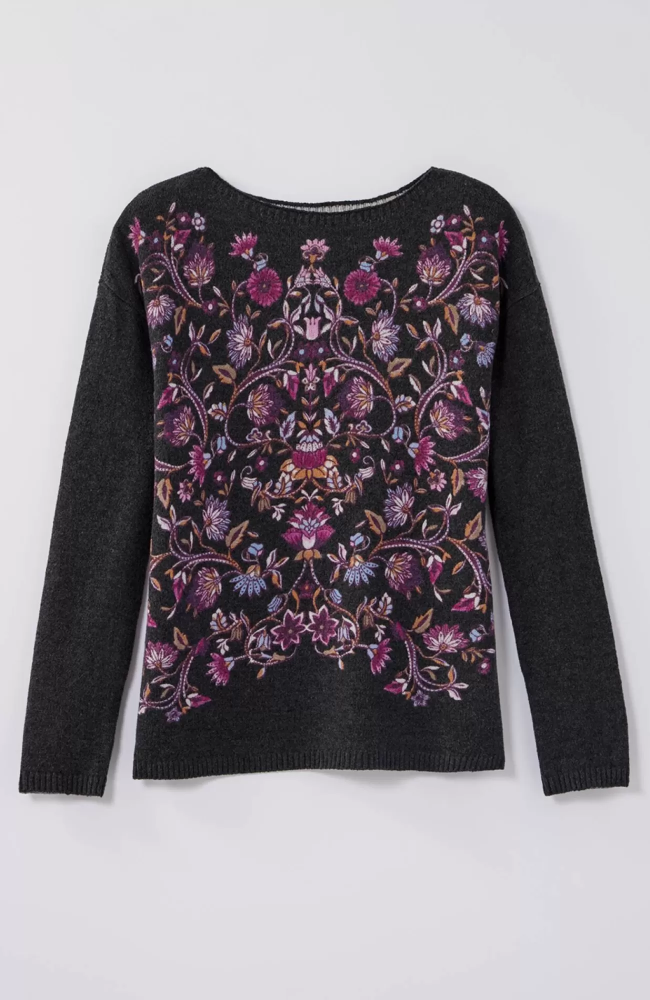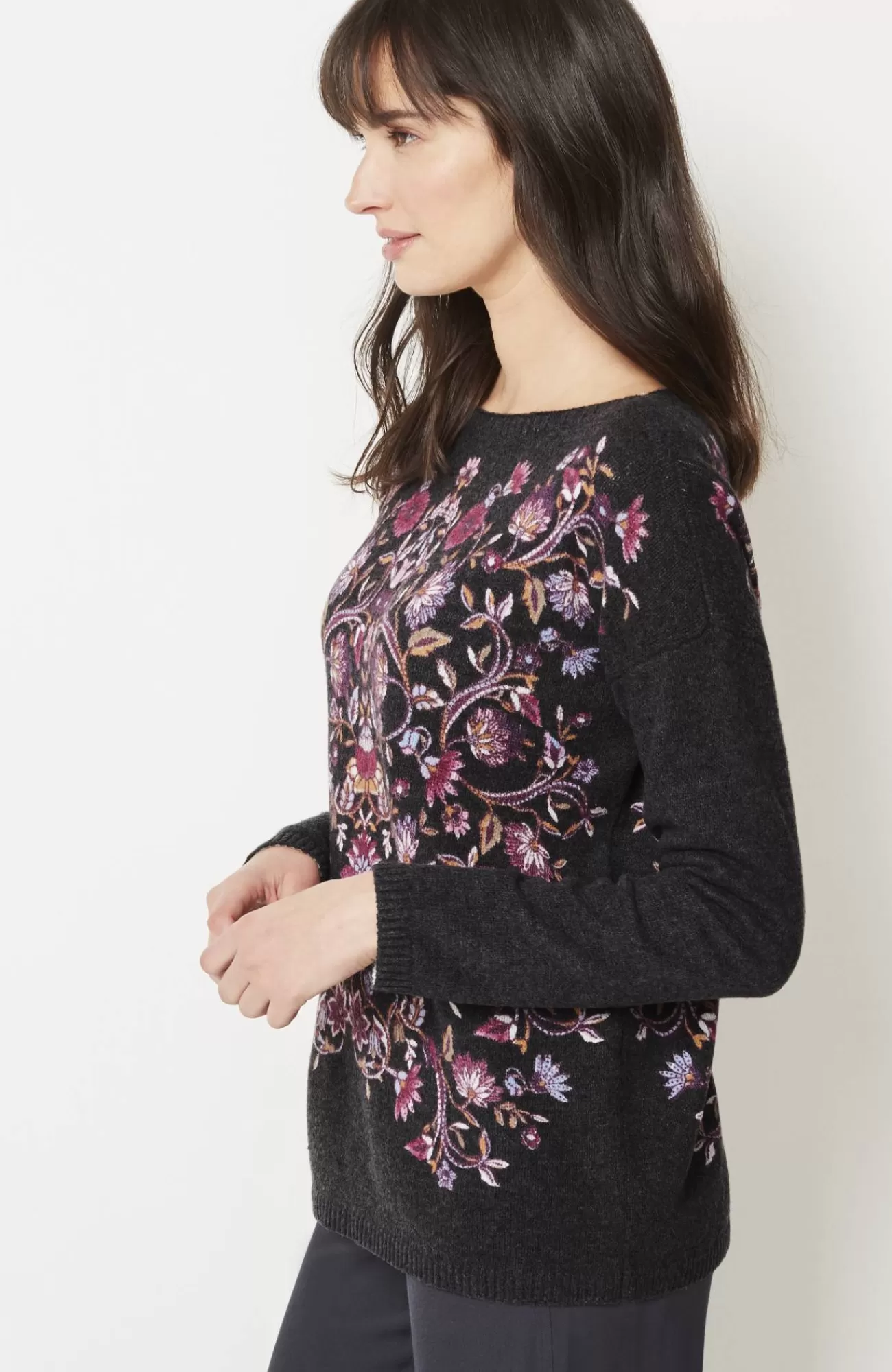 Wearable work of art—our softest knit sweater with the most enchanting floral print. We added subtle ribbed-trim accents at the neckline, cuffs and hem.