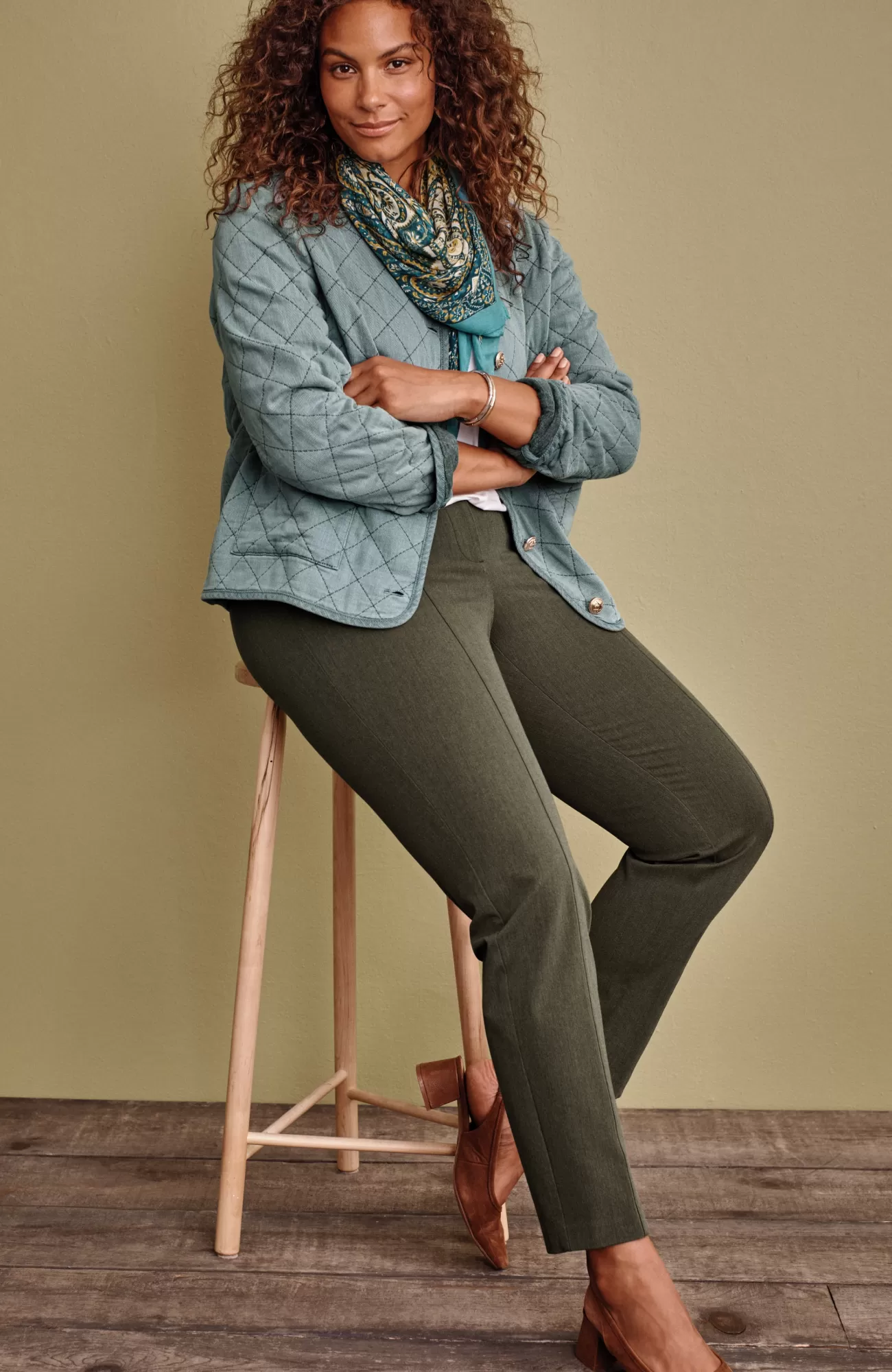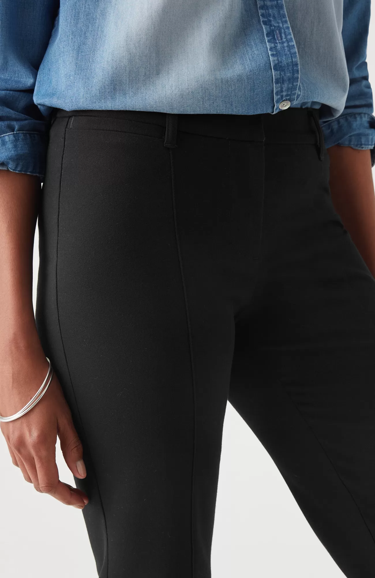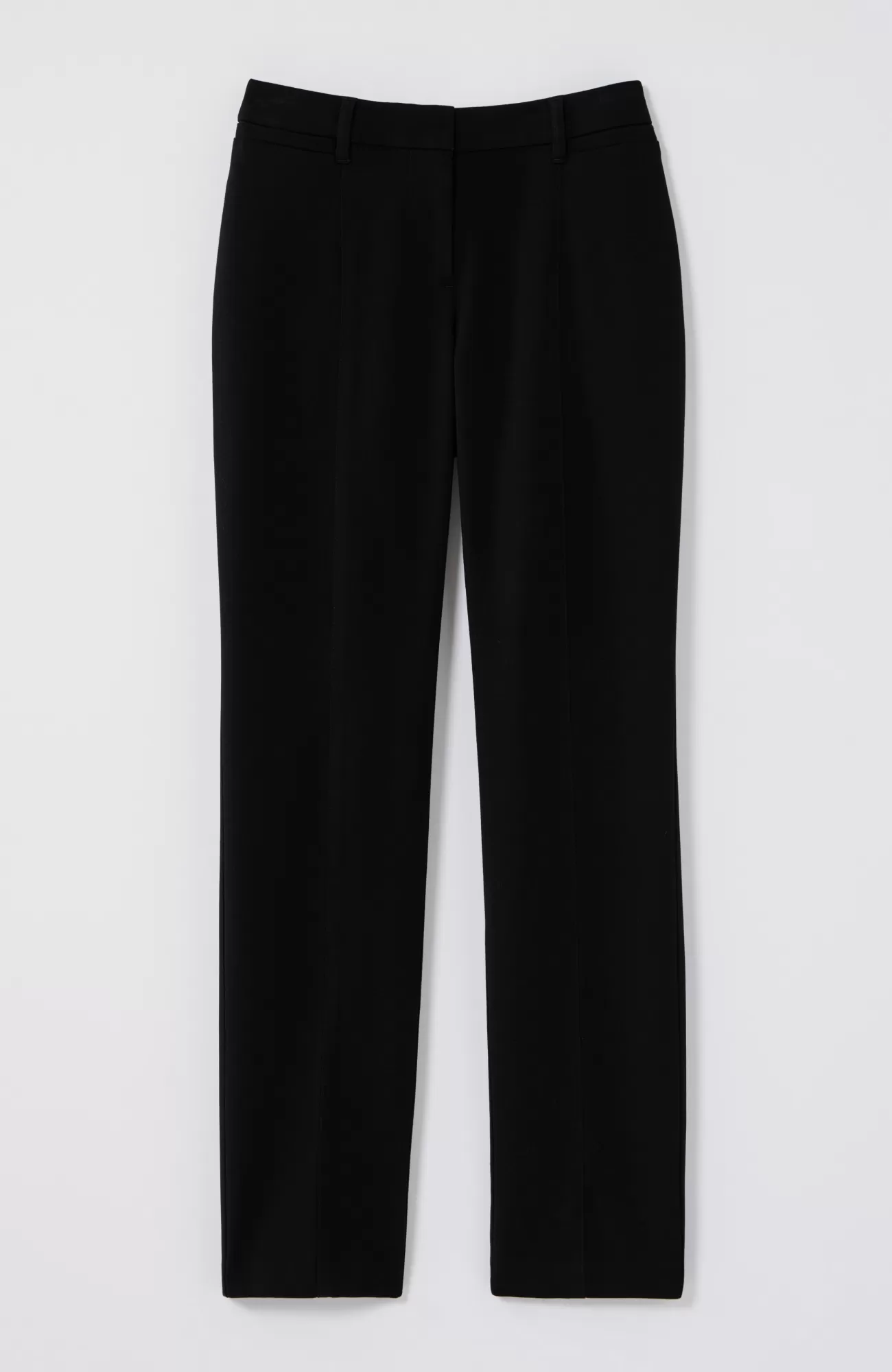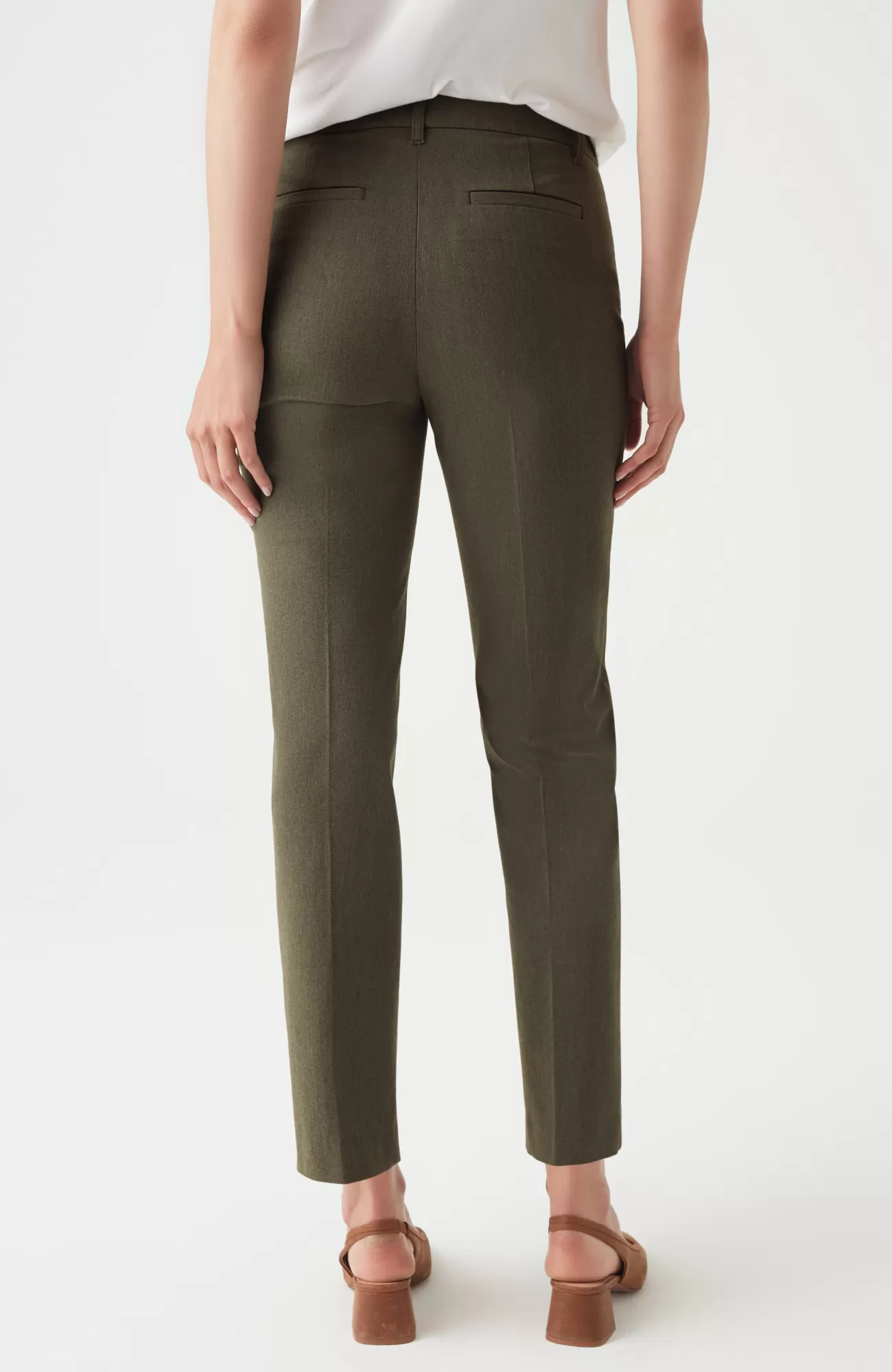 We designed our versatile slim-leg pants in our unique bi-stretch fabric, so they move every way you do and hold their shape to give you a perfectly comfortable fit that looks and feels good all day. Pressed front pintucks give them a polished look. Flat constructed front with elasticized back waist. Front and back welt pockets.
