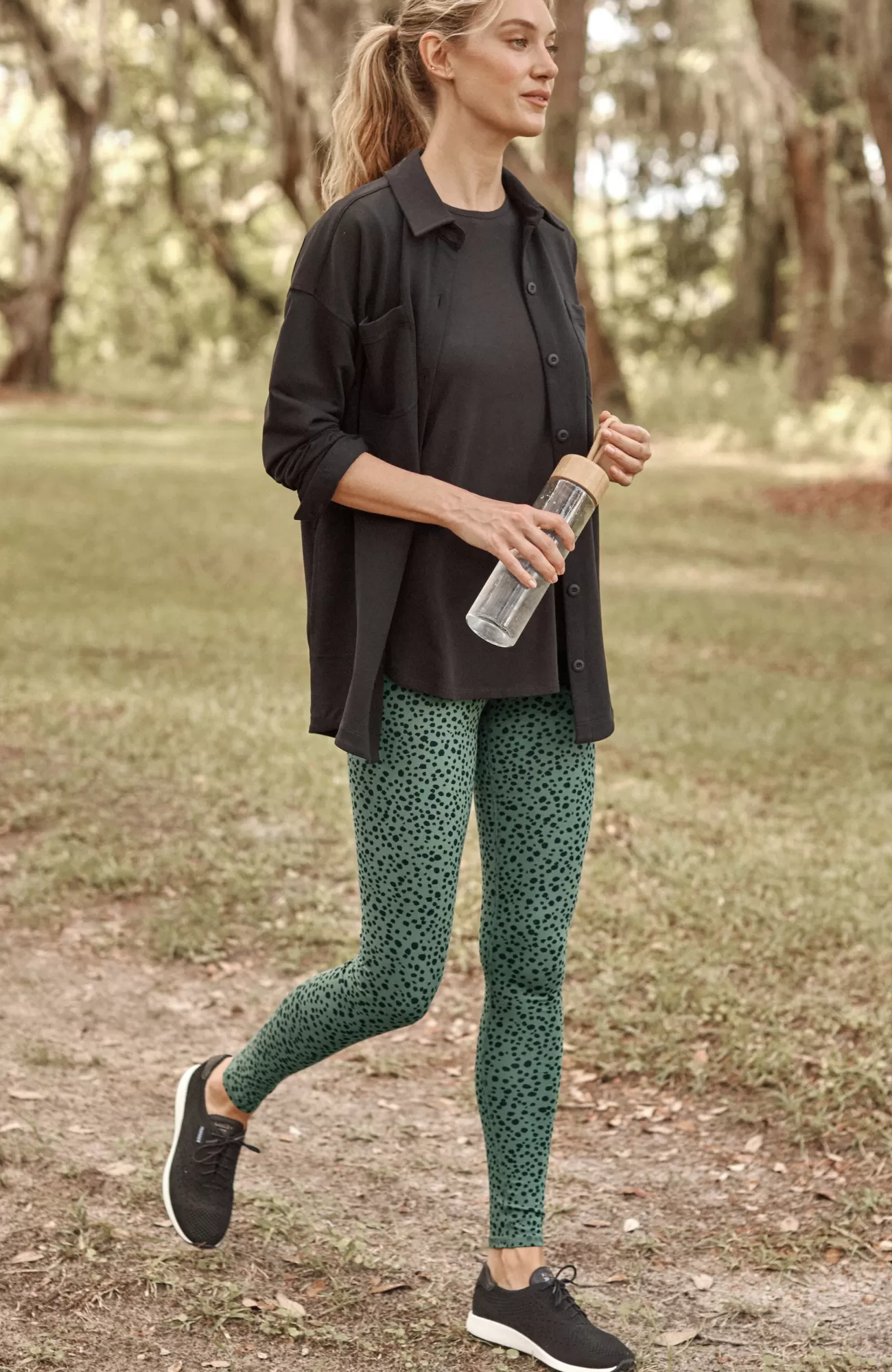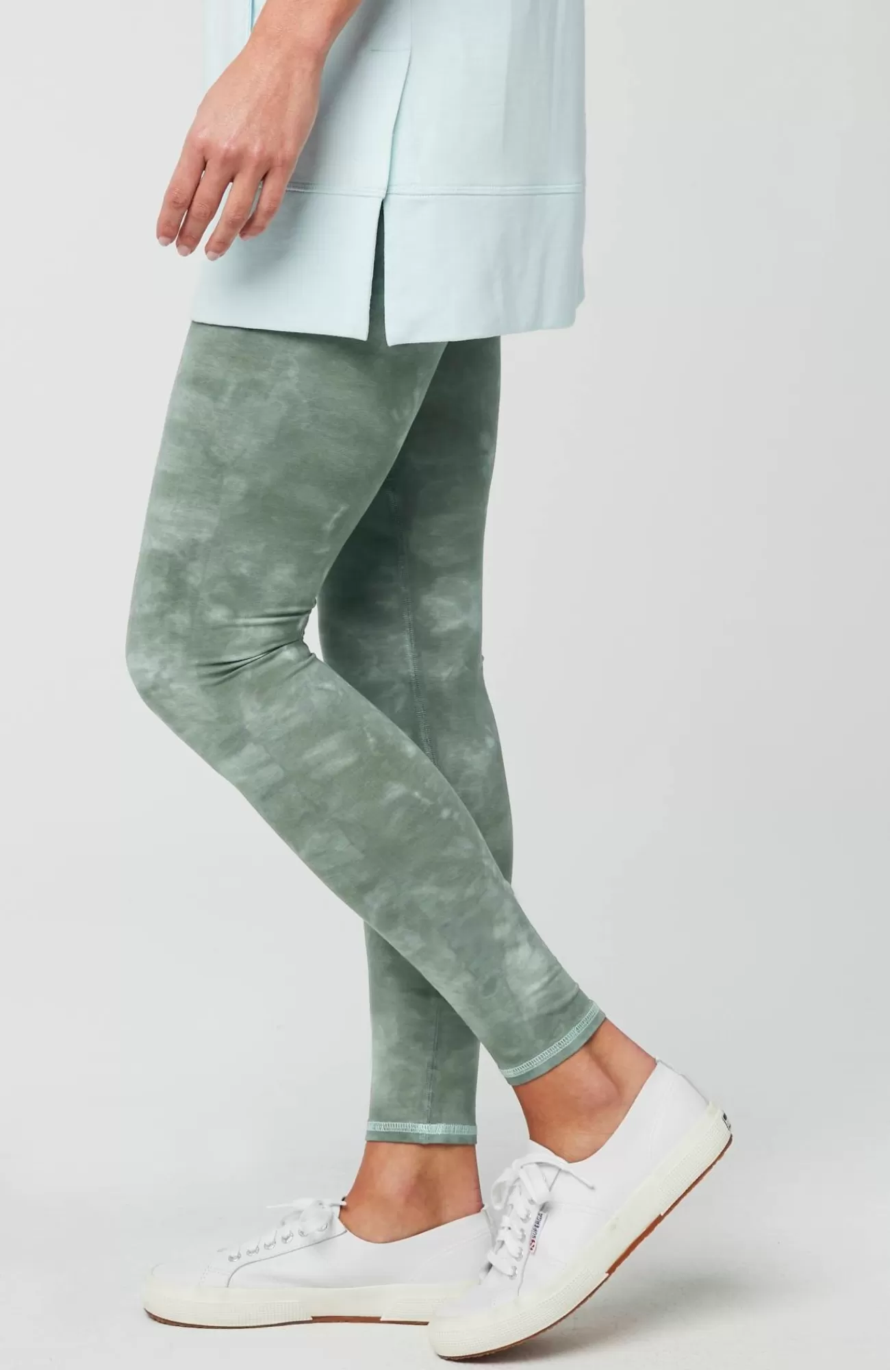 Our casual leggings are made in a soft cotton-rich fabric with a touch of stretch that keeps you comfortable during your workout and on the go. The wide smoothing waistband promises a figure-flattering fit. We added a genuine tie-dyed pattern at the hemline, making every pair unique.