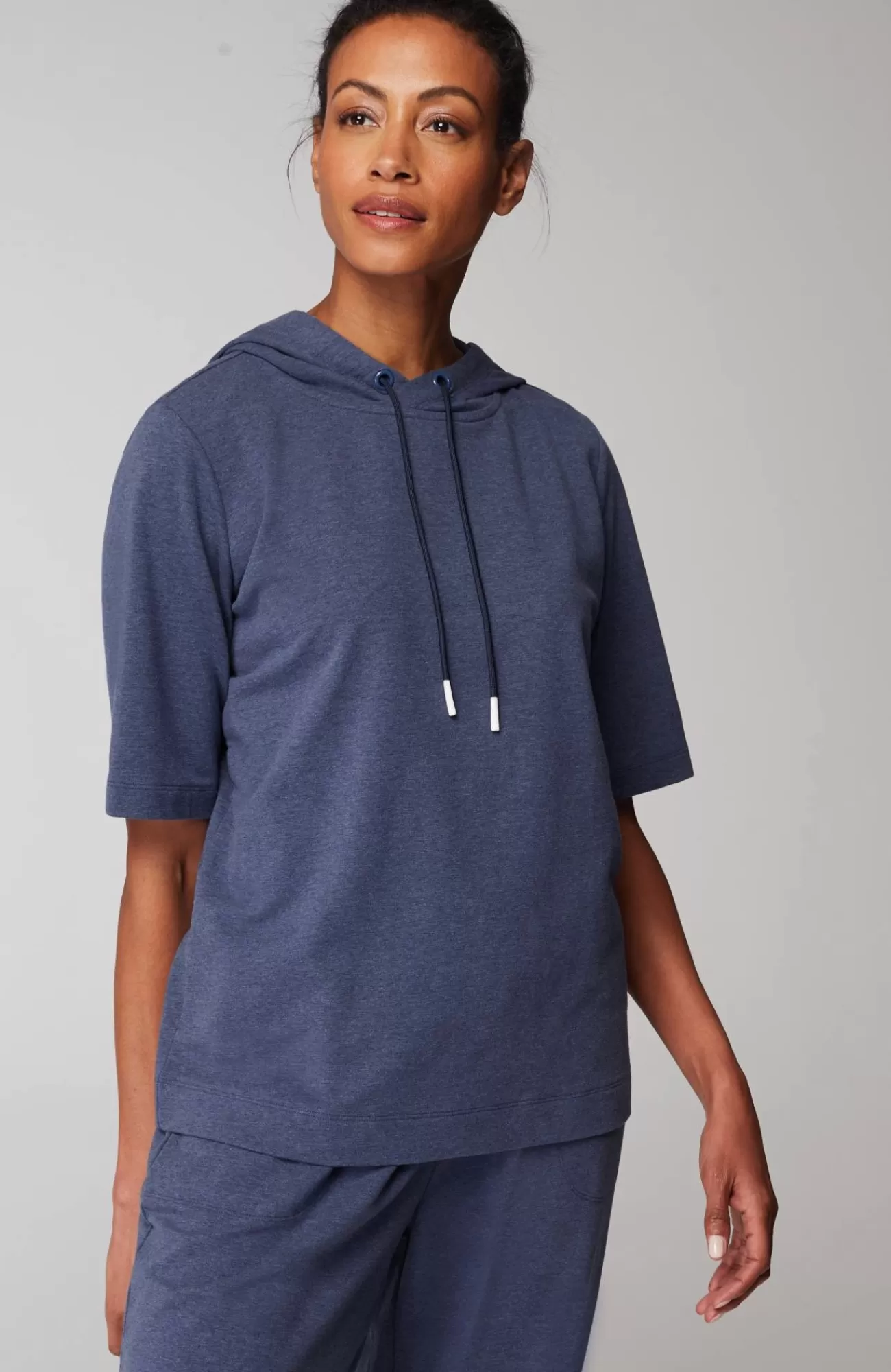 A relaxed take on your favorite summer hoodie—now in an elbow-sleeve layer in season-perfect colors. Made with a soft cotton-rich blend that's lightweight but adds a touch of warmth for morning workouts, errands and wherever you go.