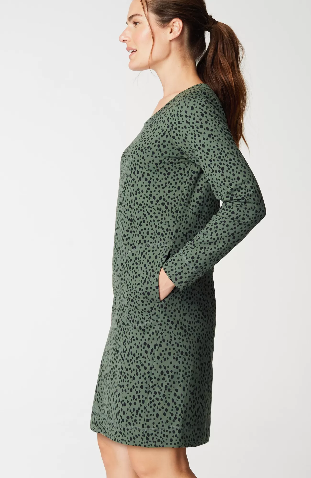 We made our easy knit dress with fabric that’ll elevate your day—our supersoft, iconic cotton blend is smooth and breathable with a touch of spandex for comfort and flexibility. Vertical seams bring subtle dimension. Plus, it has pockets!