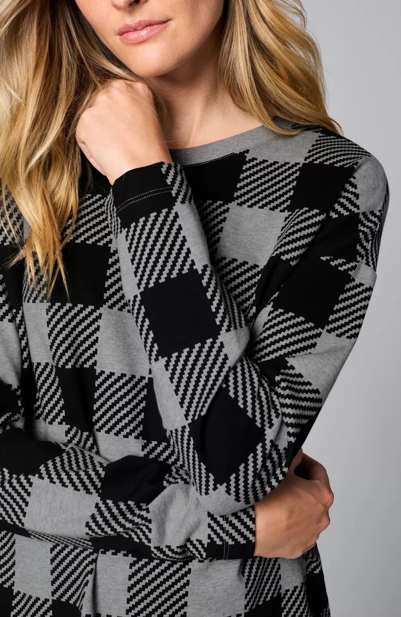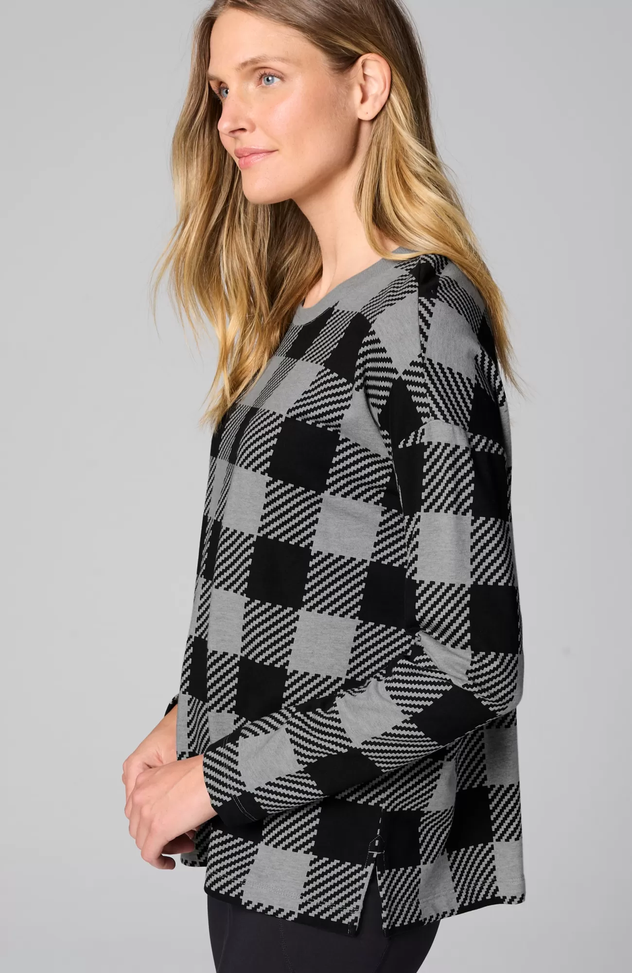 Nothing says “the most wonderful time of the year” like plaid, so we updated our pullover with an extra-large buffalo check. The French terry fabric makes it so soft and cozy, you’ll reach for it all season long. Finished with a ribbed neckline. Side vents.