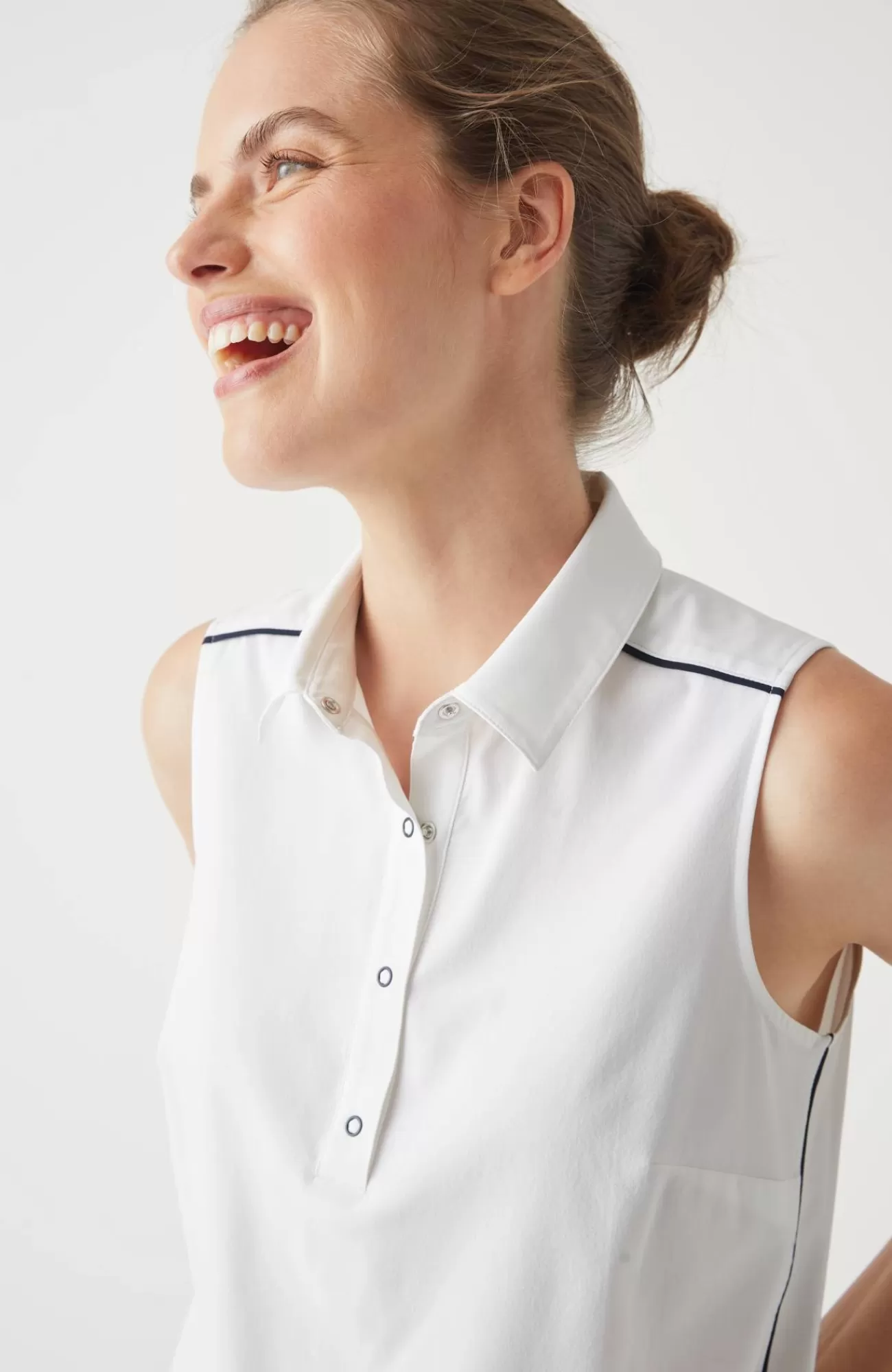 A sporty classic upgraded with contrast piping and a snap placket. We created it in our woven water-repellent tech fabric that’s breathable, silky and lightweight—aka, it's the perfect top for workouts or when you're on the go. Plus, we added a touch of stretch for comfort and ease of movement.