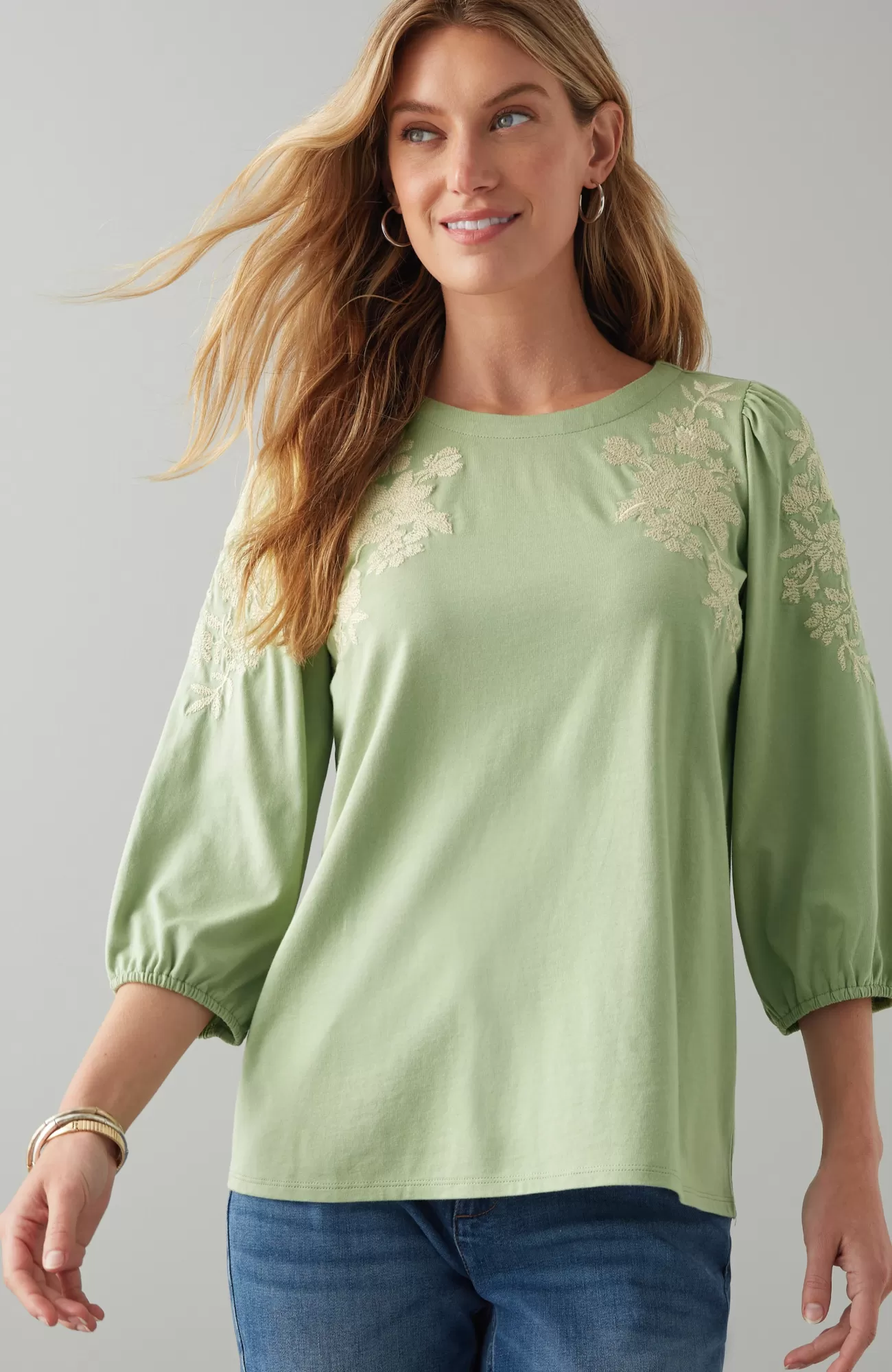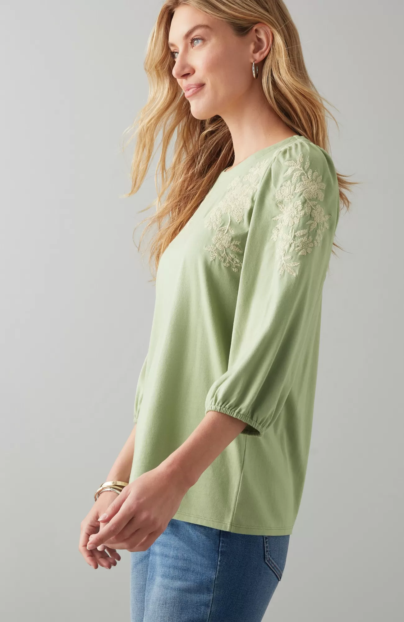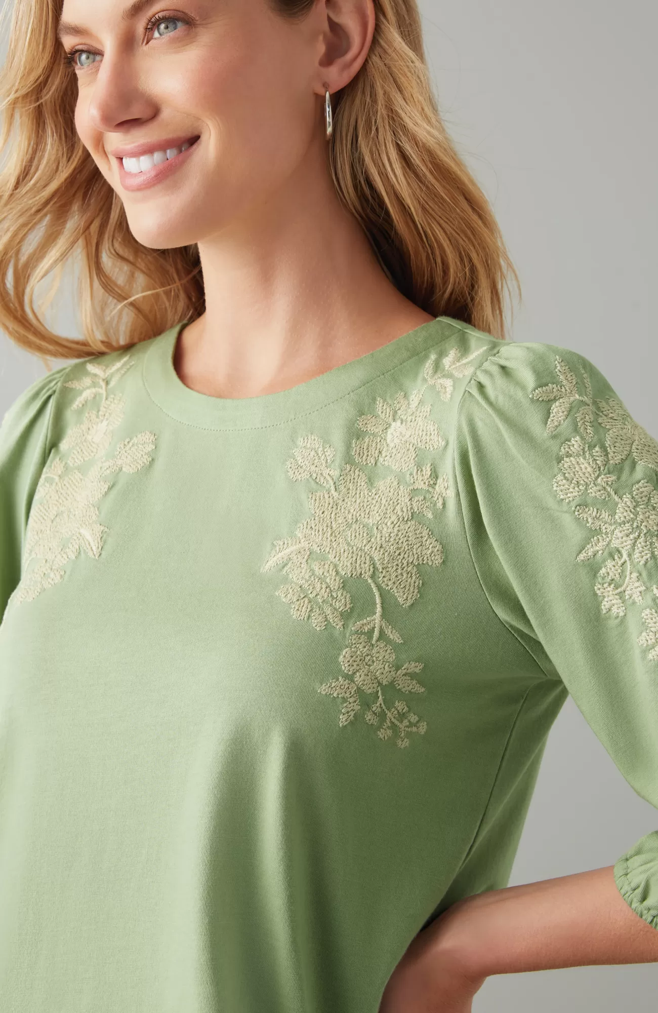 Embroidery that instantly elevates your look. We love a floral accent that adds just-right detail to an everyday favorite. Designed with a blend of cotton and TENCEL? Modal for the ultimate softness and breathability. Elasticized cuffs.