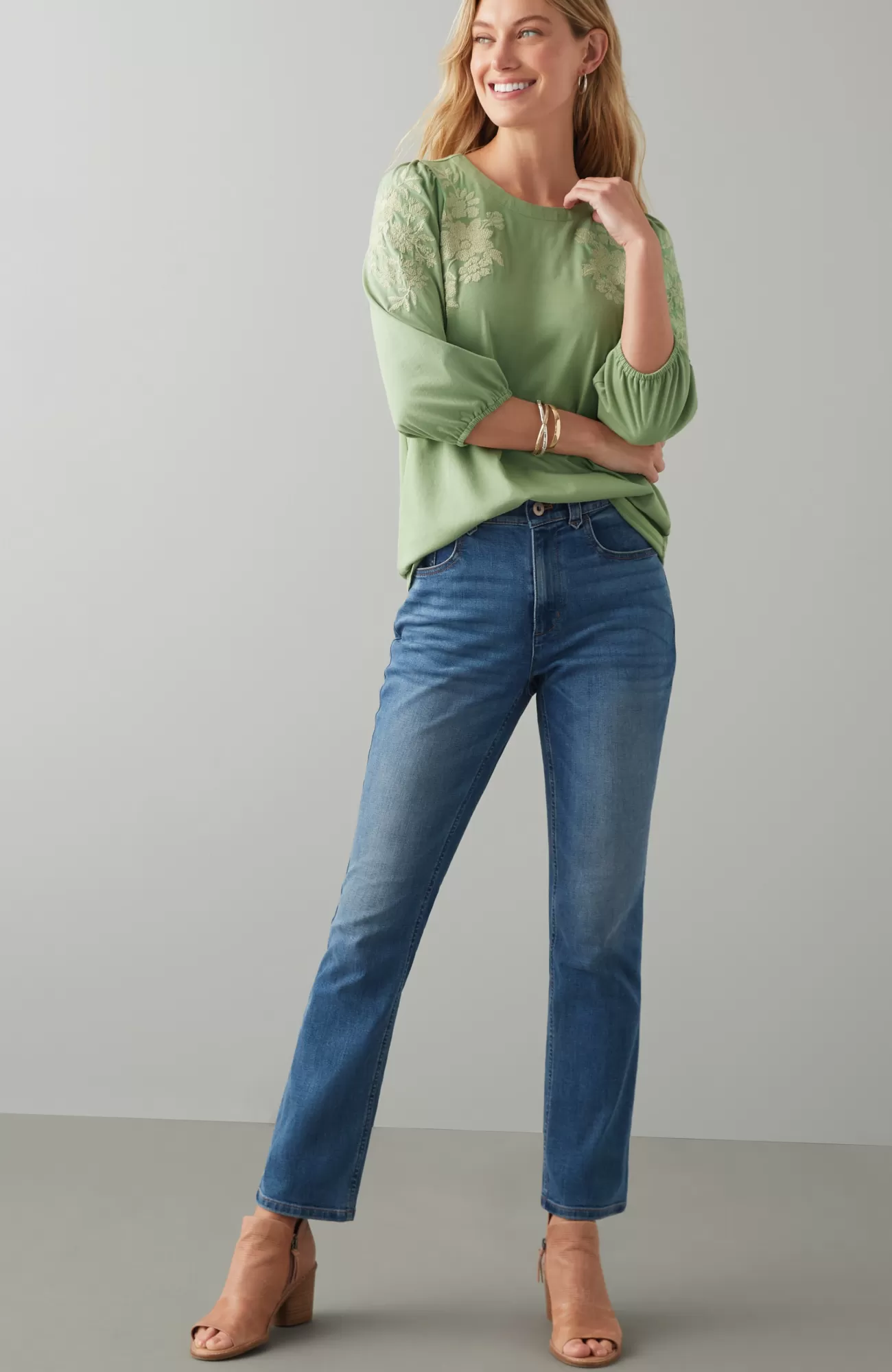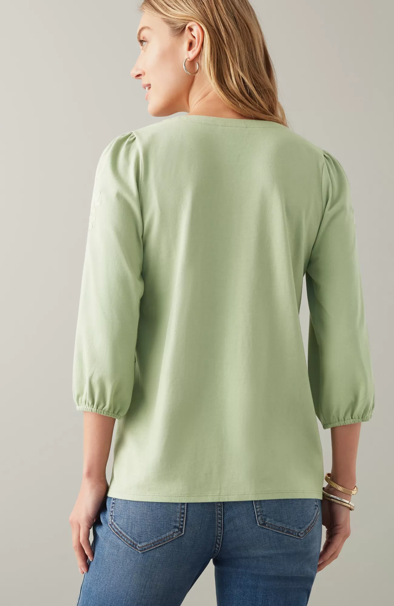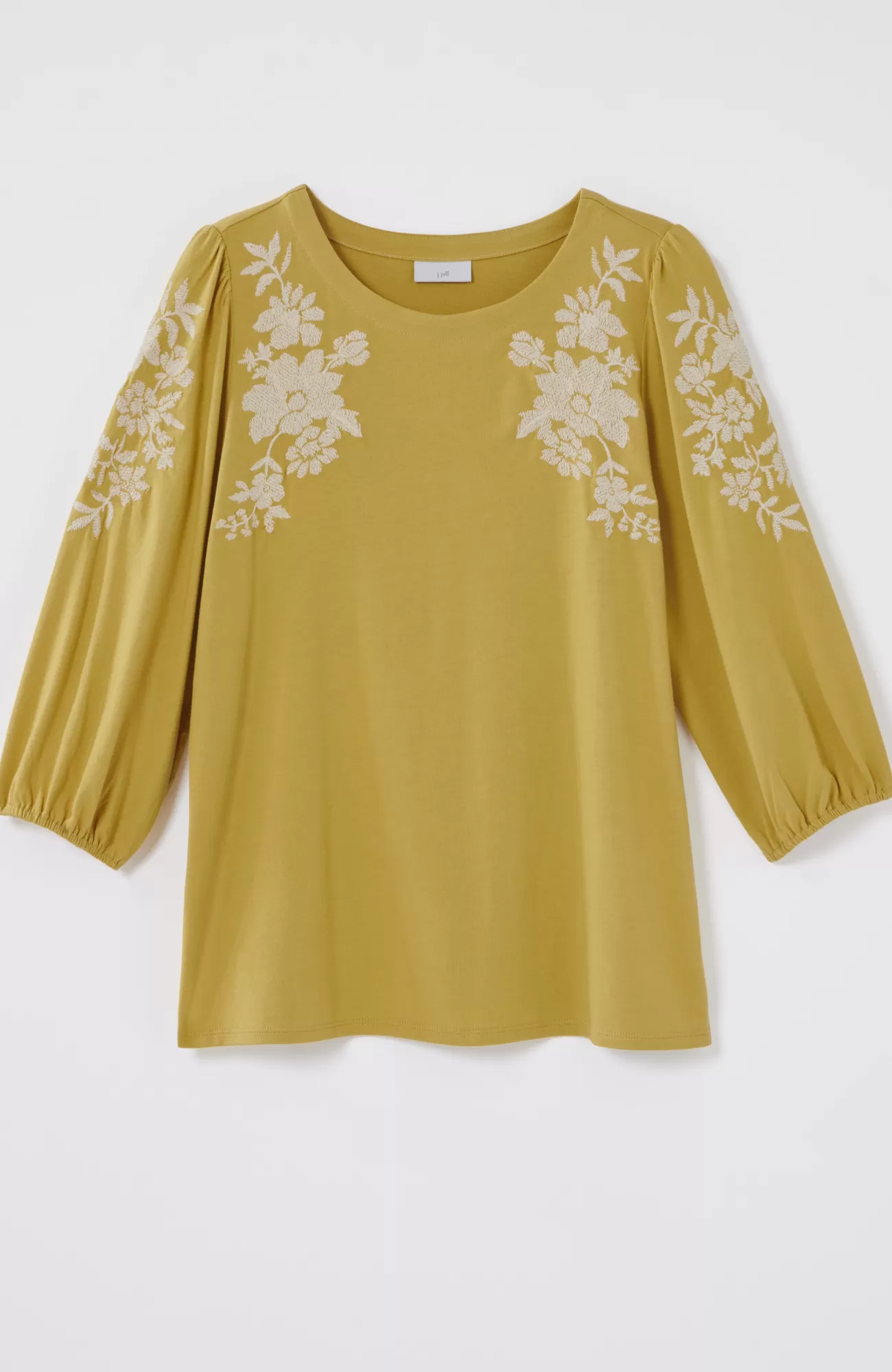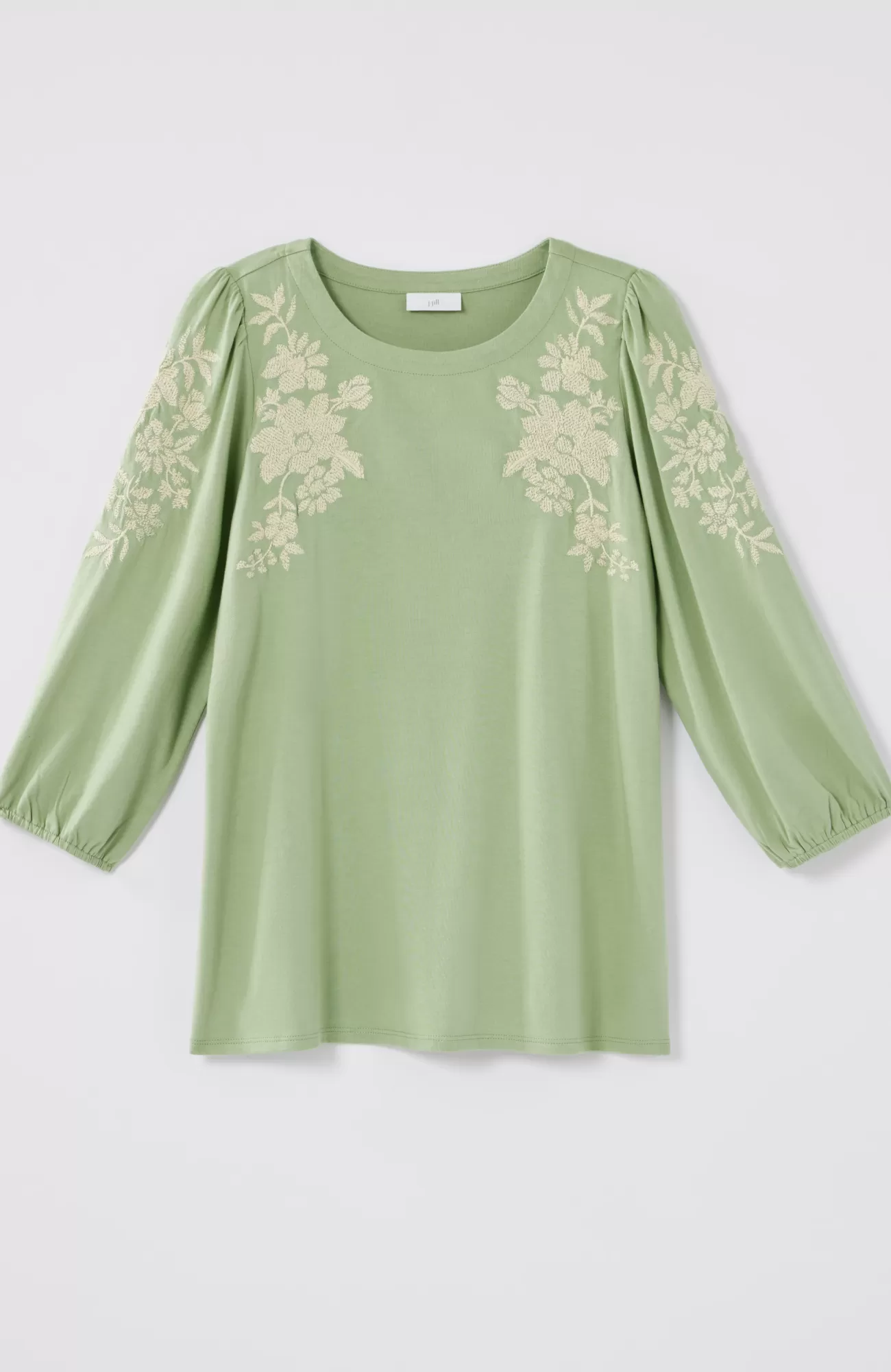 Embroidery that instantly elevates your look. We love a floral accent that adds just-right detail to an everyday favorite. Designed with a blend of cotton and TENCEL? Modal for the ultimate softness and breathability. Elasticized cuffs.