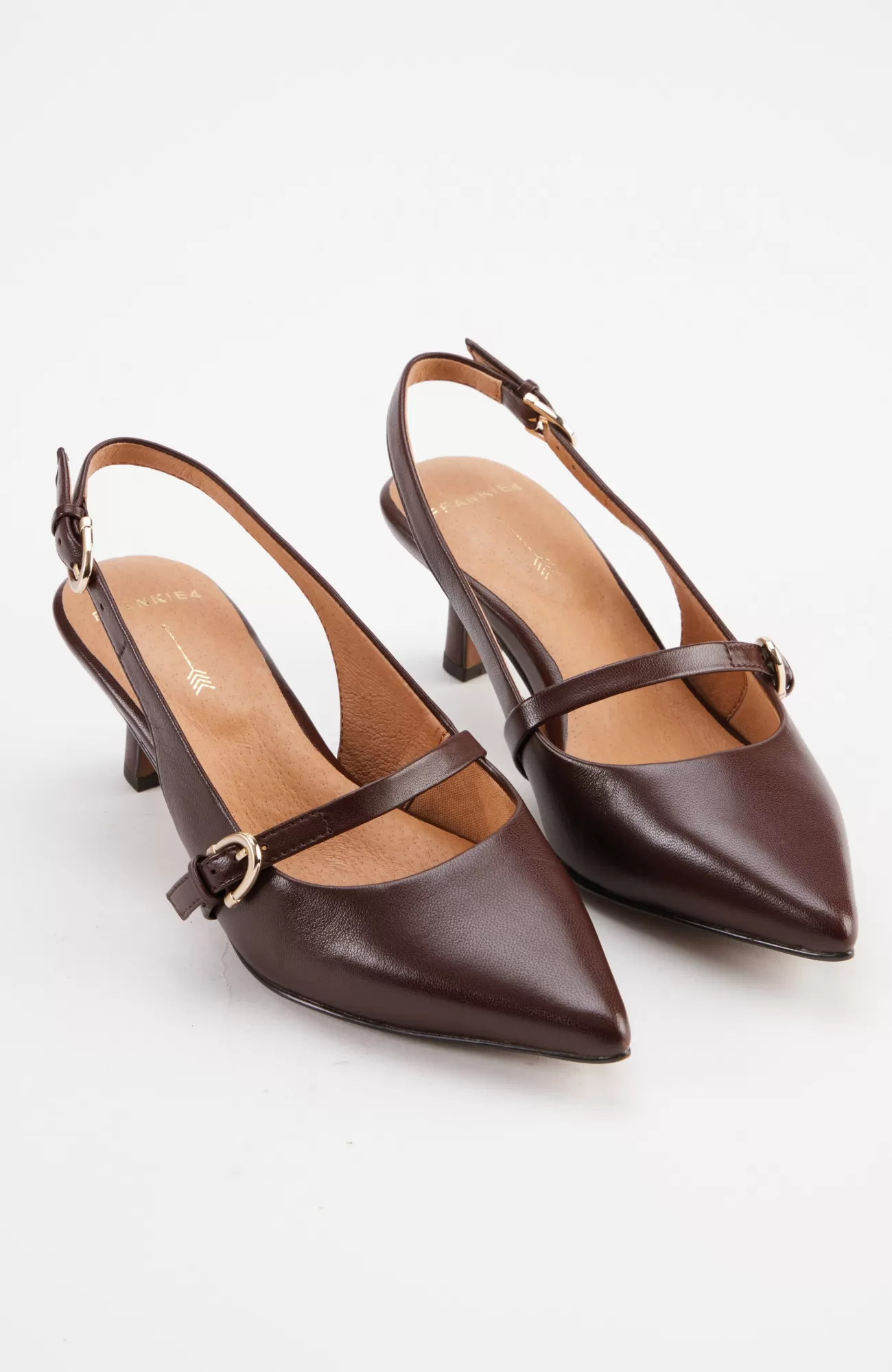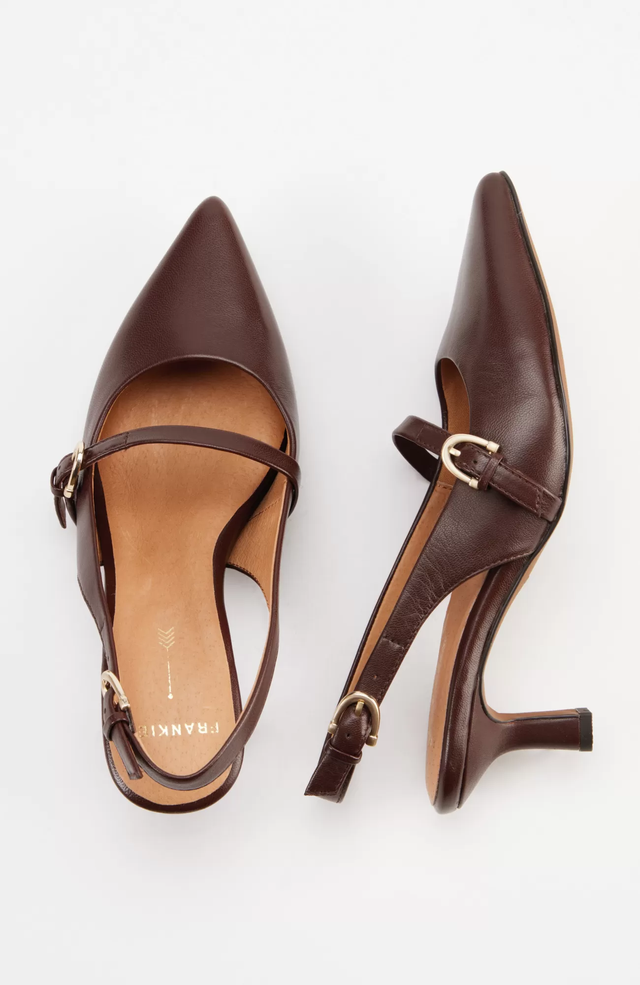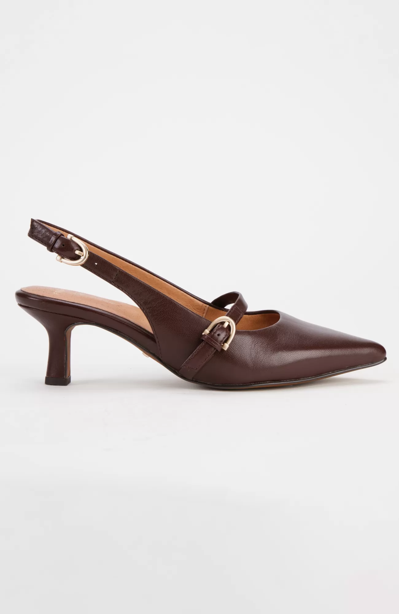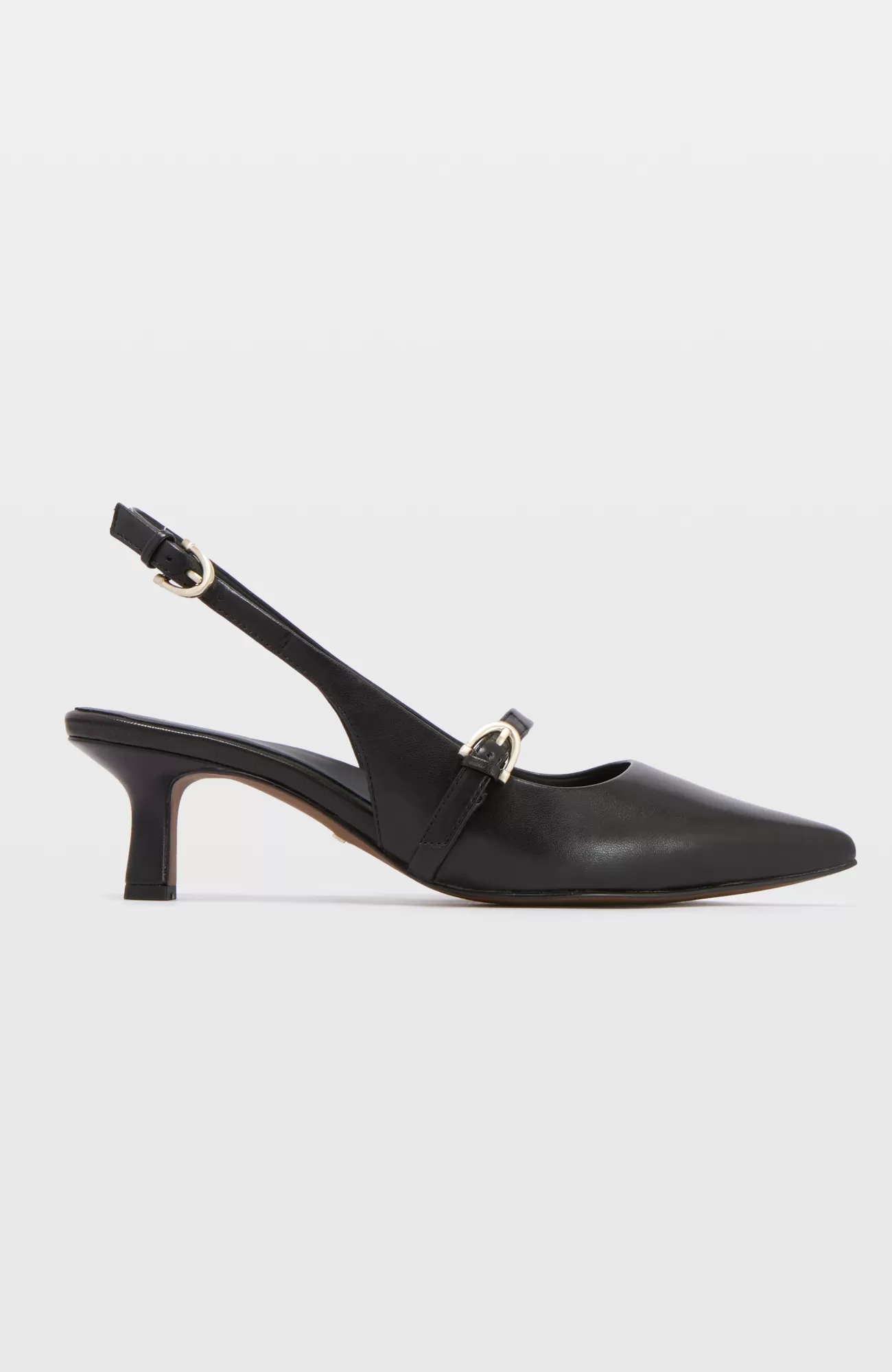 The leather slingback that goes from workdays to weekends. Designed with a sleek pointed toe and two adjustable straps at the ankle and vamp with goldtone buckles. Plus, the podiatrist-designed LuxaLite™ footbed has dual-layer support and cushioning, promising all-day comfort. 2" mid heel.