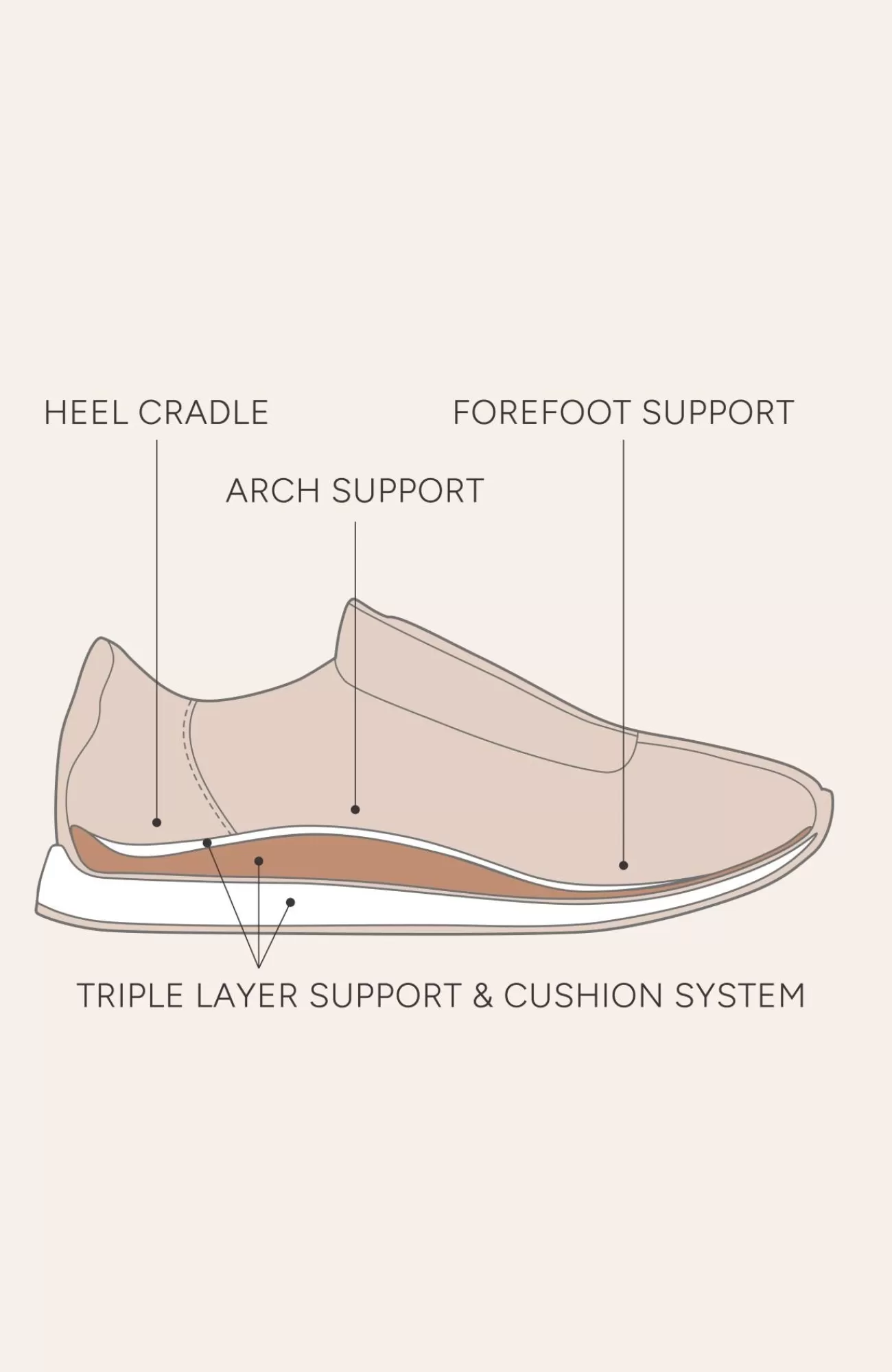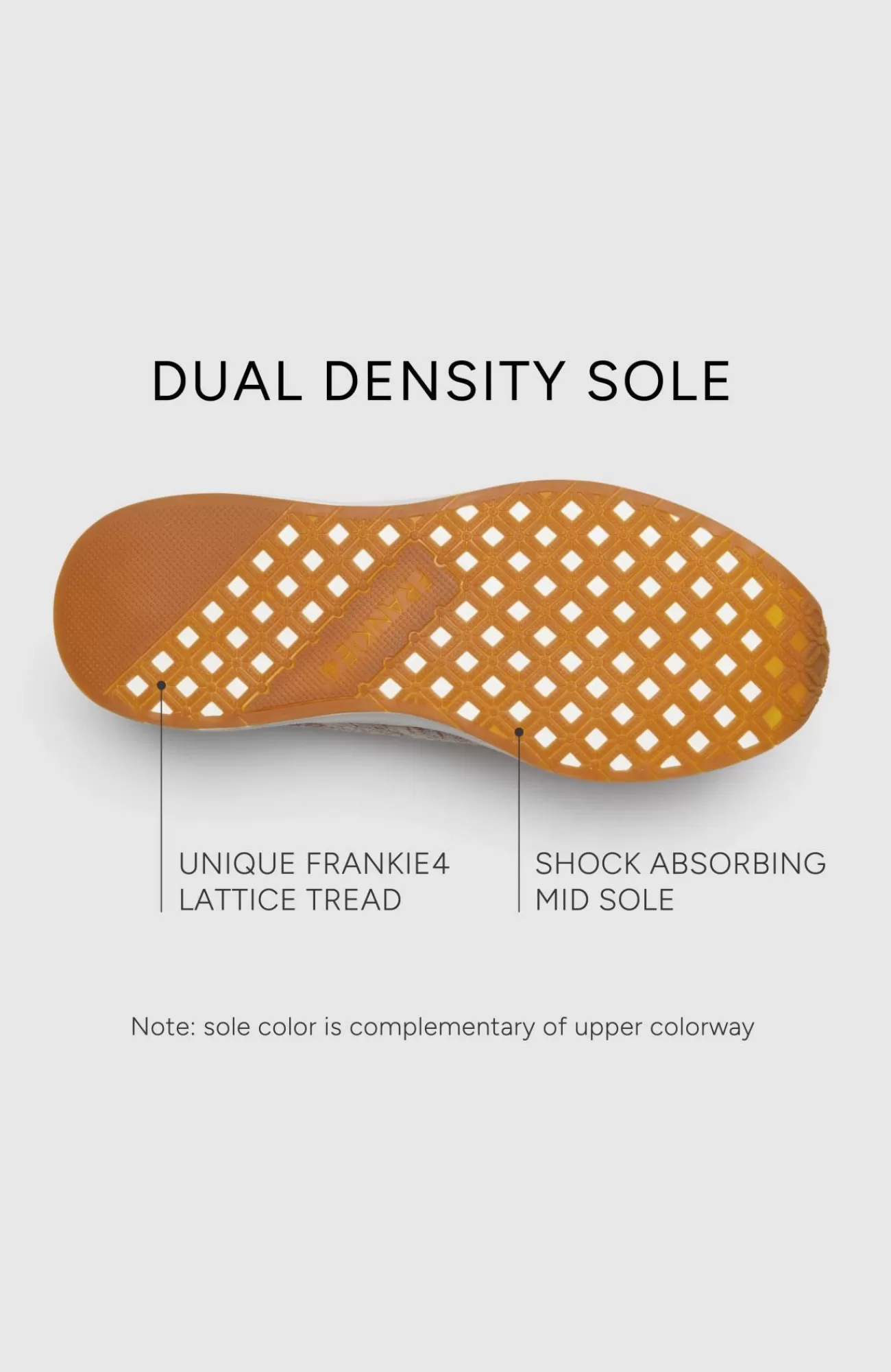 Dimity features an rPET knit upper made from recycled post-consumer plastic bottles. With a lightweight feel that doesn’t compromise on comfort, this casual, everyday sneaker can also be packed down easily into suitcases as the perfect travel companion. Set atop a dual-density injected phylon midsole and complemented by leather detailing, it has a podiatrist-designed triple-layered support and cushion system and FRANKIE4’s customizable Sole Saver Pack, including components that can be adjusted for a standard, narrow or wide fit.