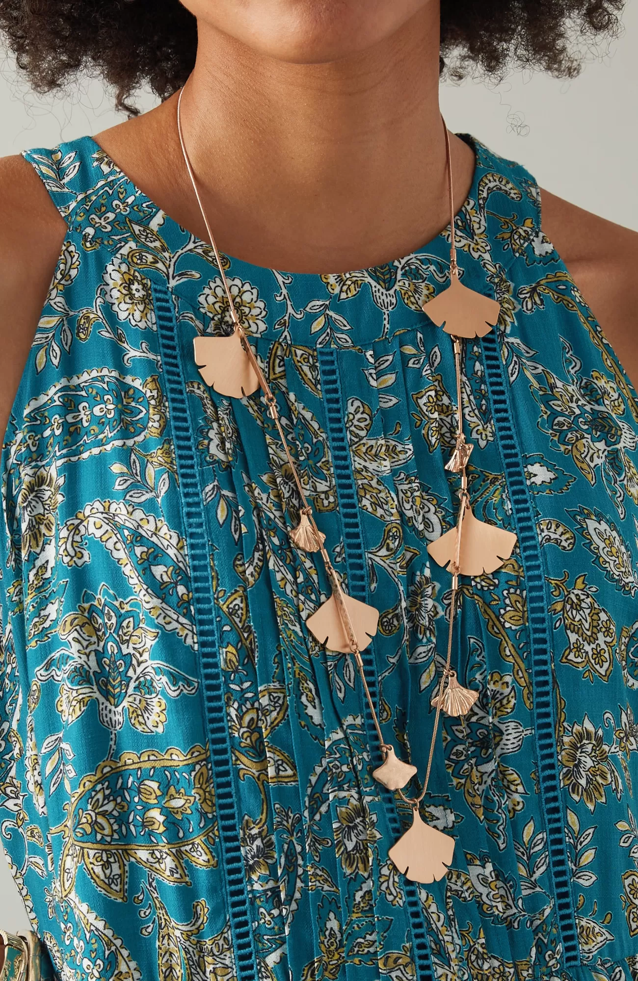 Elegant and elevated, our goldtone necklace features stationed ginkgo leaves in a mix of sizes and textures. Lobster-claw closure. Adjusts from 28" to 31". 1¼" drop.