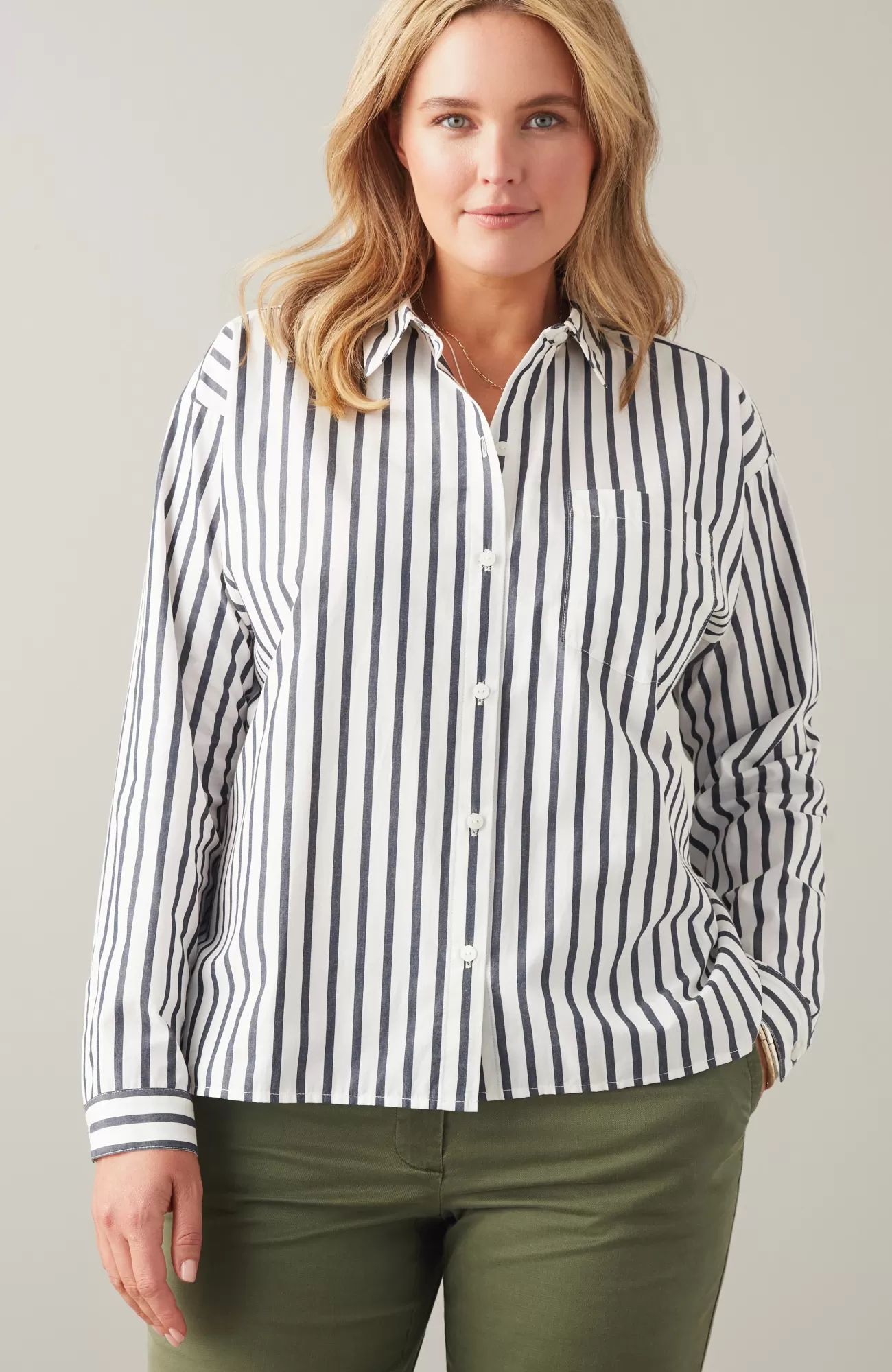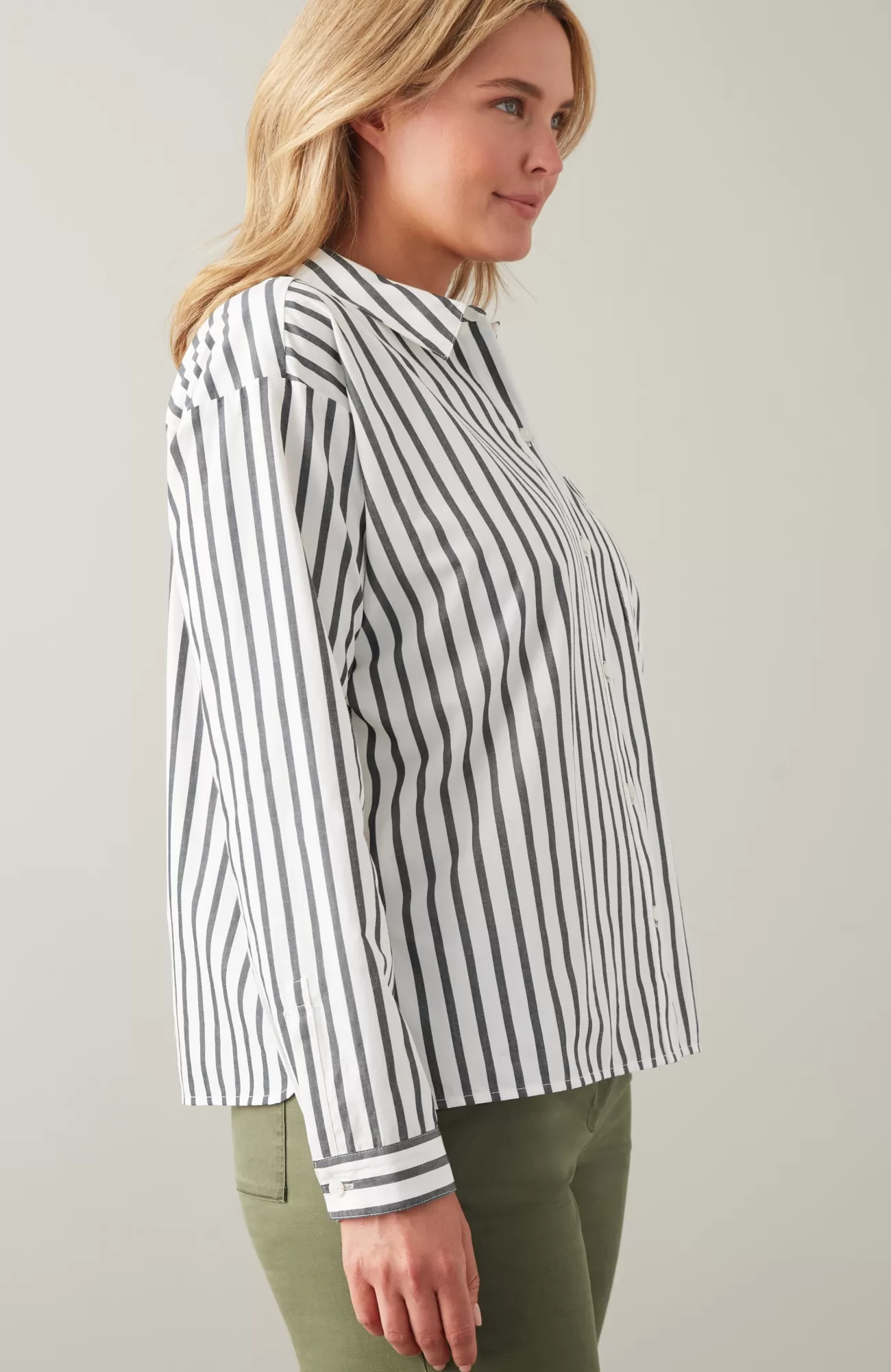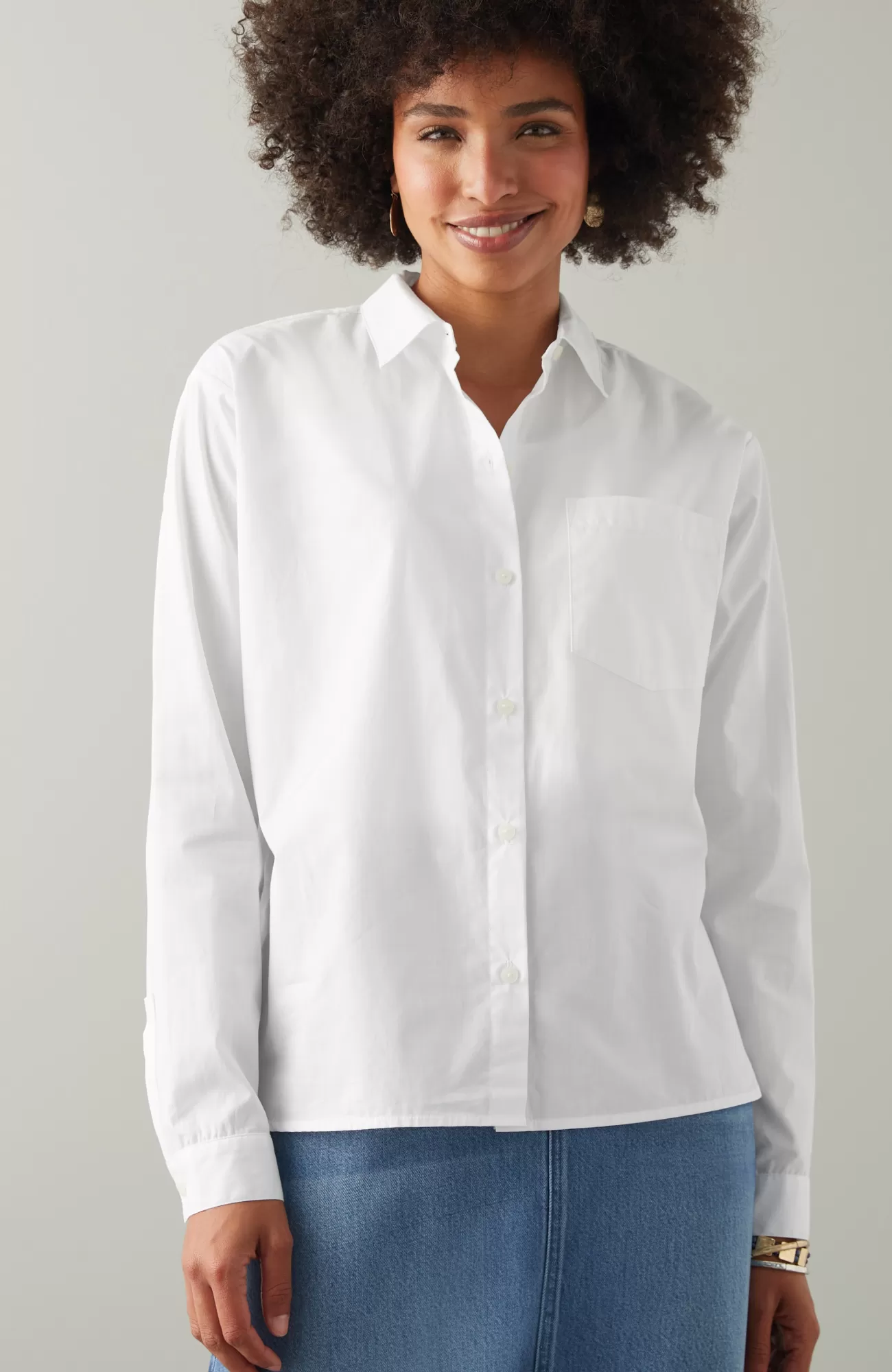 Classic style, with a twist. The individualist shirt is designed in a shorter length and meant to be worn untucked. It has all the details you love, like a shirt collar, shirttail hemline and buttoned cuffs. There are so many ways to wear it: open over a tank, layered under a sweater or buttoned for a more elevated look. Back yoke with box pleat. Gusseted side vents.