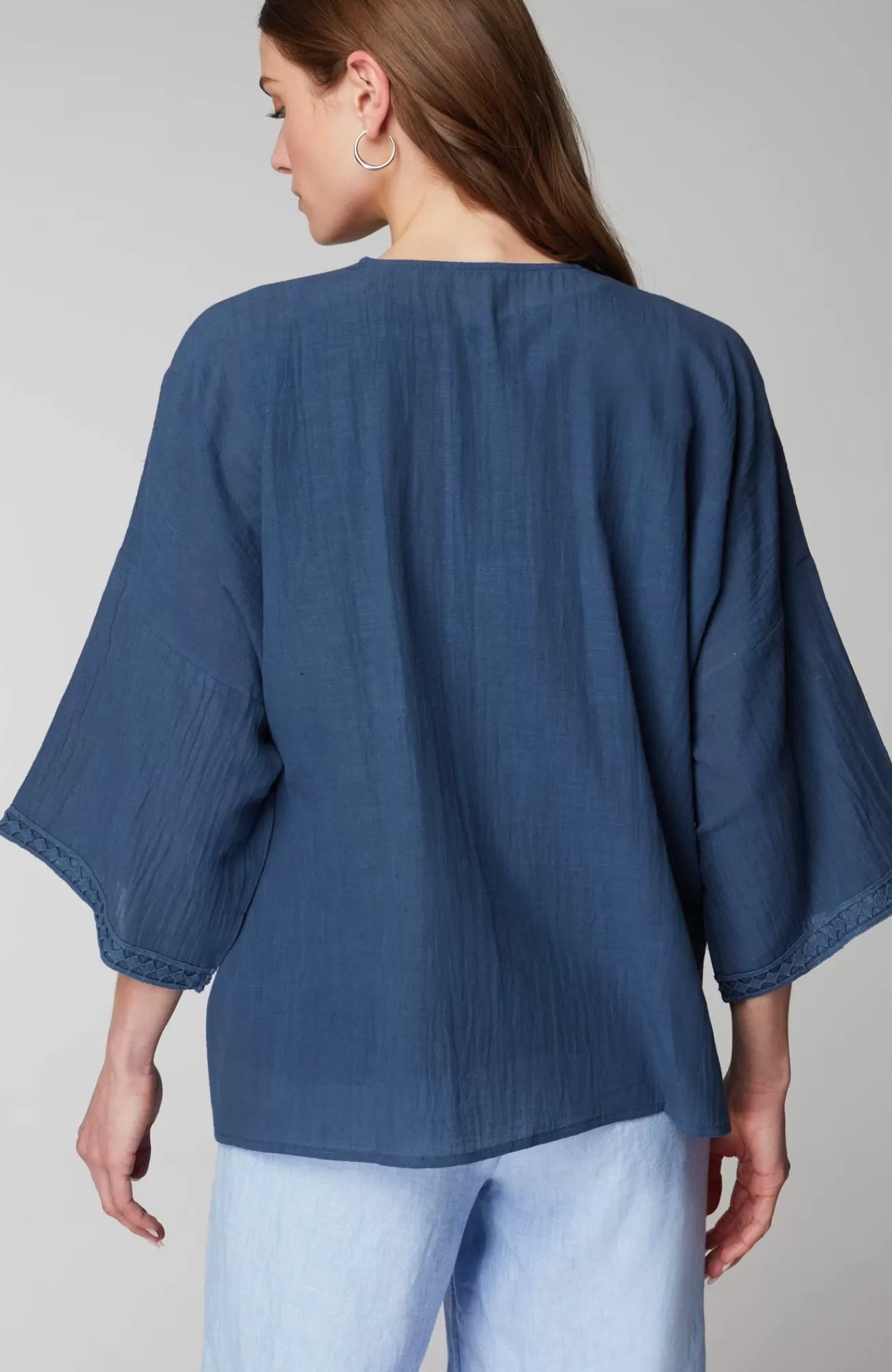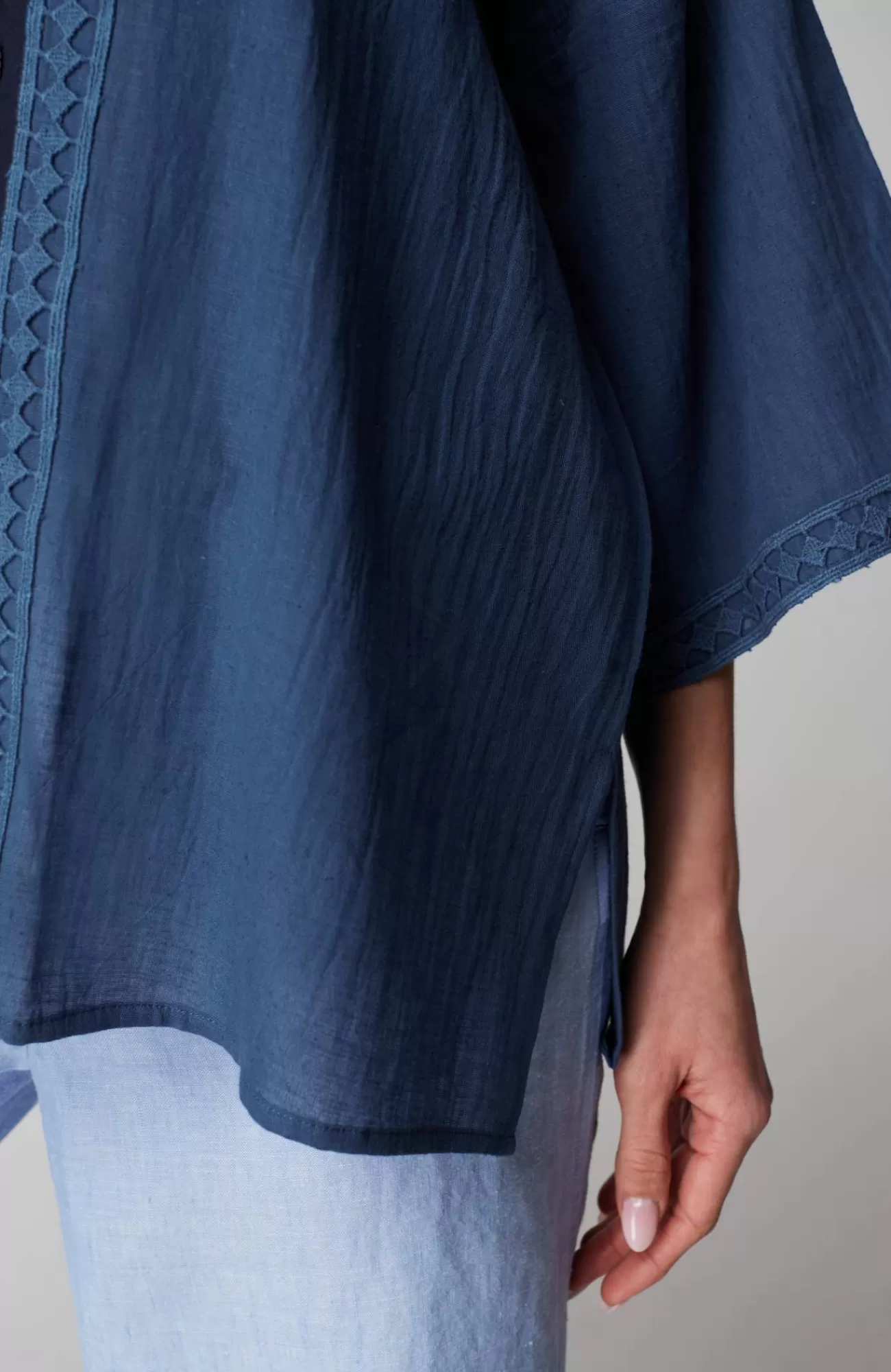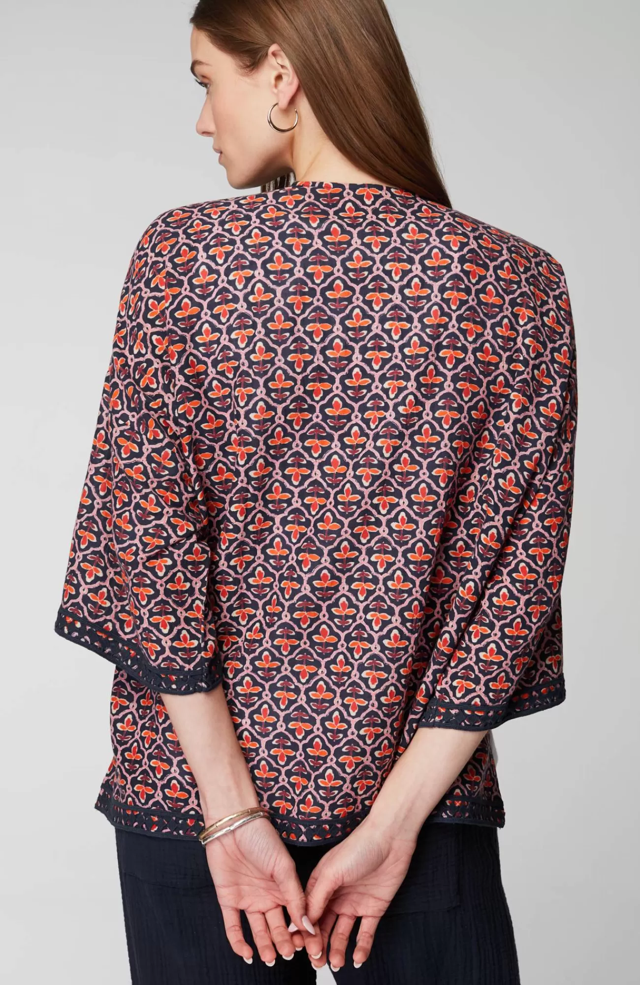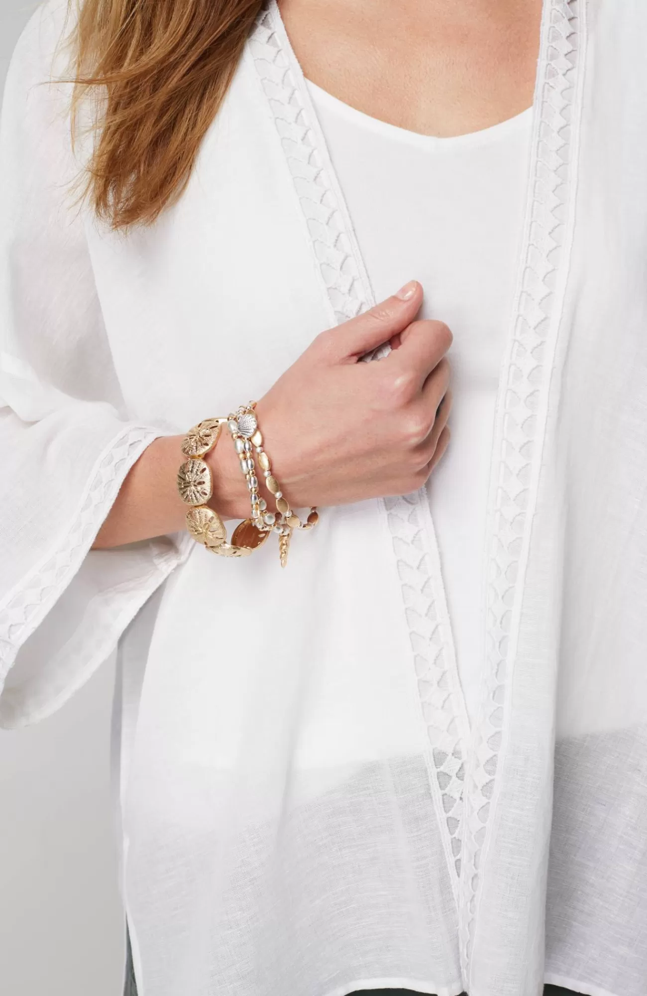The lightest layer in your closet—this open-front jacket feels like a breeze, whether you're headed to the beach,the office or a summer celebration. We love how the border trim at the center and sleeves adds just-right detail.