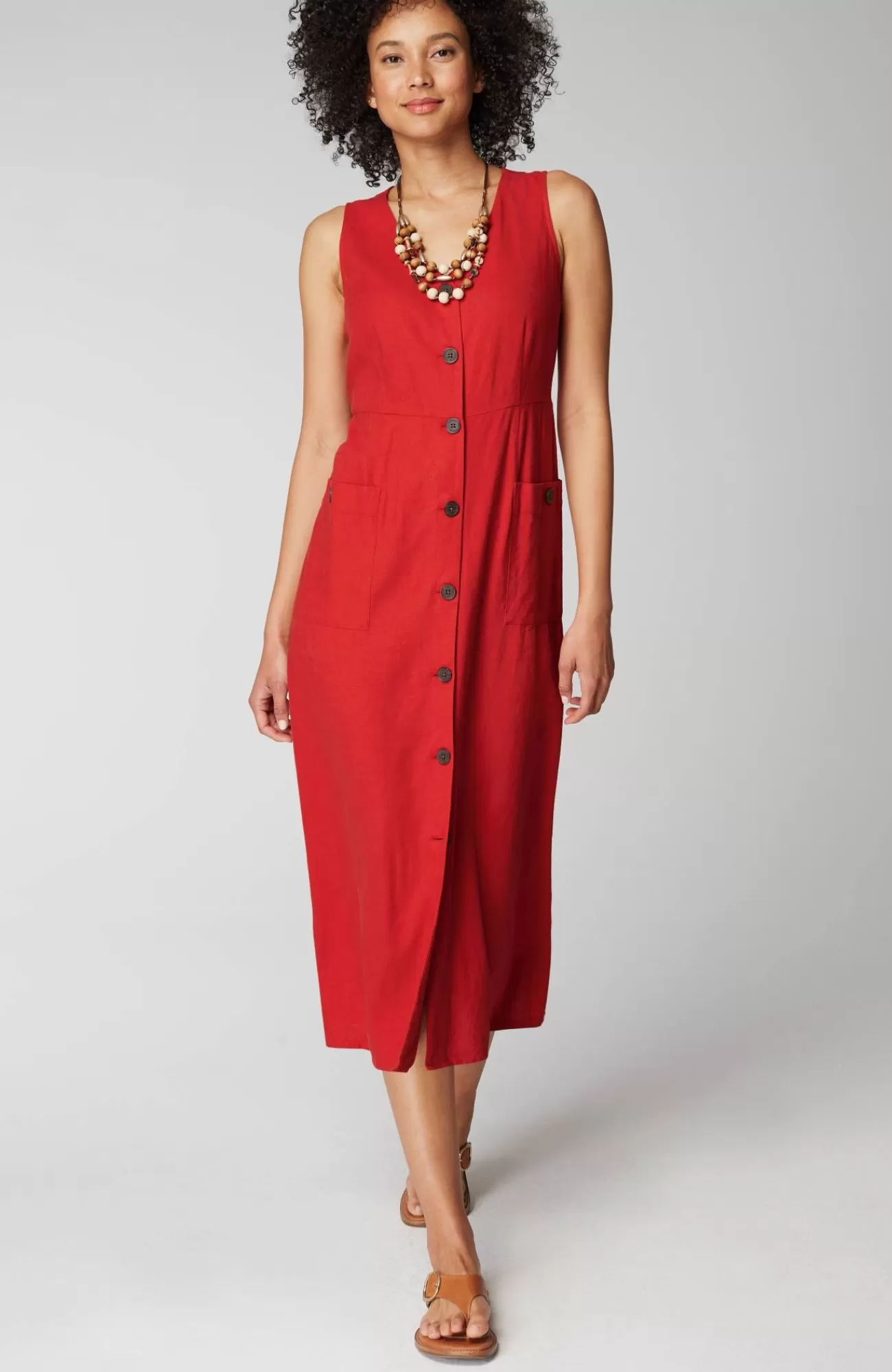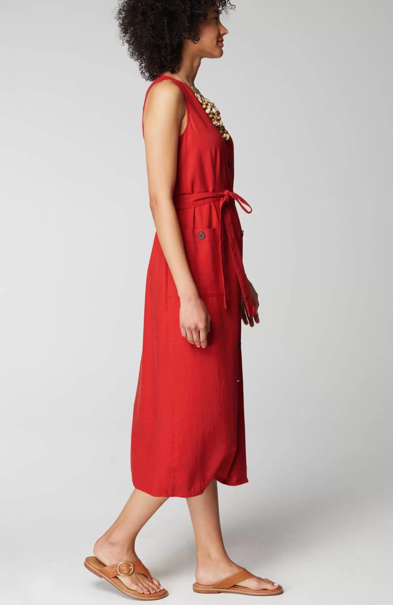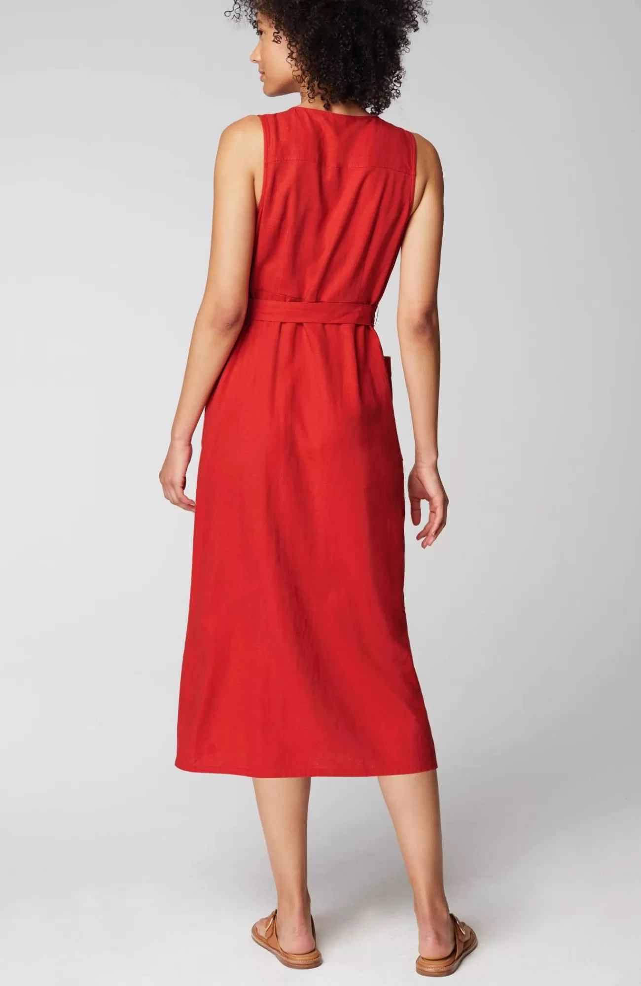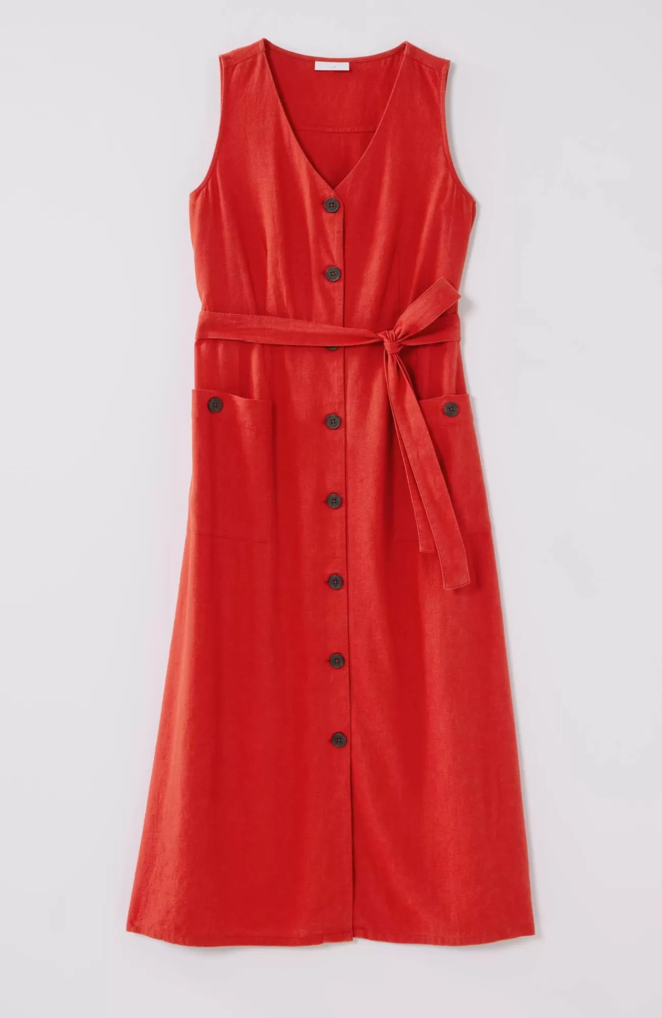 Our summer uniform: a lightweight linen-blend dress. We designed ours with a full button front, removable belt for versatile styling and patch pockets.