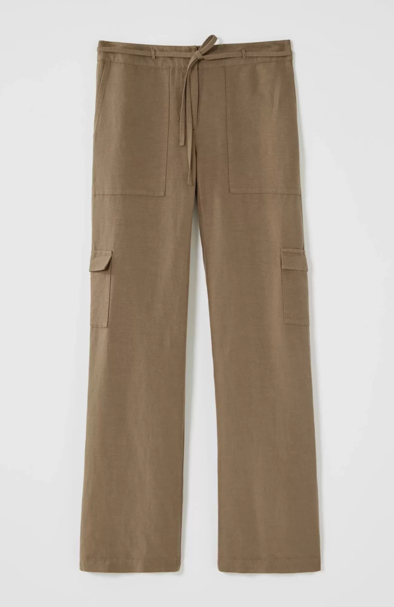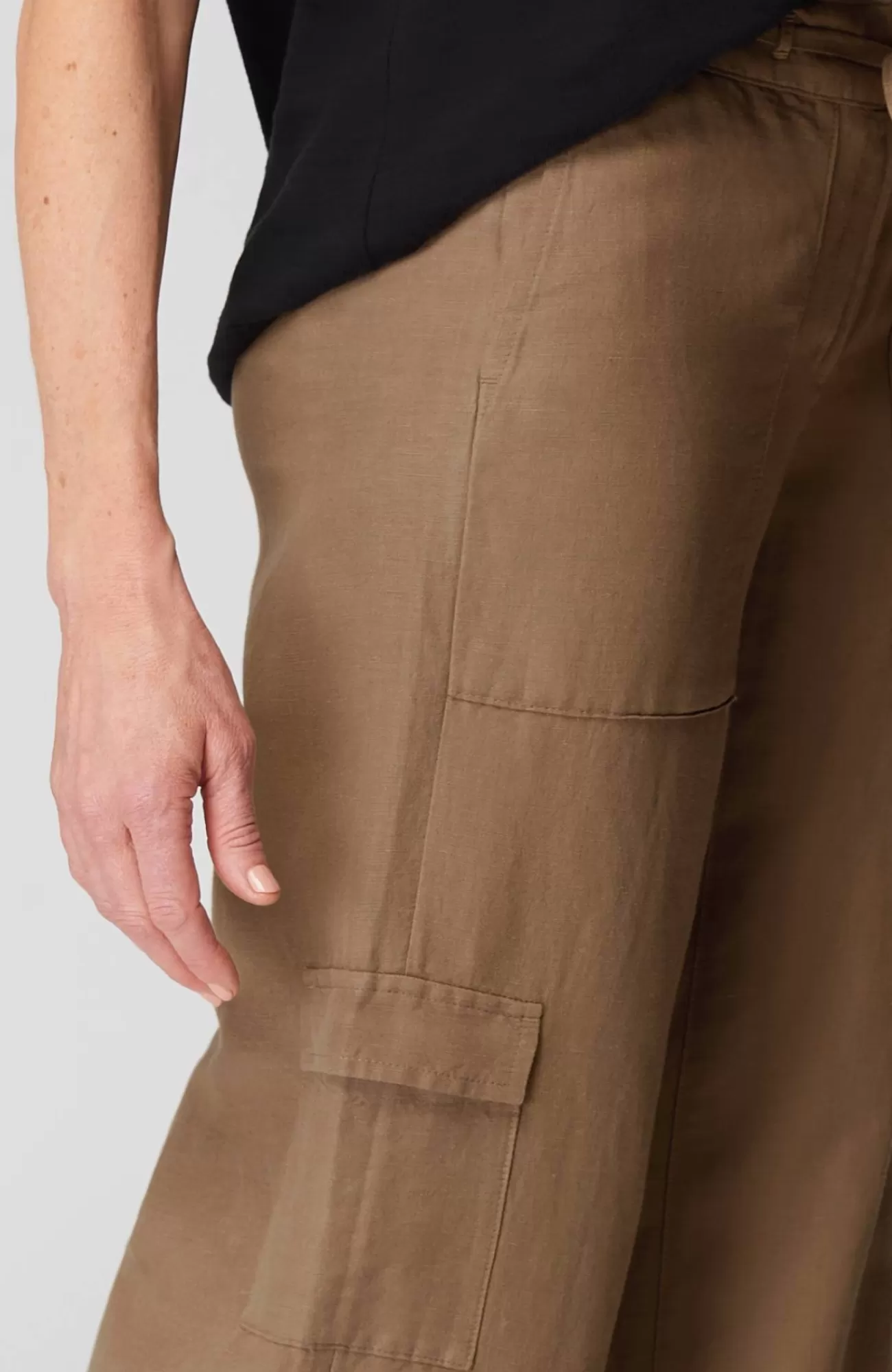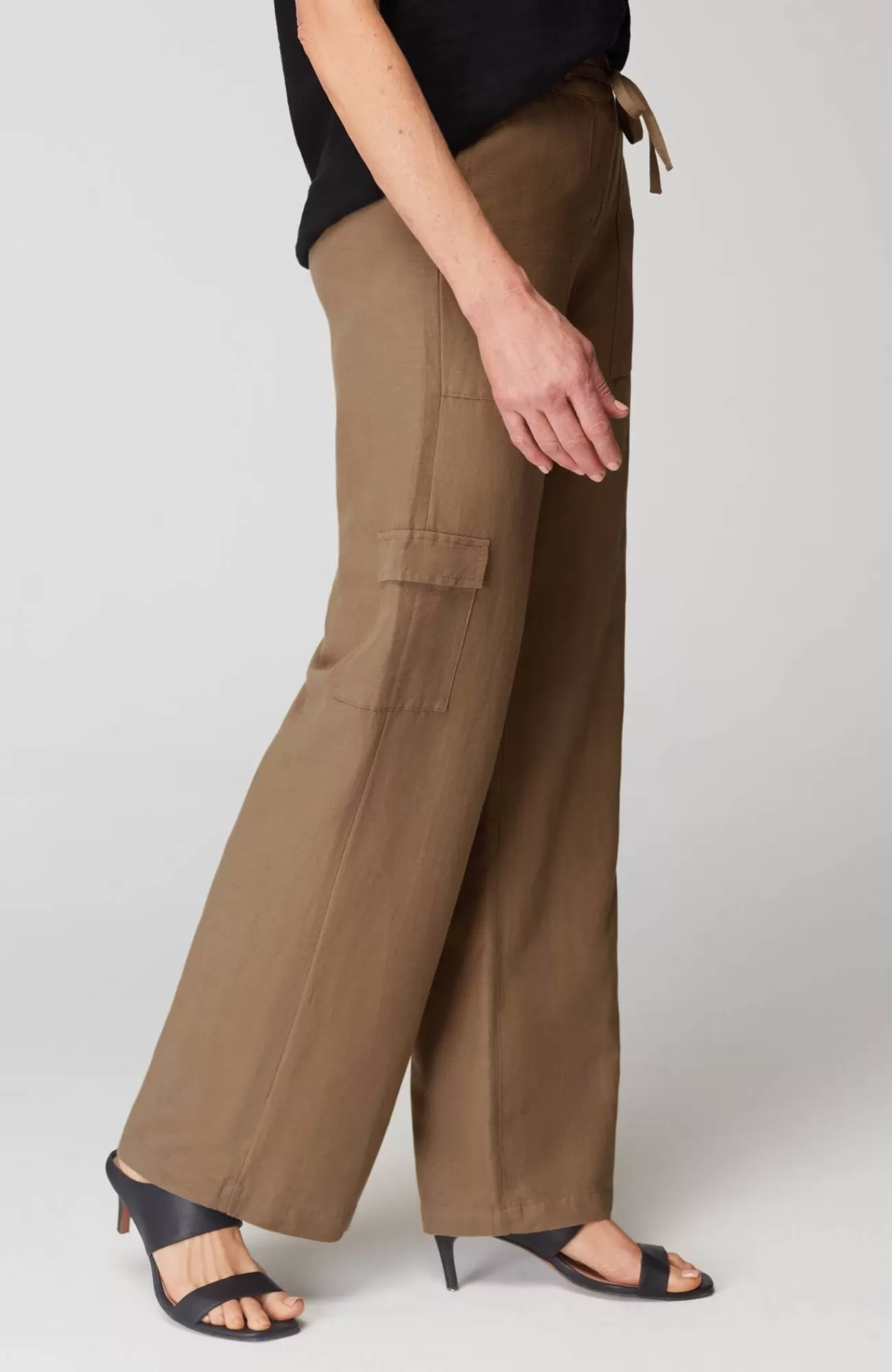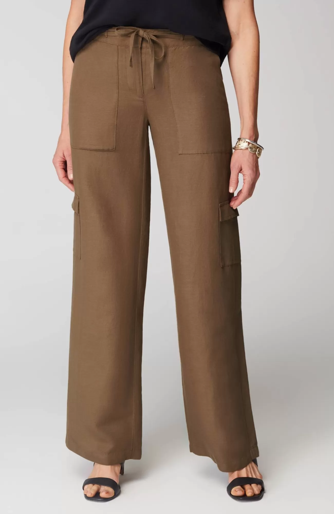 We're continuing the cargo trend into summer! Designed in a lightweight linen blend, these wide-leg pants are a great foundation for every warm-weather outfit. We love the side cargo flap pockets, front patch pockets and back welt pockets for convenience and style. The zip fly with hook-and-bar closure is accented with a tie front, and the elasticized back enhances the all-day comfort.