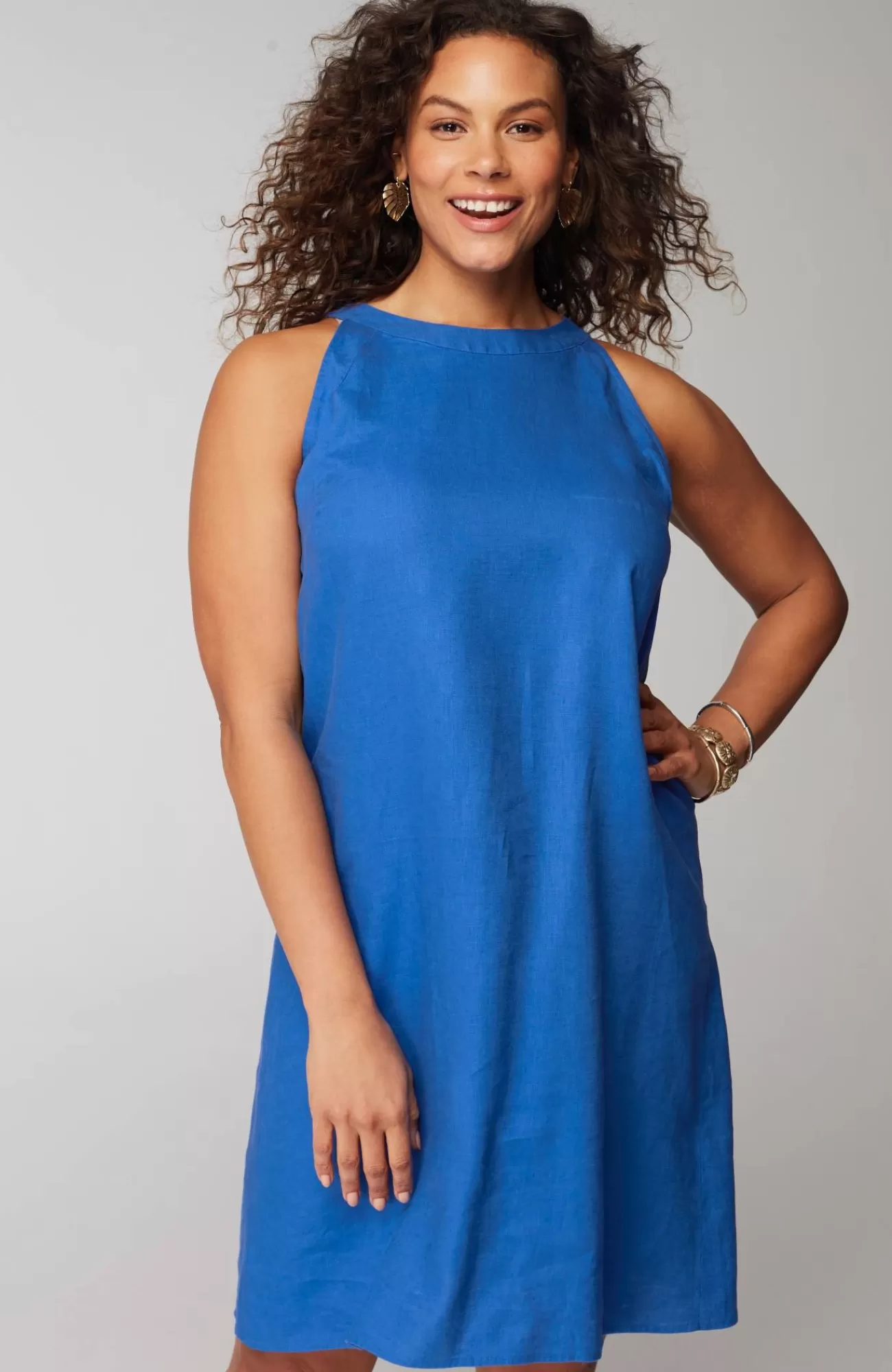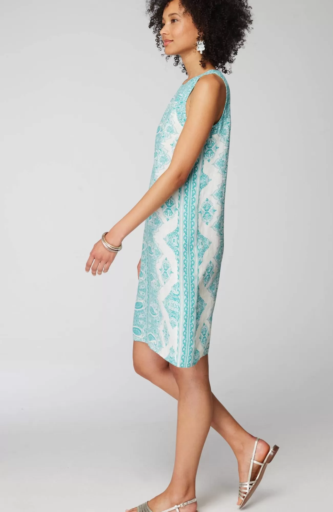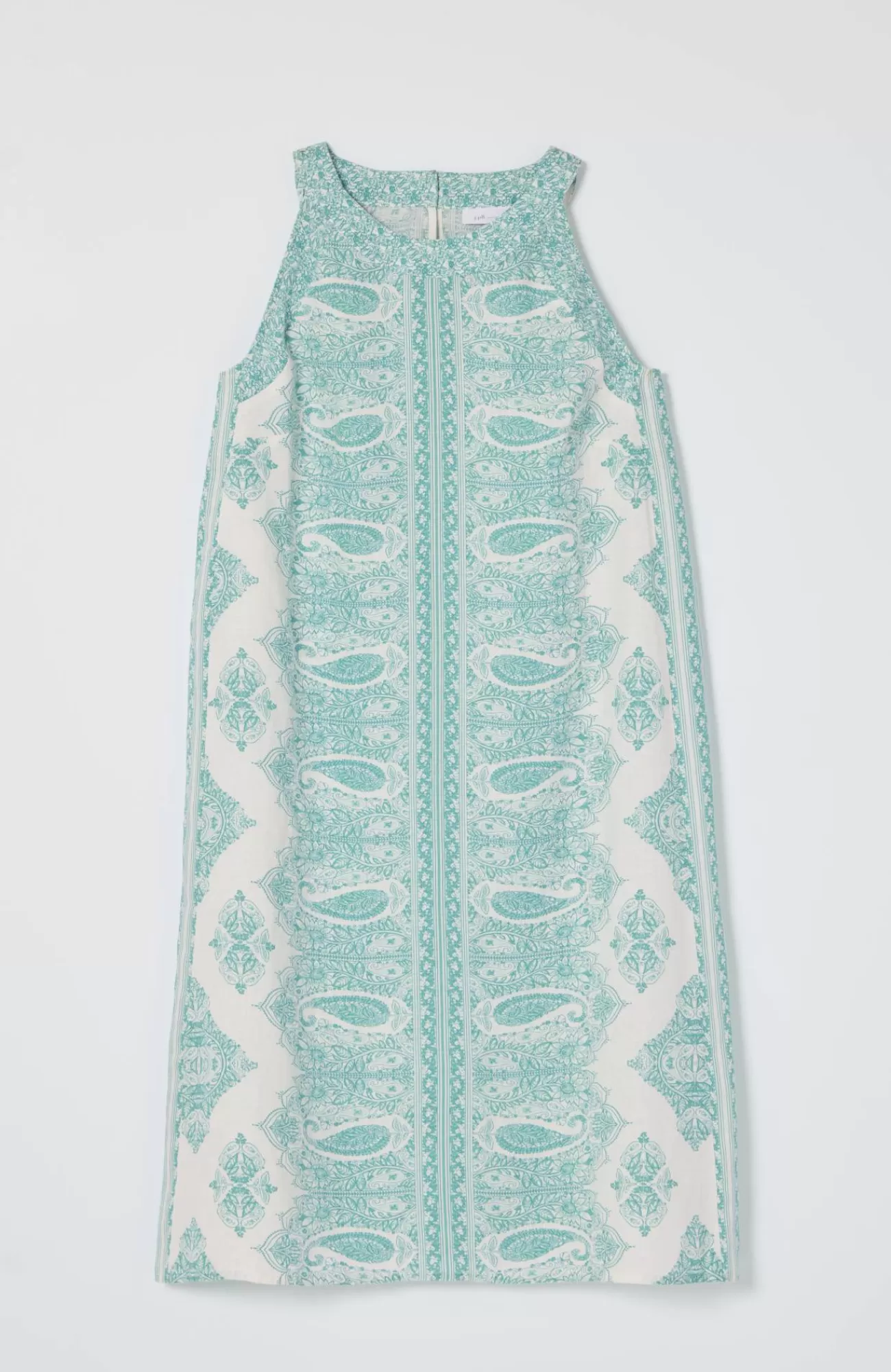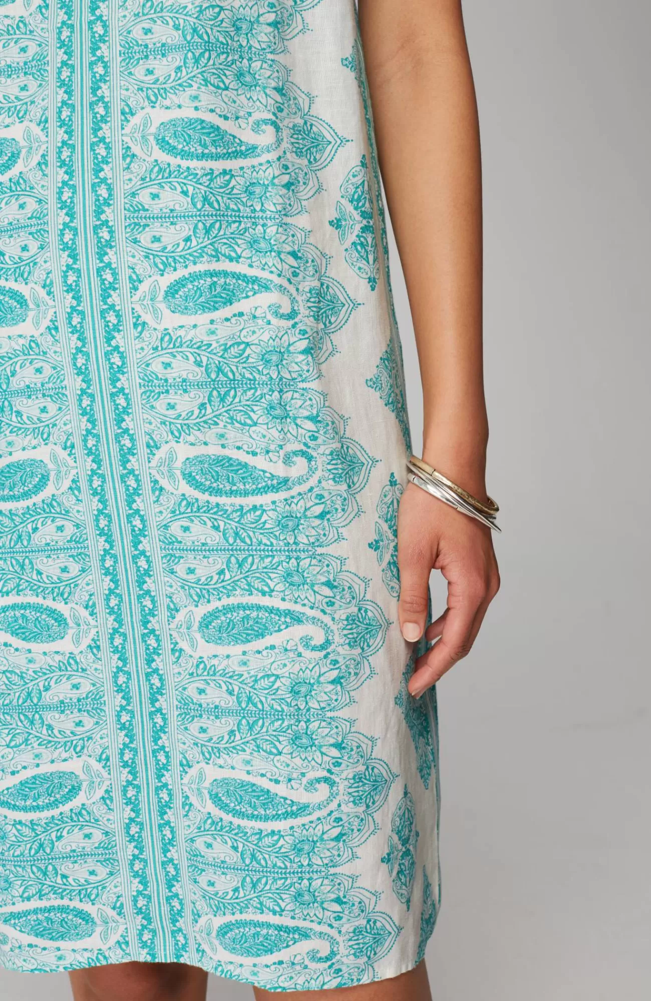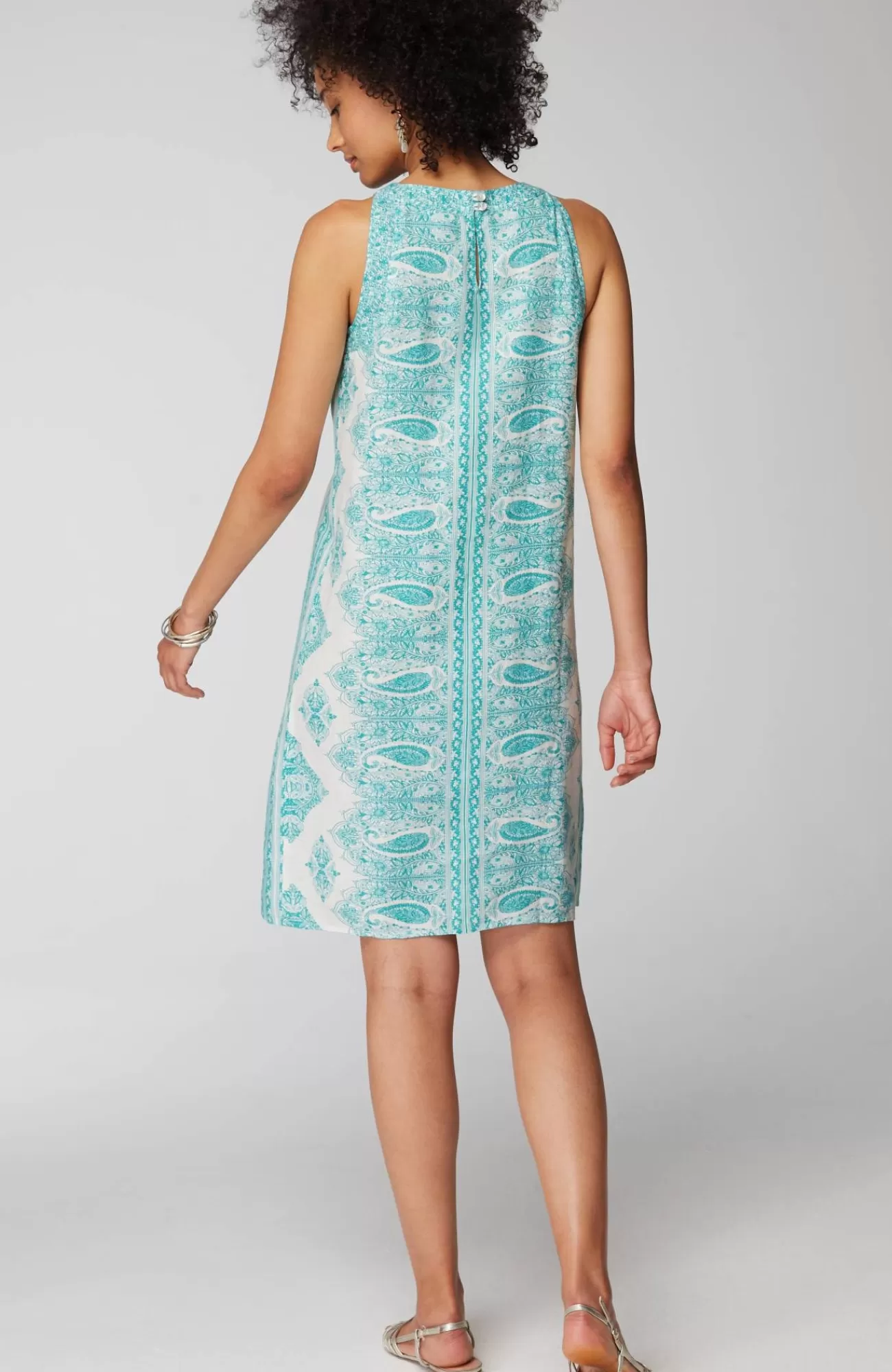 This dress is all about summer?designed in lightweight linen, it comes in your choice of a vibrant solid or unique paisley print. Back keyhole with button closure.