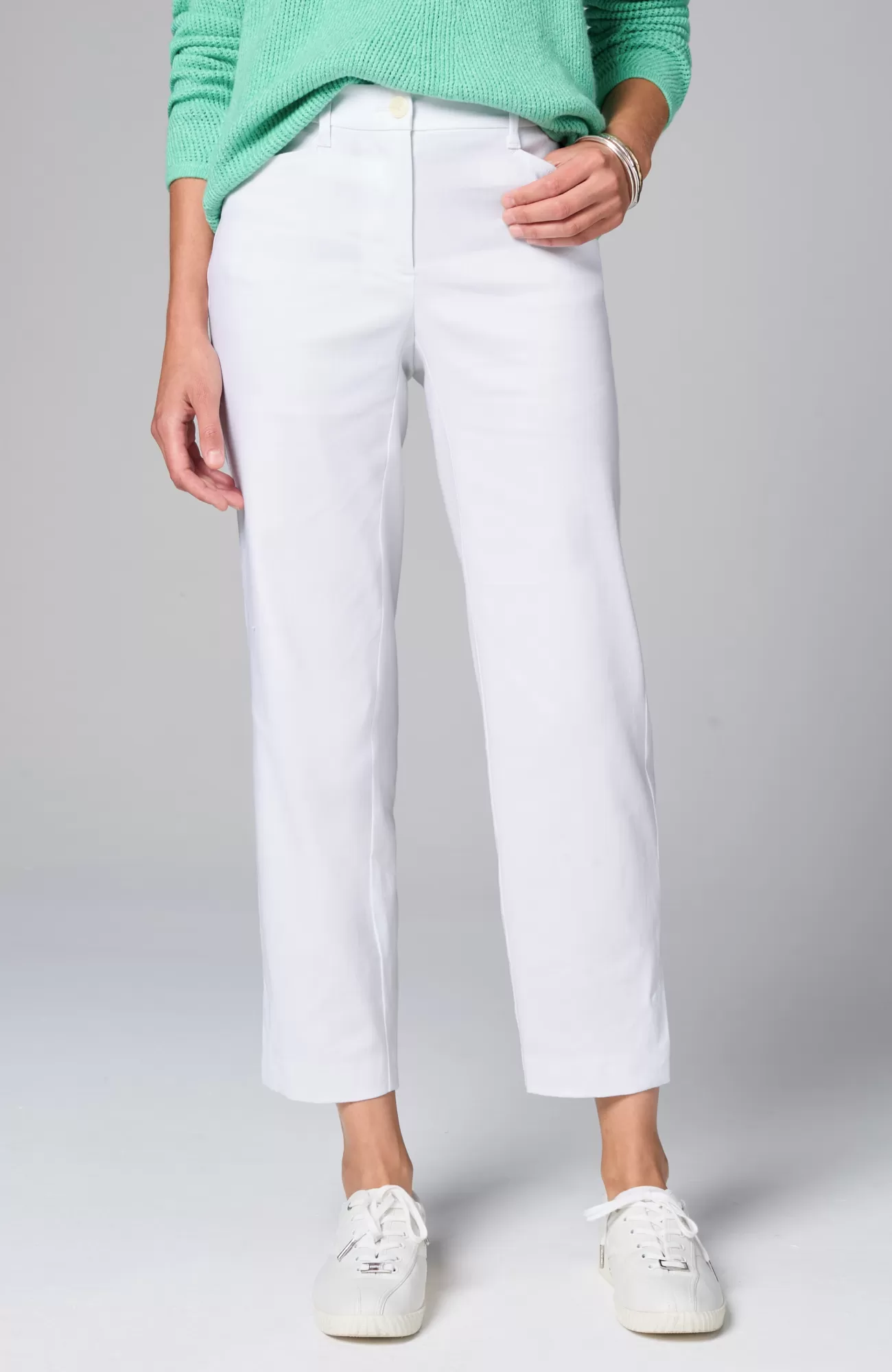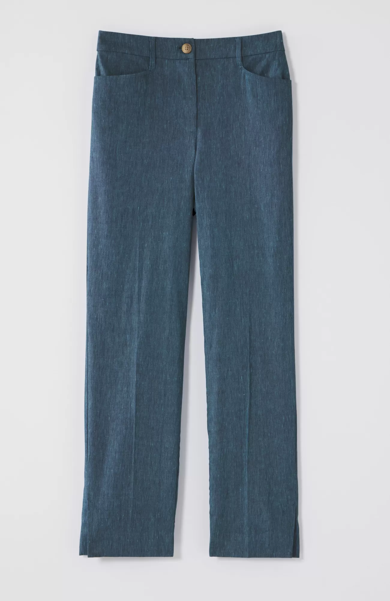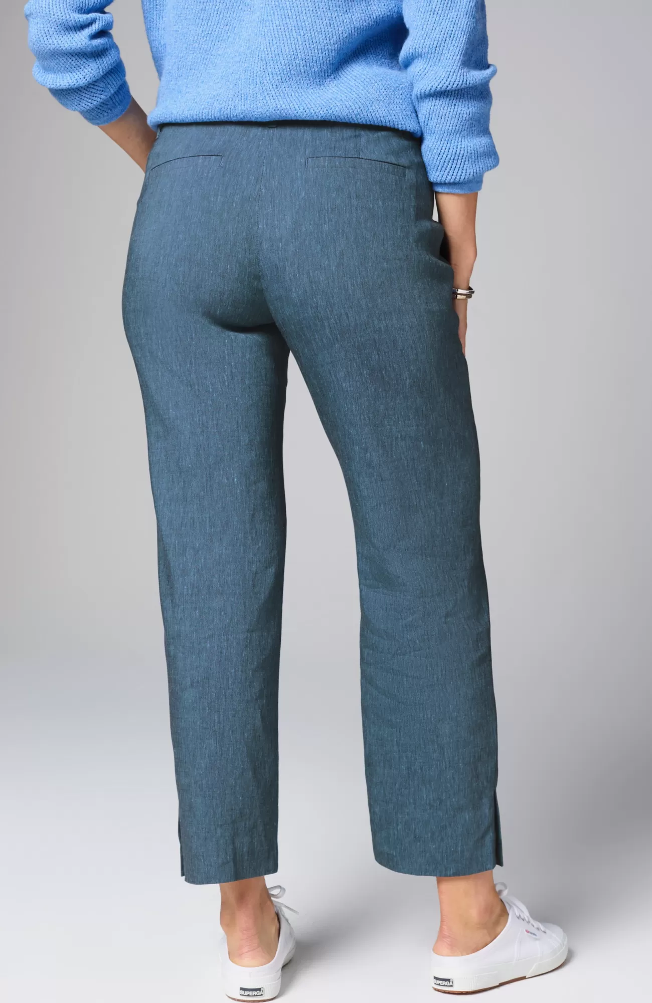 Designed in our much-loved linen-stretch fabric, our pull-on crops have been updated in a straight-leg silhouette. A flat front and elasticized back waistband make them easy to wear while maintaining a polished look. Angled front pockets and back welt pockets. Fly front. Side slits at hem.