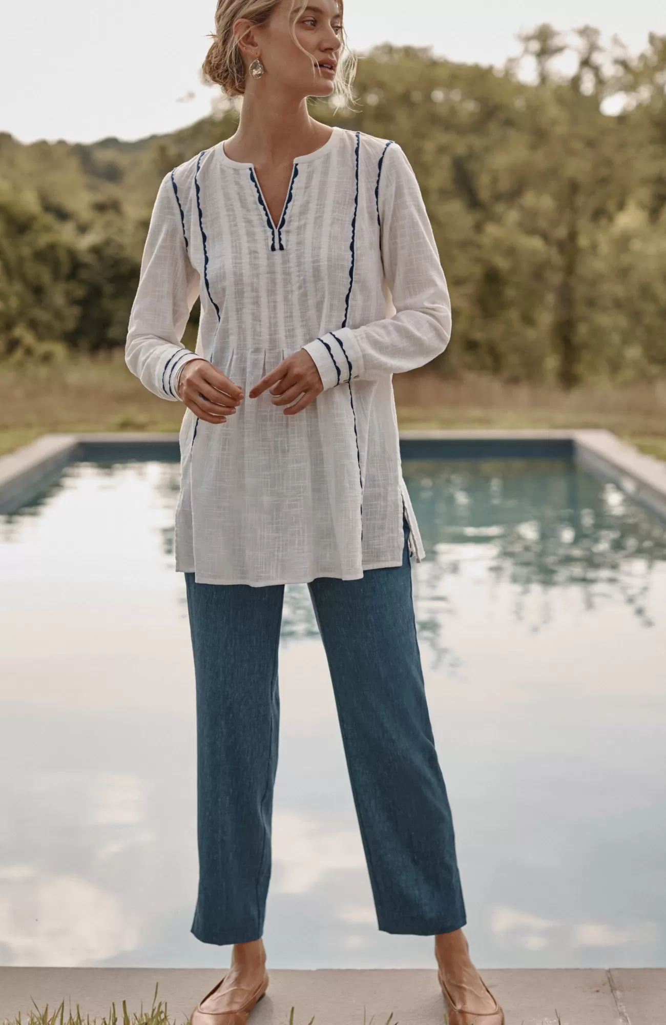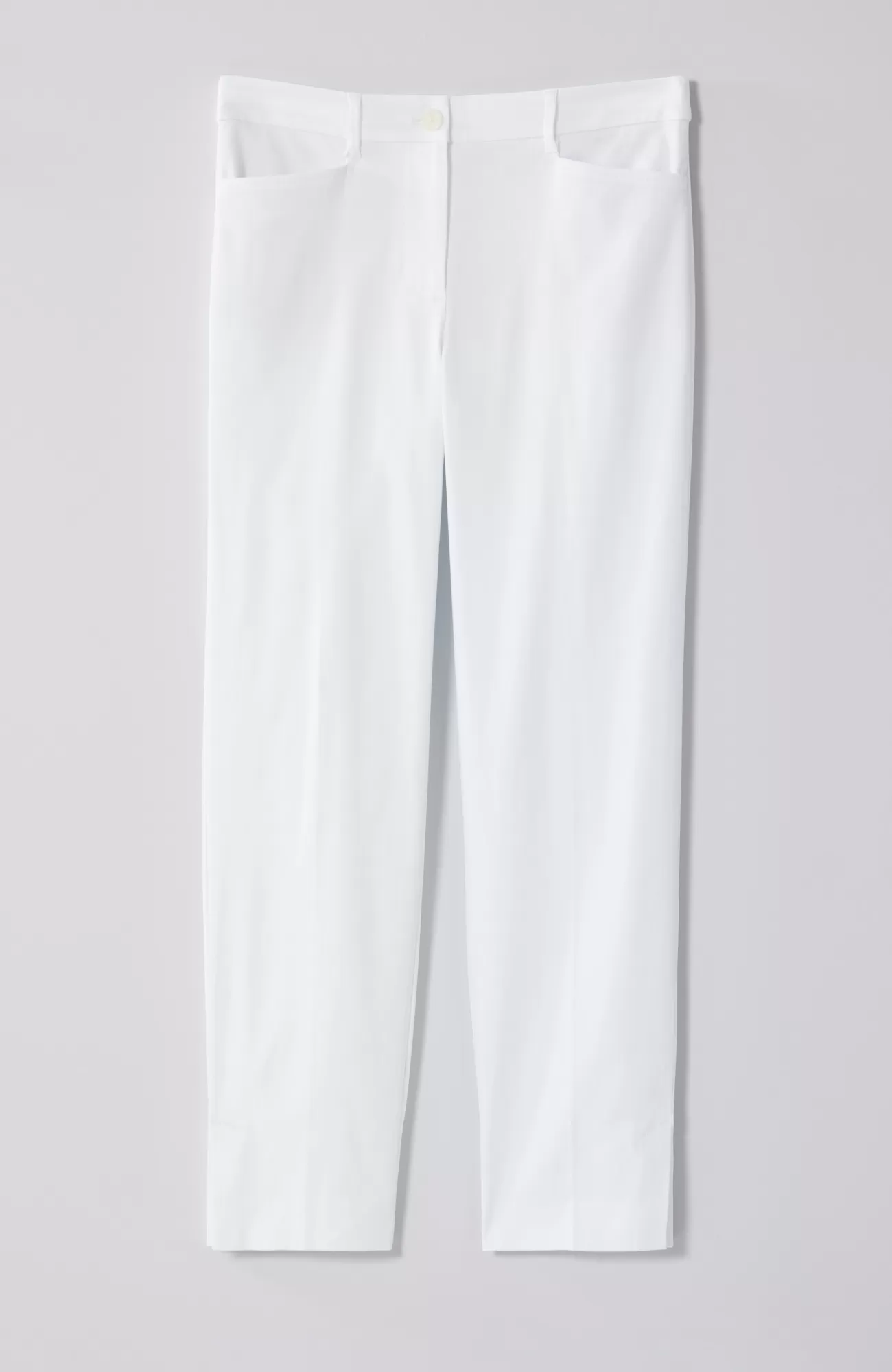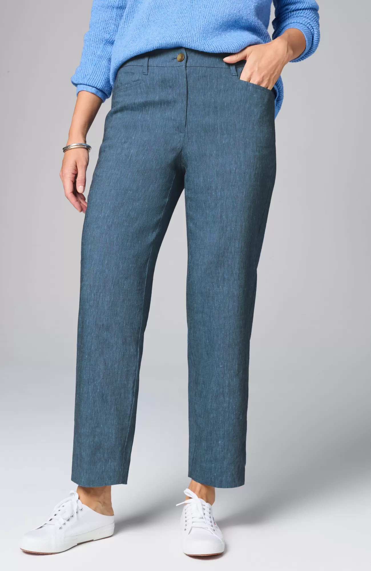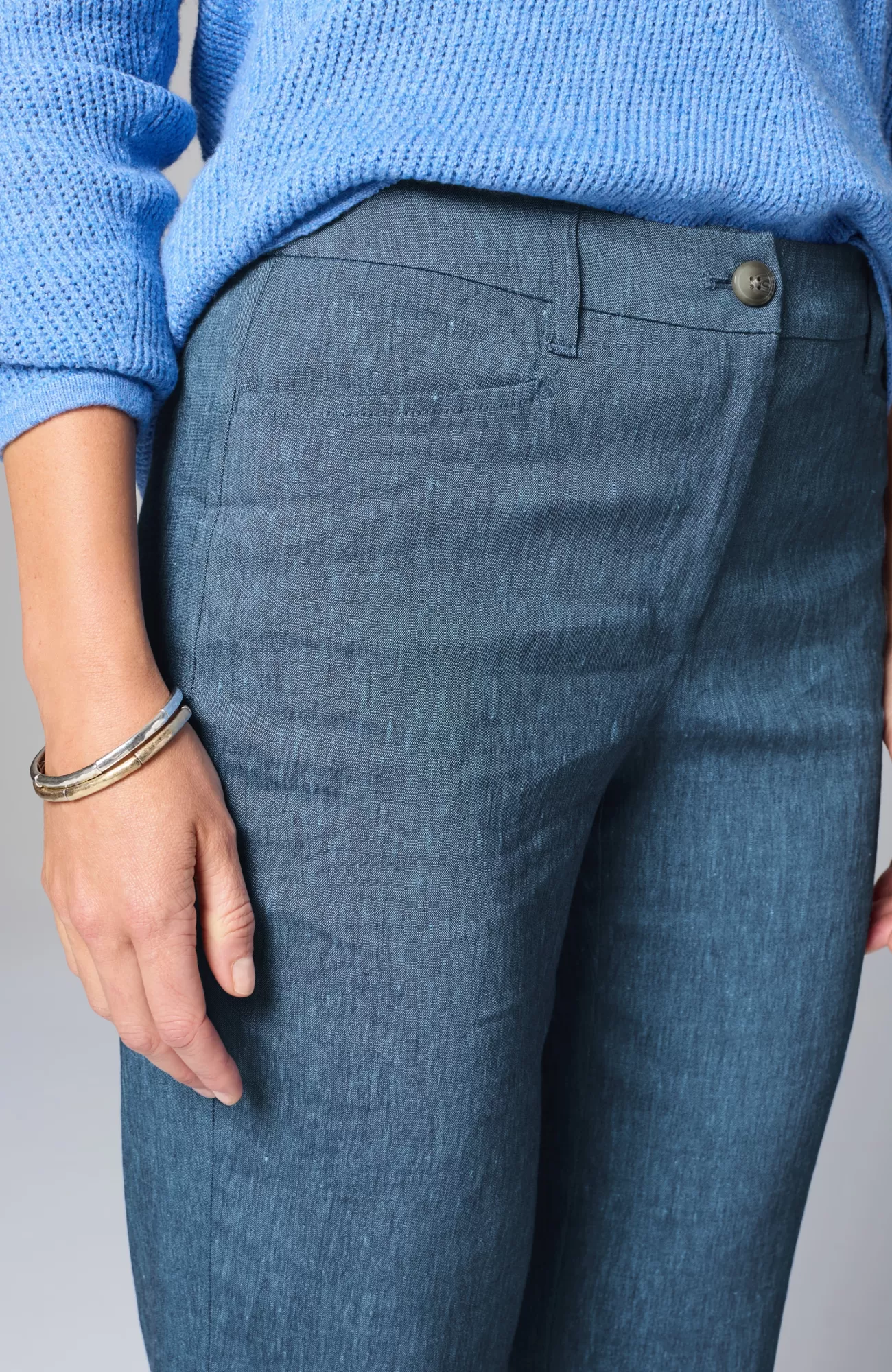 Designed in our much-loved linen-stretch fabric, our pull-on crops have been updated in a straight-leg silhouette. A flat front and elasticized back waistband make them easy to wear while maintaining a polished look. Angled front pockets and back welt pockets. Fly front. Side slits at hem.