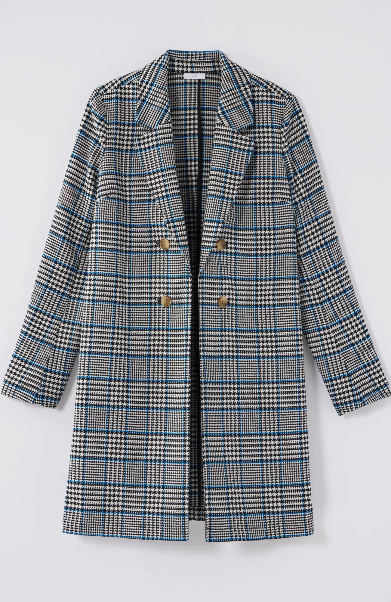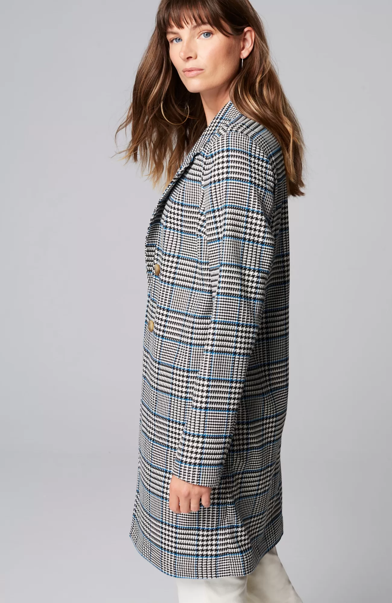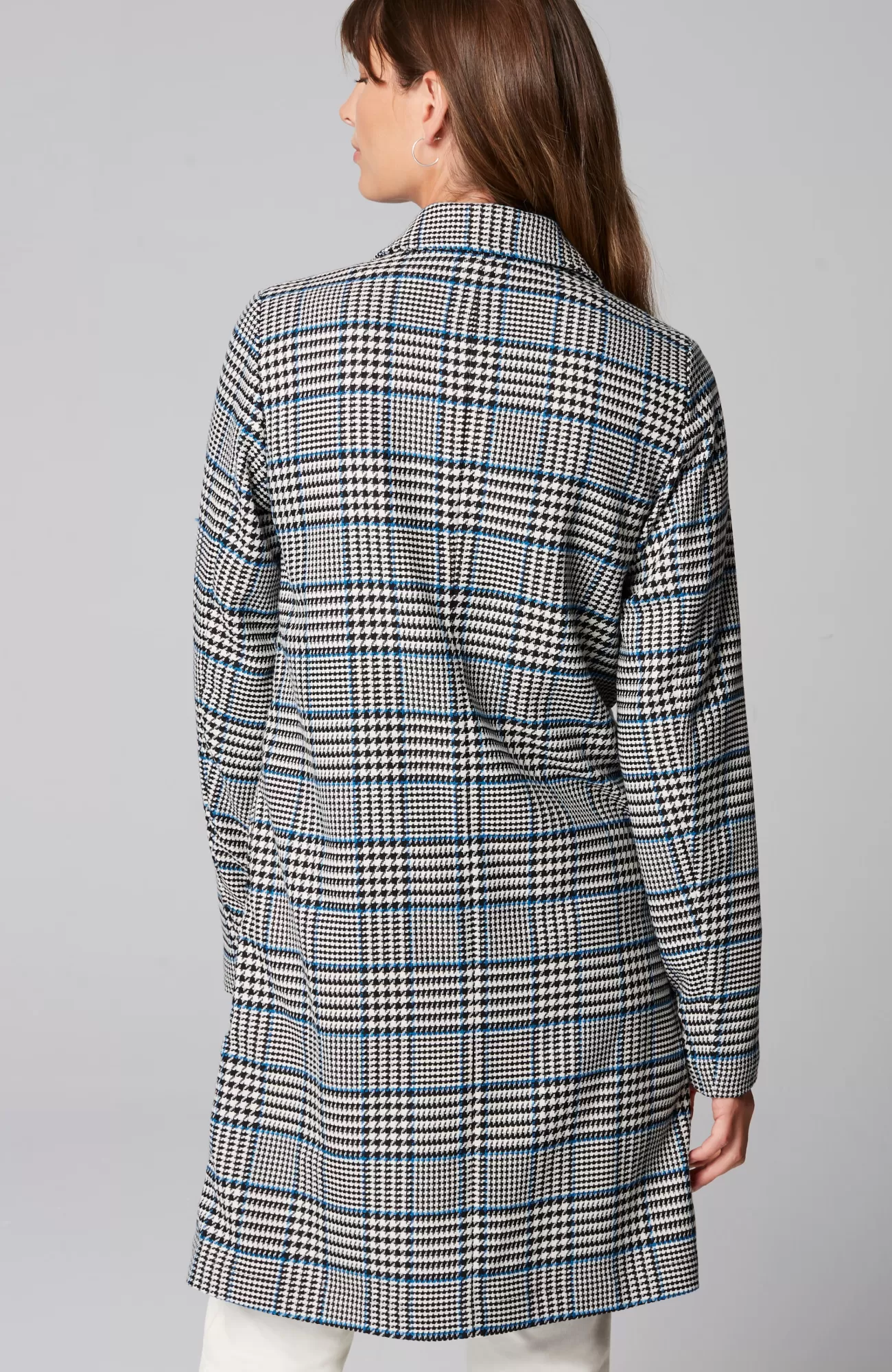 Designed in a classic menswear-inspired plaid pattern, our long open-front duster is the perfect layer for the season. We kept the details you love, including a notched collar and side pockets. Nonfunctional buttons give it the tailored look of a double-breasted jacket. Unlined.