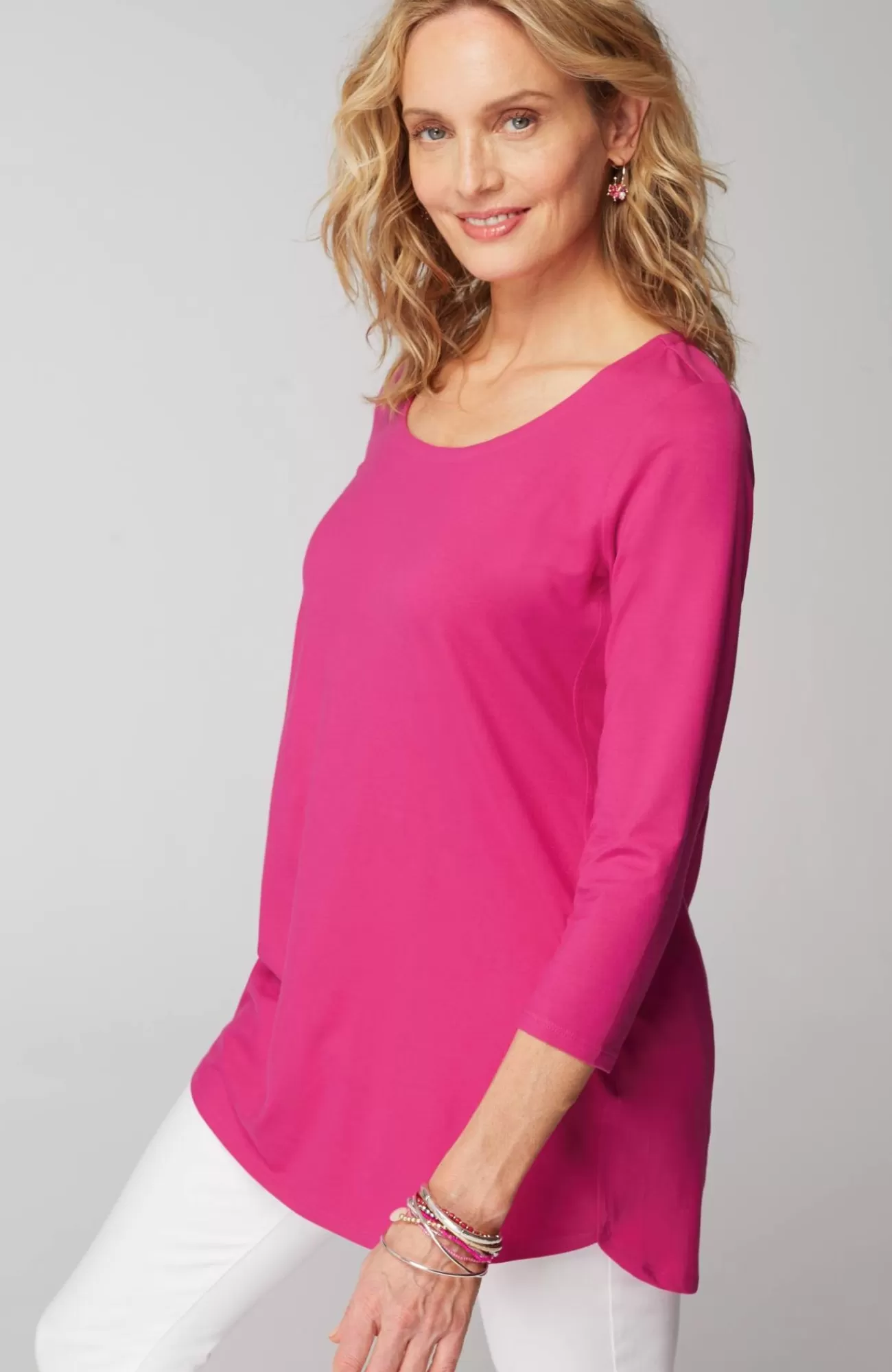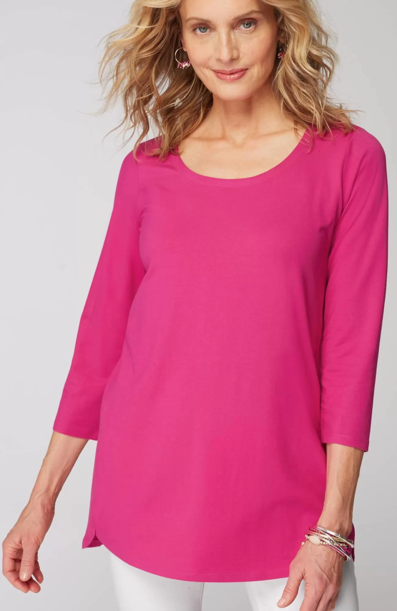 Crafted from the world's softest Supima® cotton, in endless spring-perfect colors and prints. Designed in a chic longer length, with a flattering curved hem.