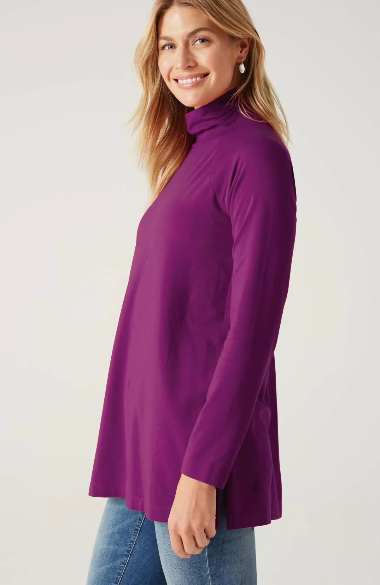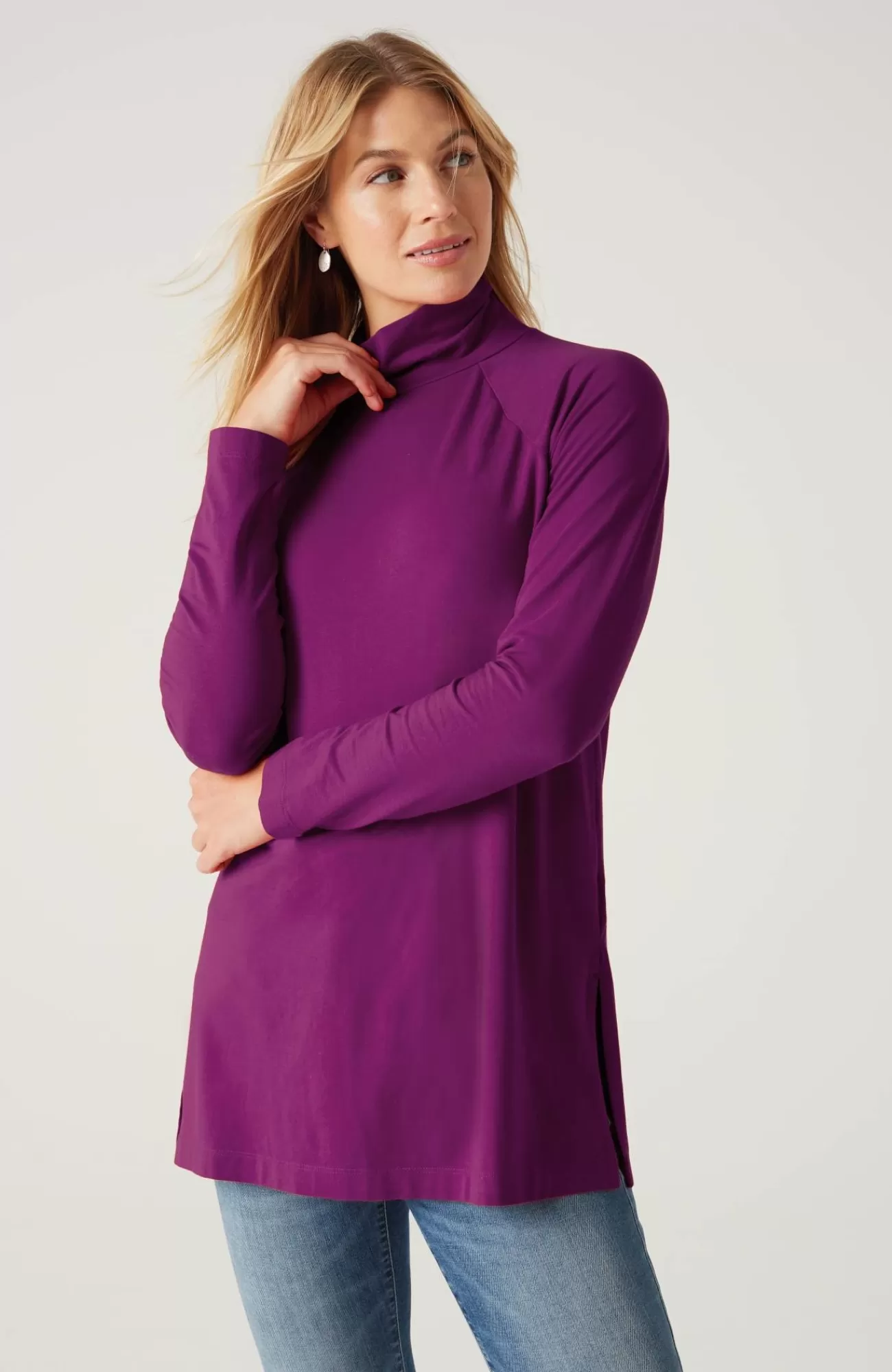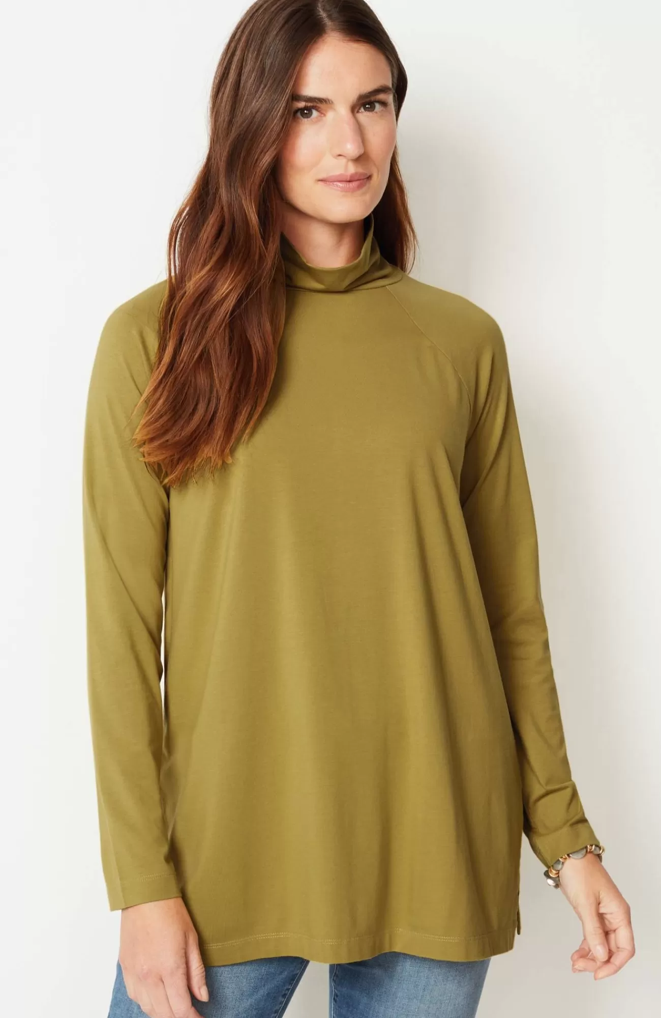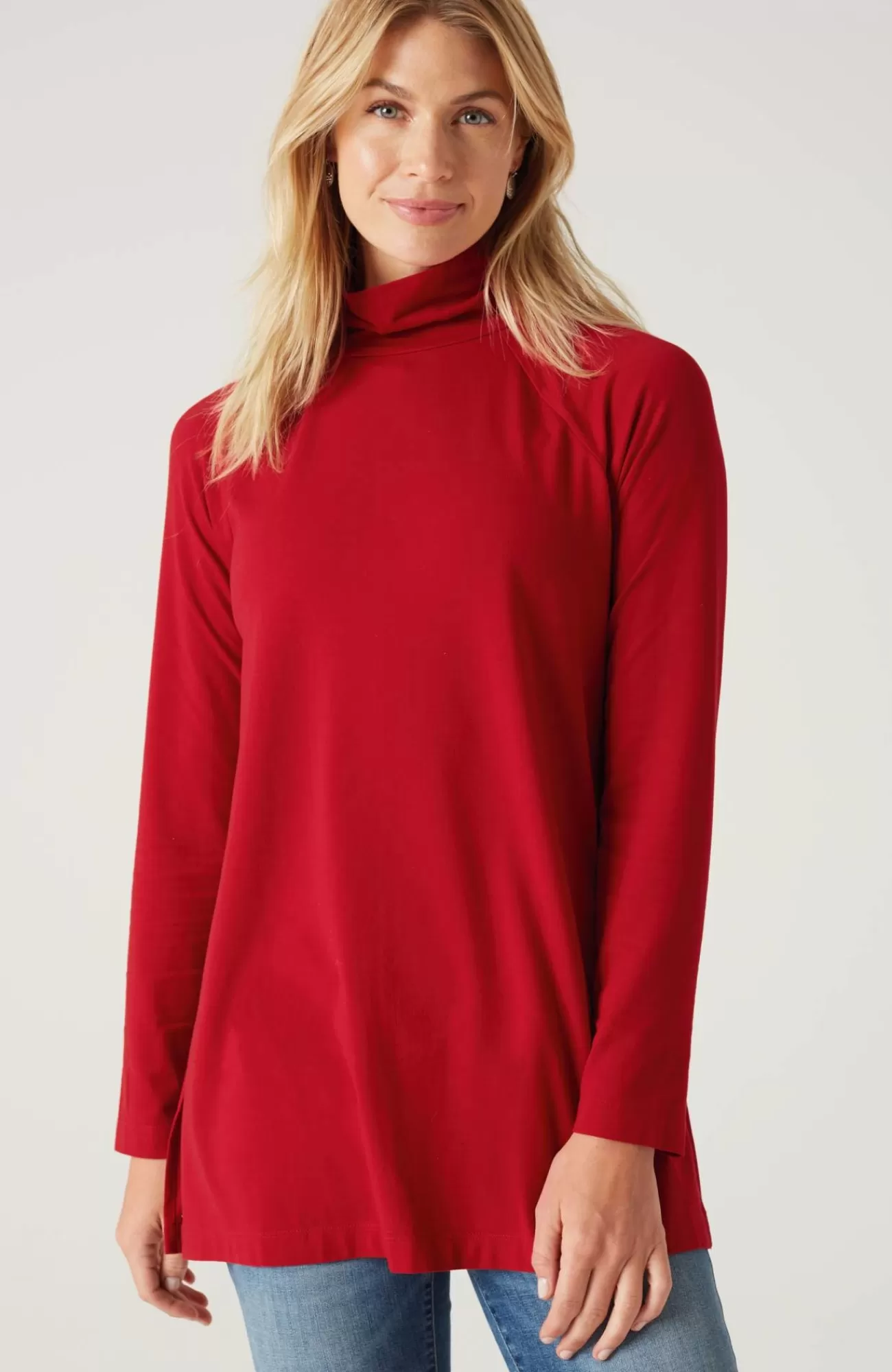 Add luxury to your every day with our exclusive silky-soft Luxe Supima® fabric. American-grown Supima® is the rarest and highest-quality extra-long-staple cotton in the world, with a smooth, luxurious finish. Our fabric has a wonderful drape (thanks to Tencel™ modal) and keeps its shape (with spandex for stretch). You’ll love our raglan-sleeve tunic on its own with leggings, pants or jeans, or layered under a cardi, pullover or jacket. Center-back seam. Side vents.