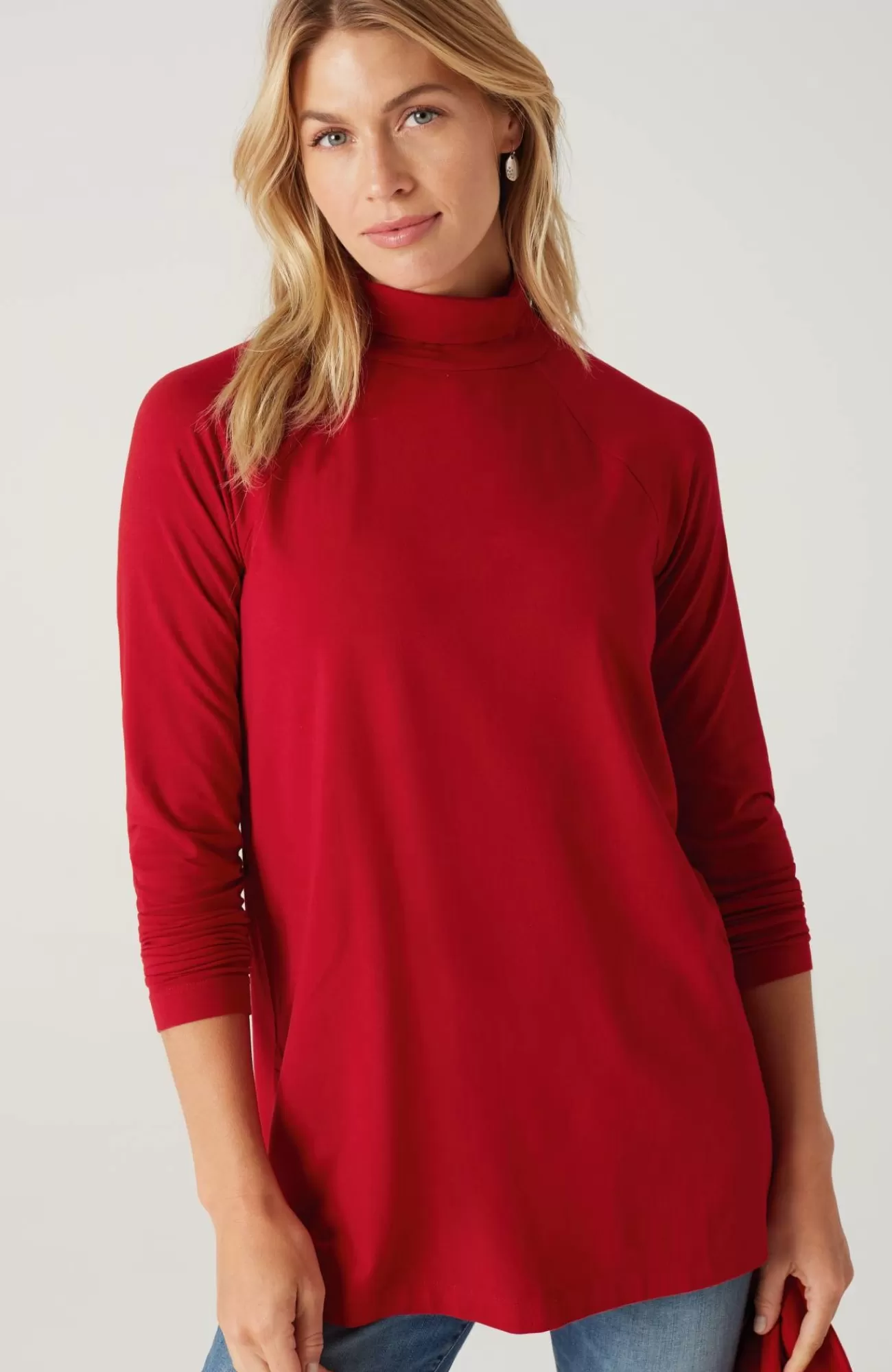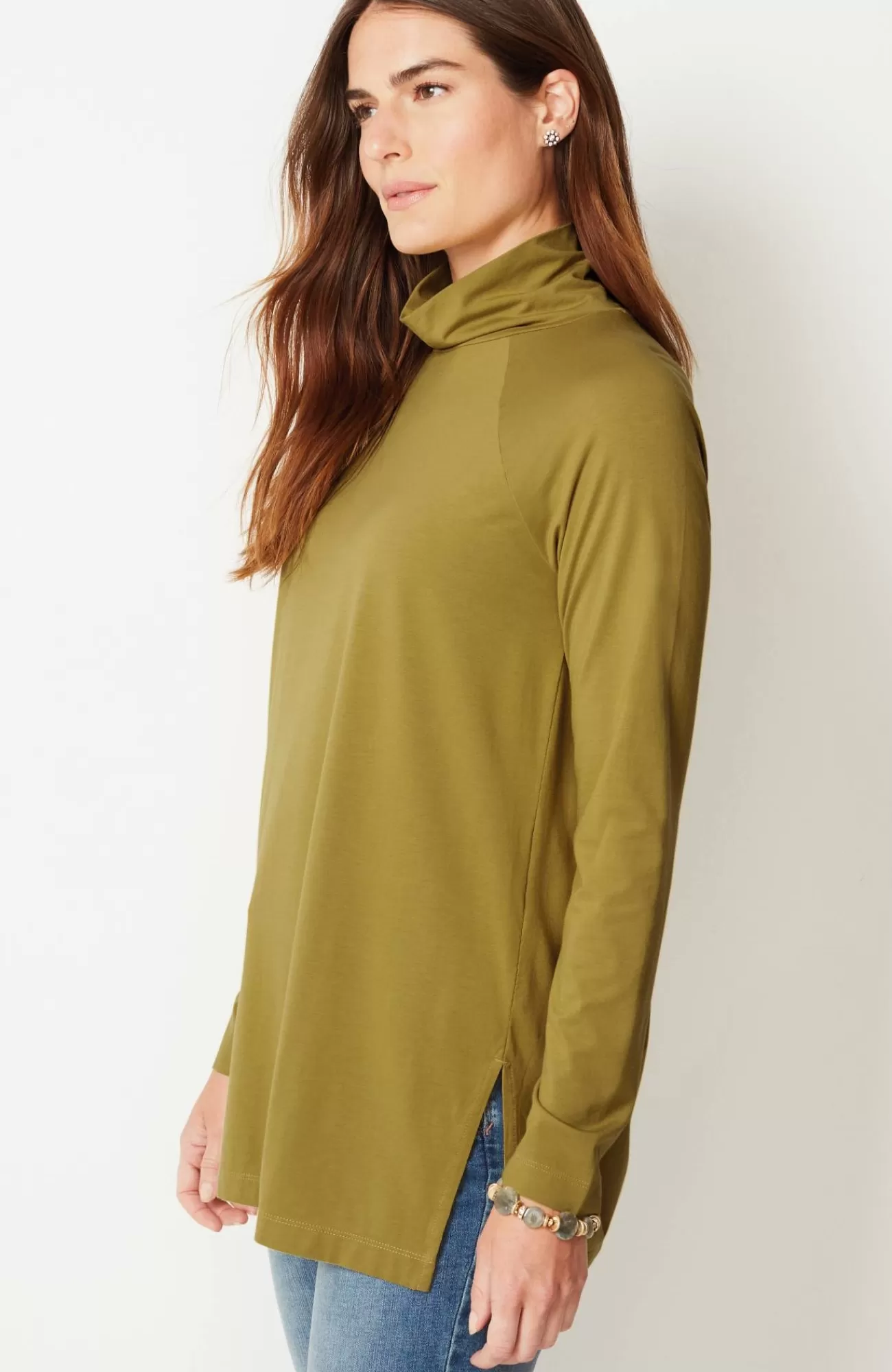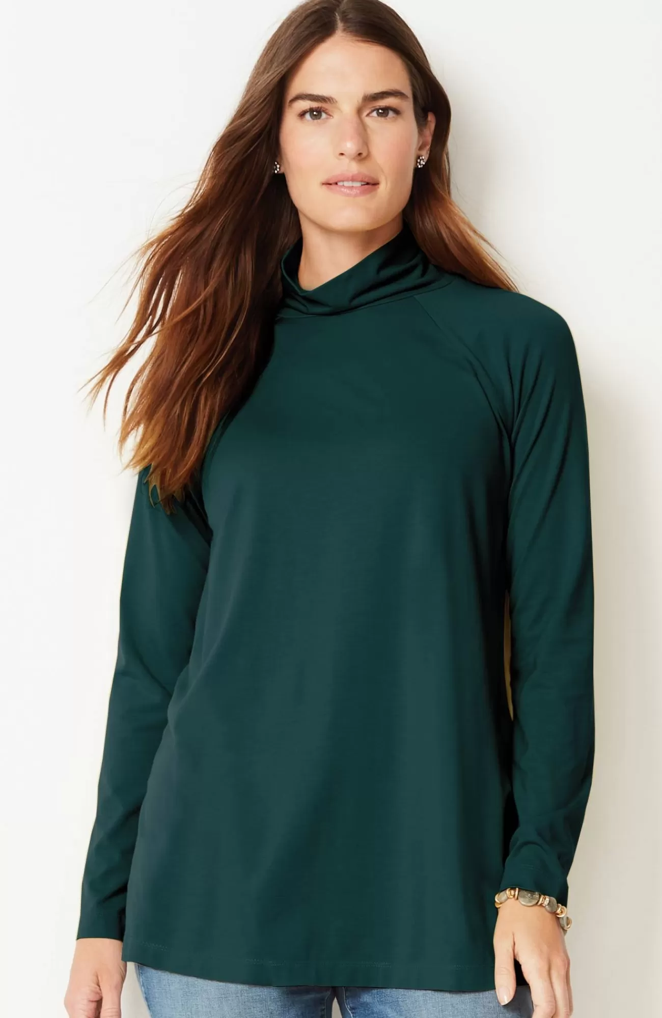 Add luxury to your every day with our exclusive silky-soft Luxe Supima® fabric. American-grown Supima® is the rarest and highest-quality extra-long-staple cotton in the world, with a smooth, luxurious finish. Our fabric has a wonderful drape (thanks to Tencel™ modal) and keeps its shape (with spandex for stretch). You’ll love our raglan-sleeve tunic on its own with leggings, pants or jeans, or layered under a cardi, pullover or jacket. Center-back seam. Side vents.