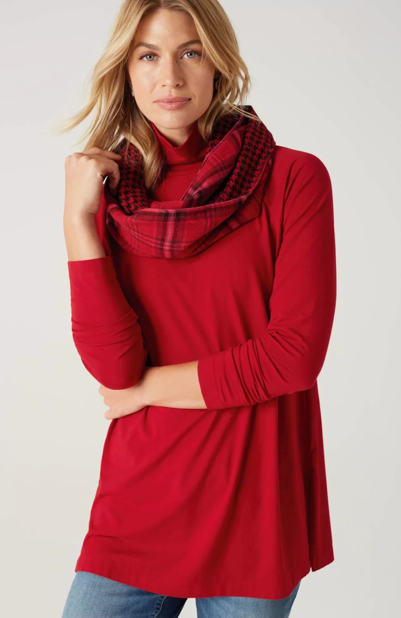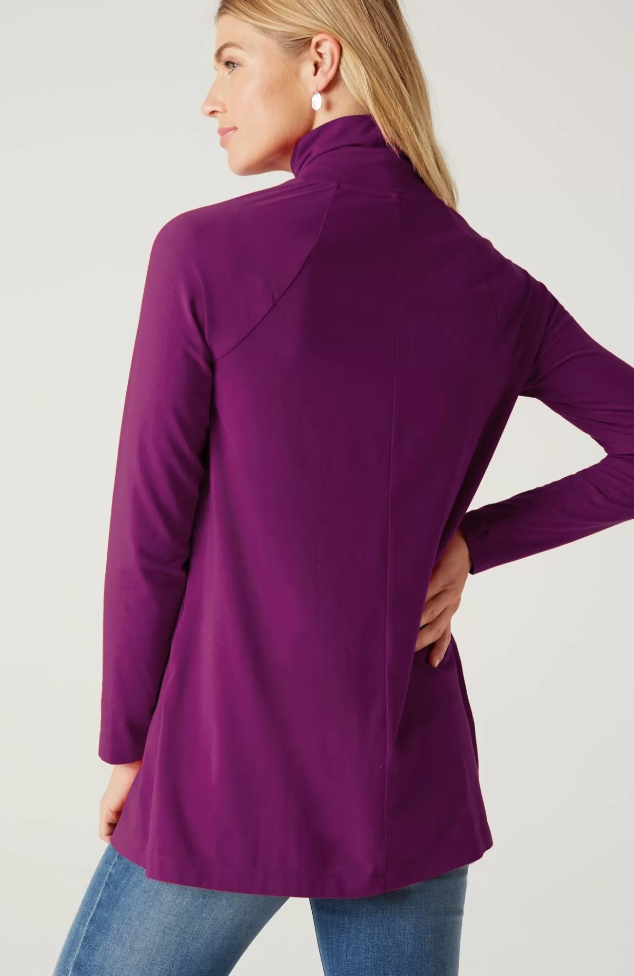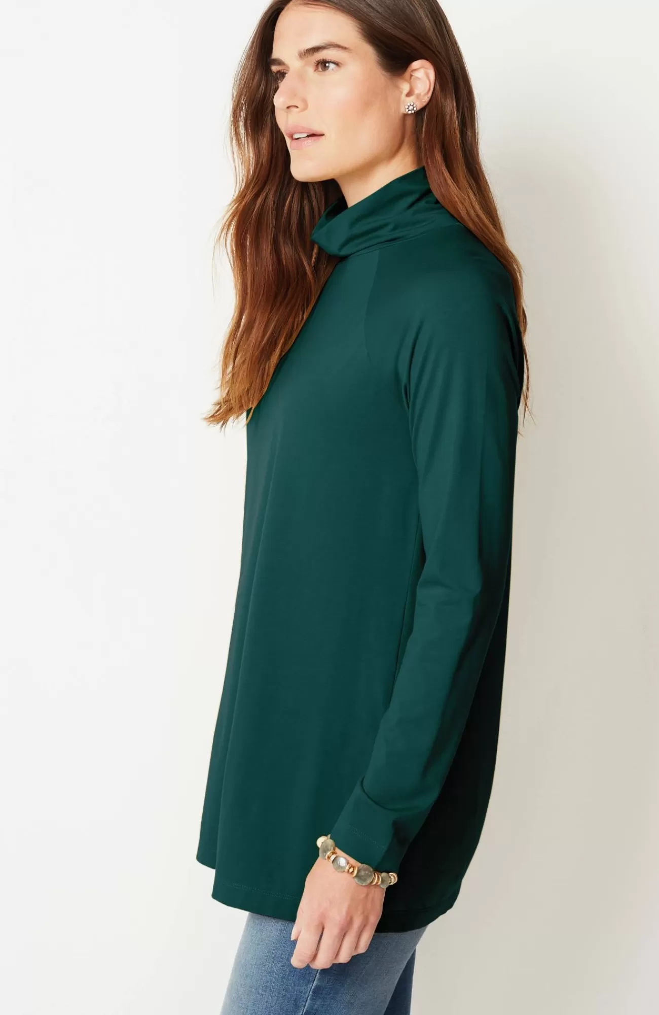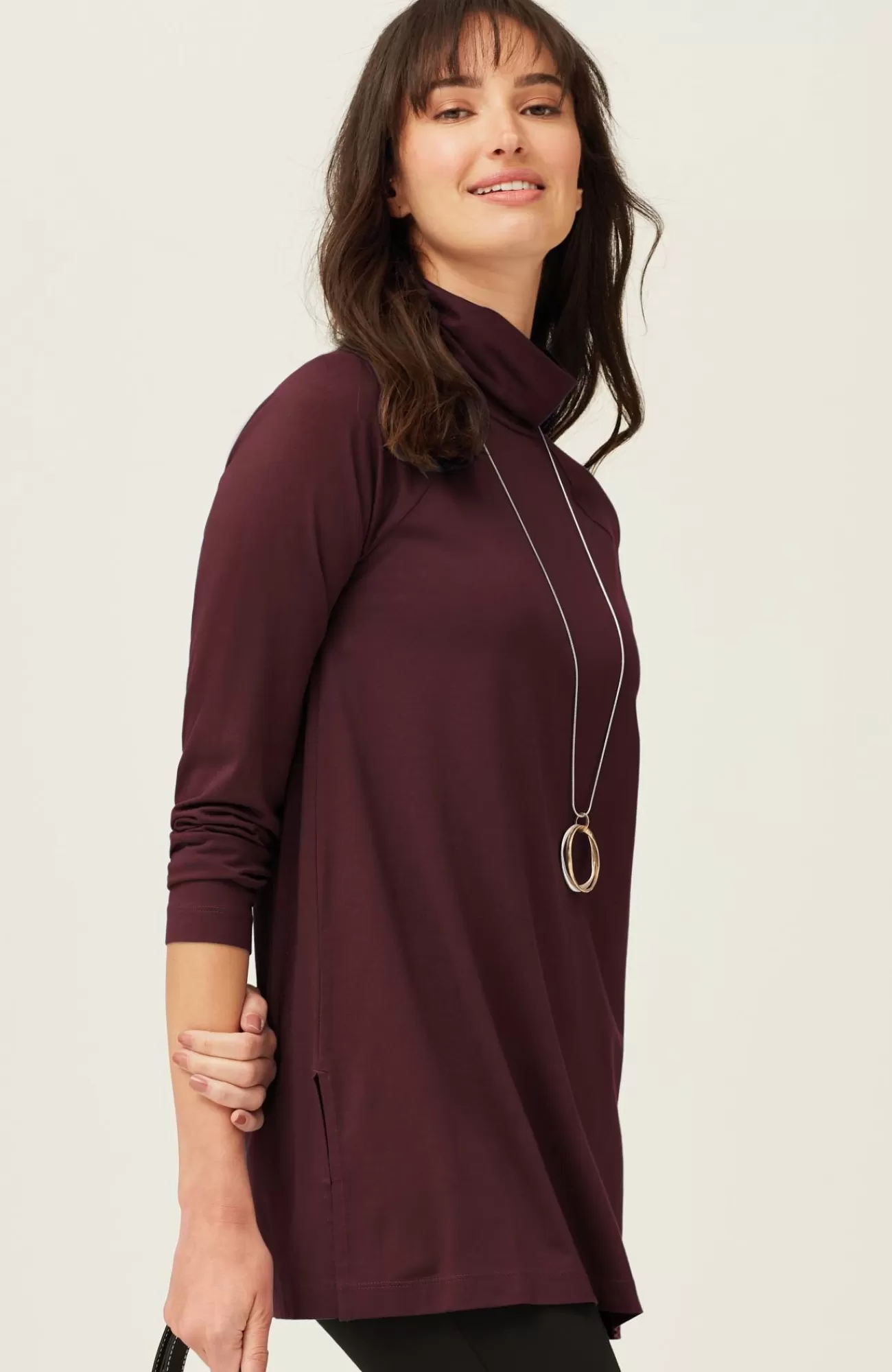 Add luxury to your every day with our exclusive silky-soft Luxe Supima® fabric. American-grown Supima® is the rarest and highest-quality extra-long-staple cotton in the world, with a smooth, luxurious finish. Our fabric has a wonderful drape (thanks to Tencel™ modal) and keeps its shape (with spandex for stretch). You’ll love our raglan-sleeve tunic on its own with leggings, pants or jeans, or layered under a cardi, pullover or jacket. Center-back seam. Side vents.