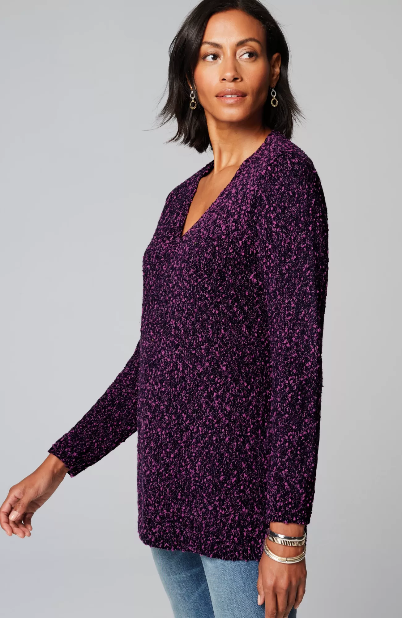 Designed with multicolored slub yarns, our knit pullover looks as cozy as it feels. With its easy shape and side vents, it's a seasonal staple paired with jeans and pants of any shape.