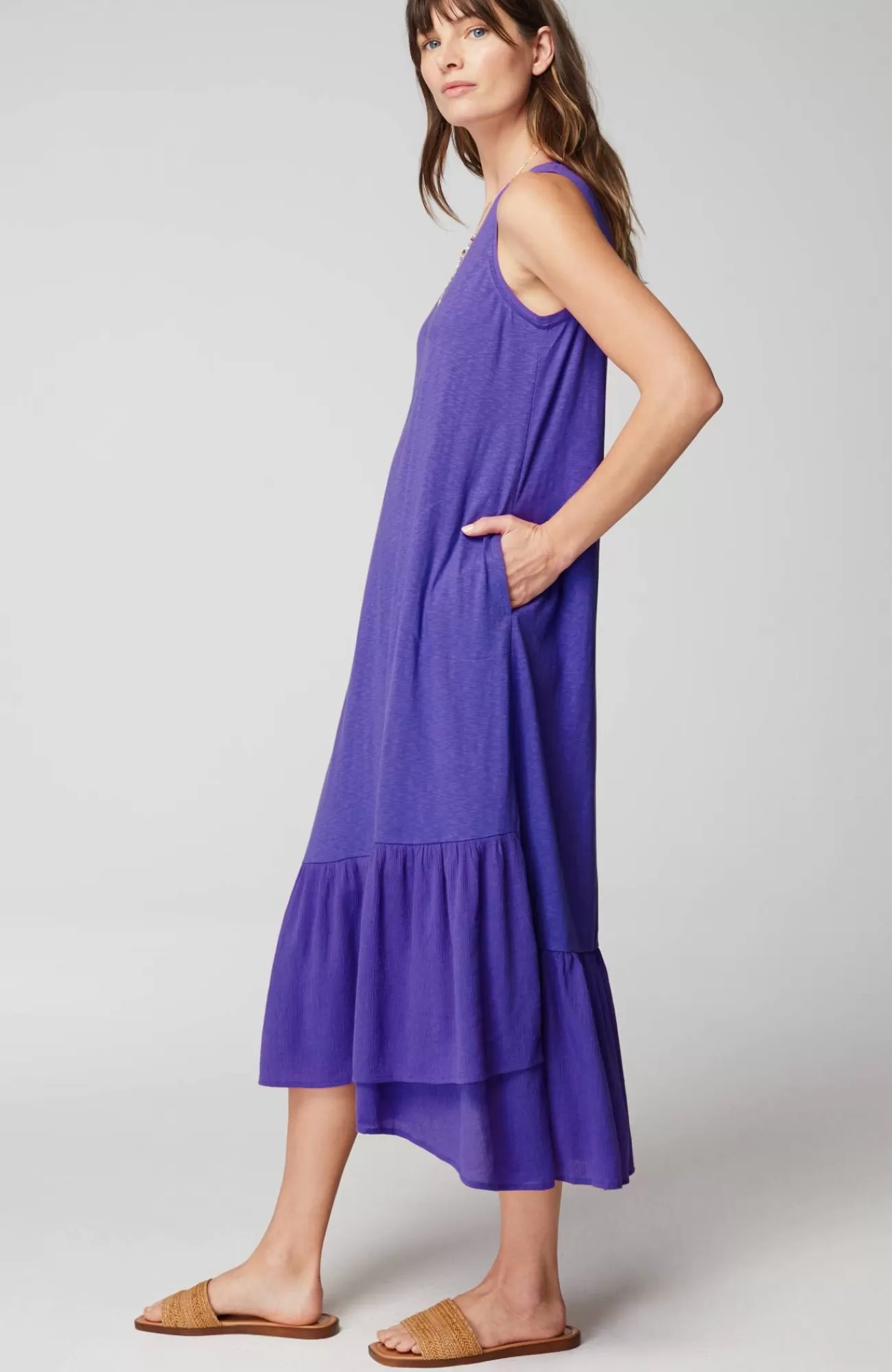 It's everything we want and more from a summer dress: vibrant color that stands out, a soft cotton blend that keeps you cool, and an easy shape that always feels good. The woven flounced hemline adds a touch of movement and contrasting texture. Plus, don't forget the on-seam pockets!