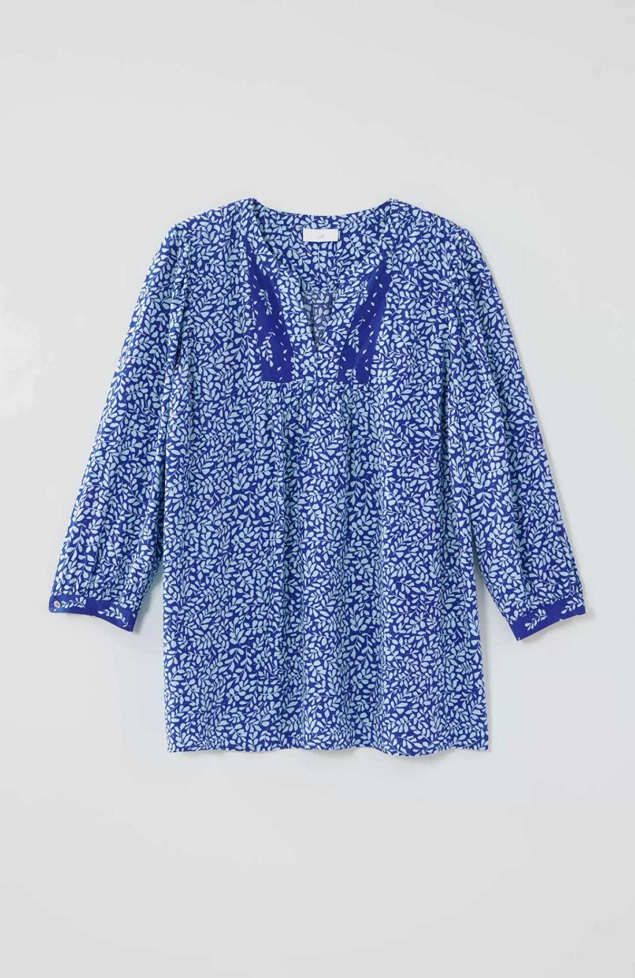 Our A-line popover features a two-toned mixed print with soft shirring at the front bib and cuffs. The pleated back adds a feminine touch. Style this vibrant top over your favorite jeans or pants for a touch of color and fun.