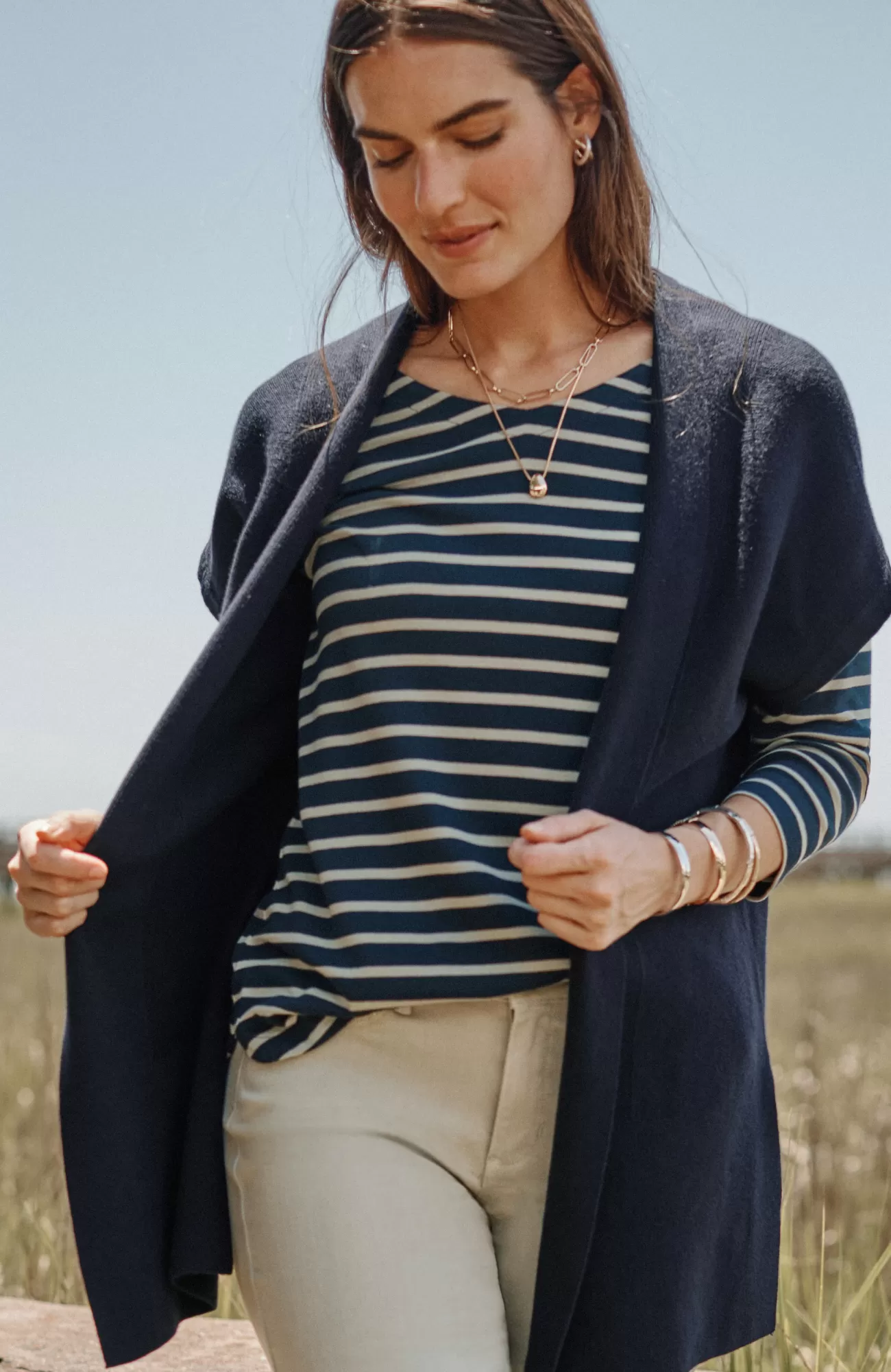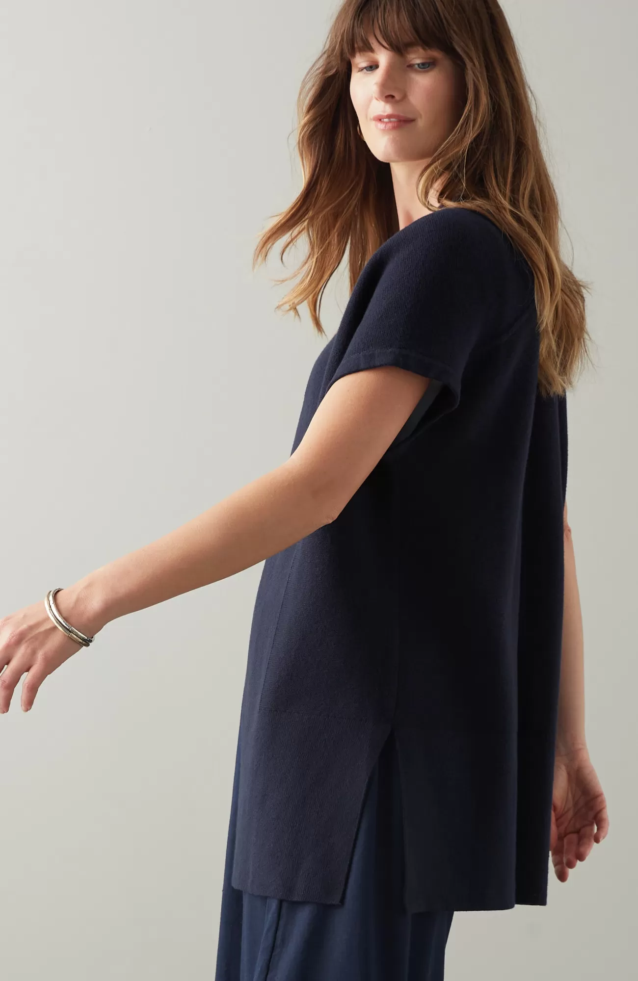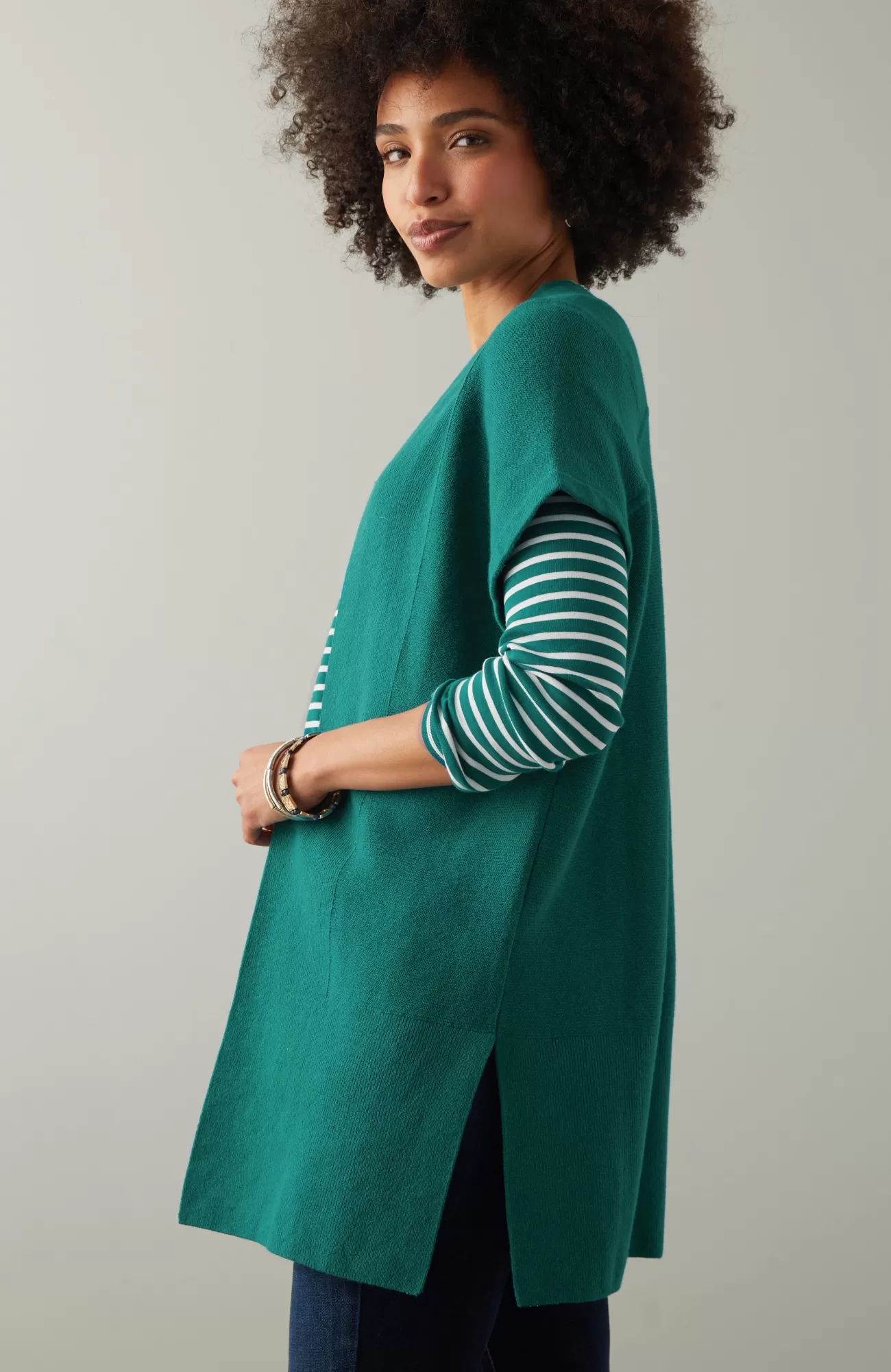 Meet your most versatile layer: the ease of a vest with the warmth of a sweater. Designed in a soft cotton blend with subtle textures and side vents. Whether you style it over a dress or a top and jeans, it's sure to be on rotation in your wear-now-or-later wardrobe.