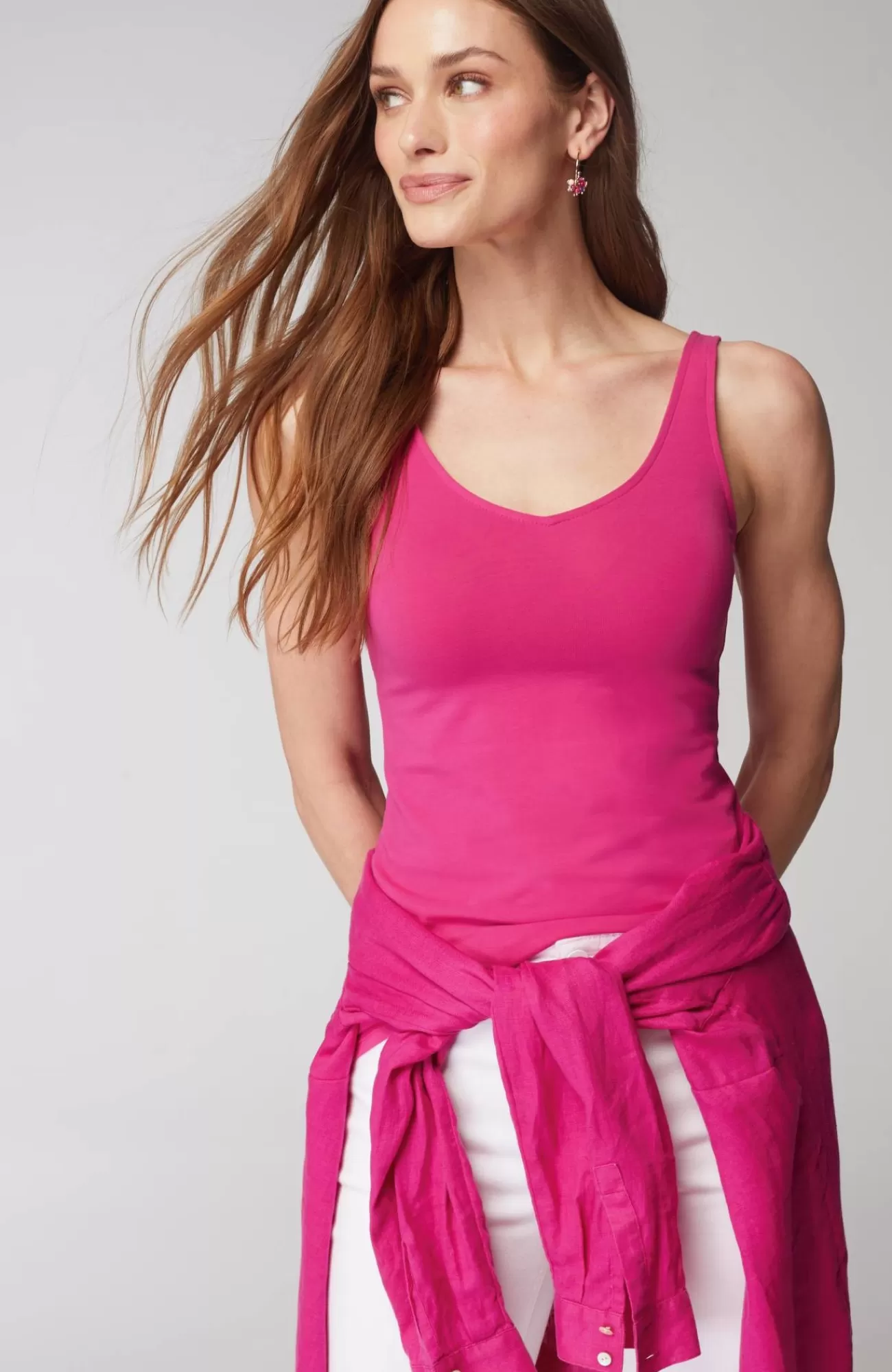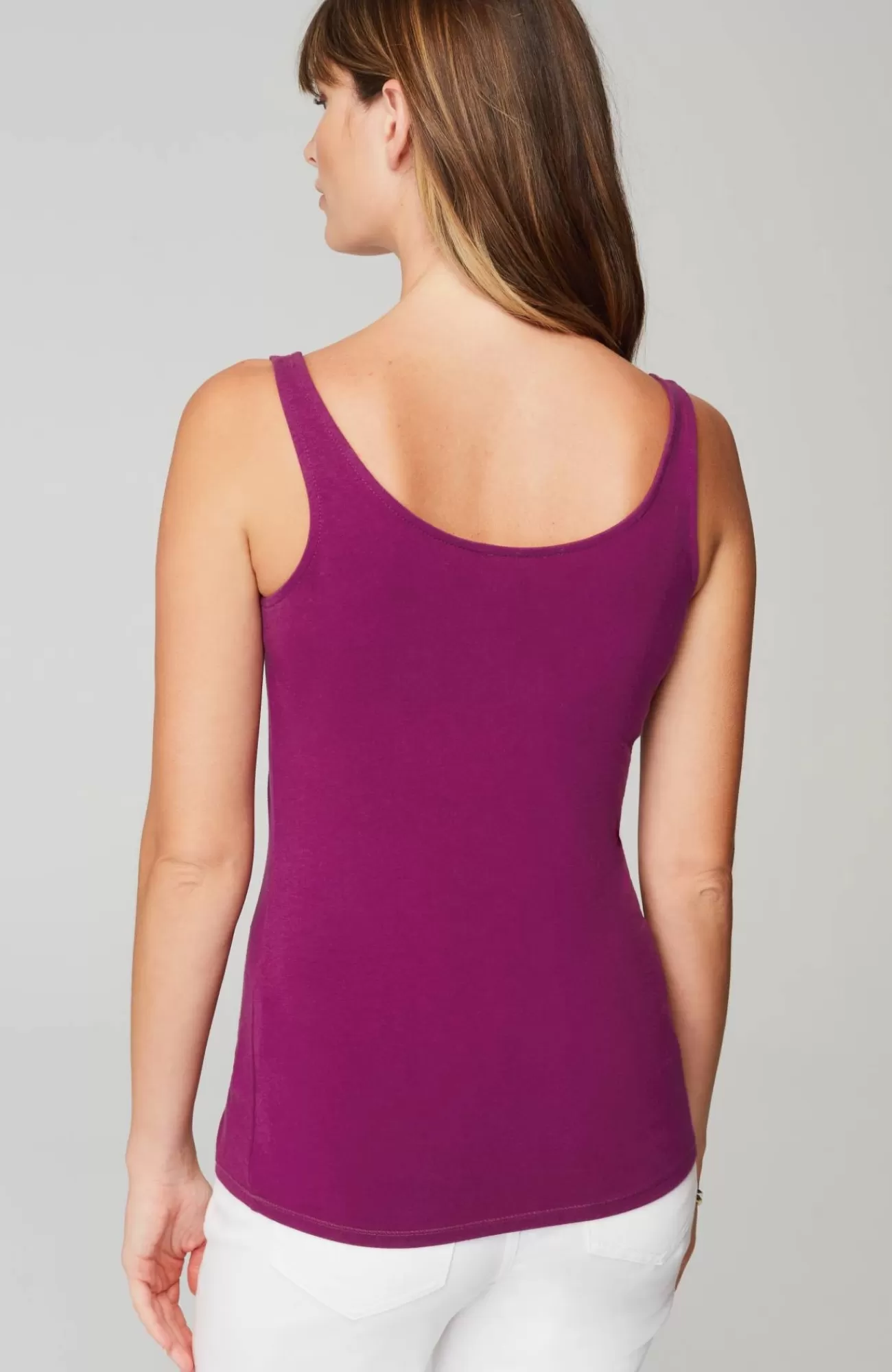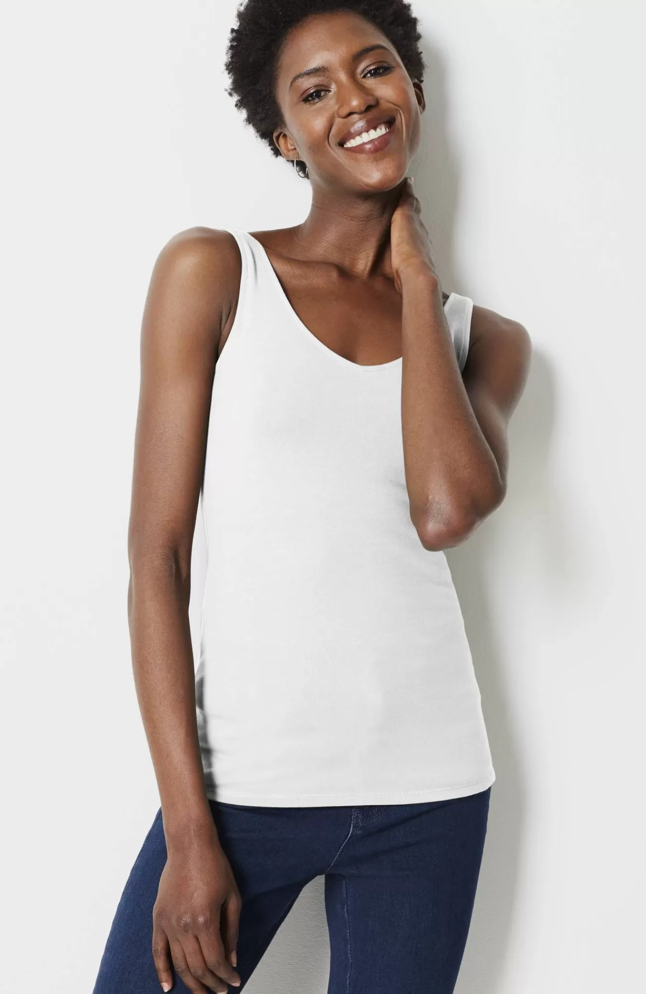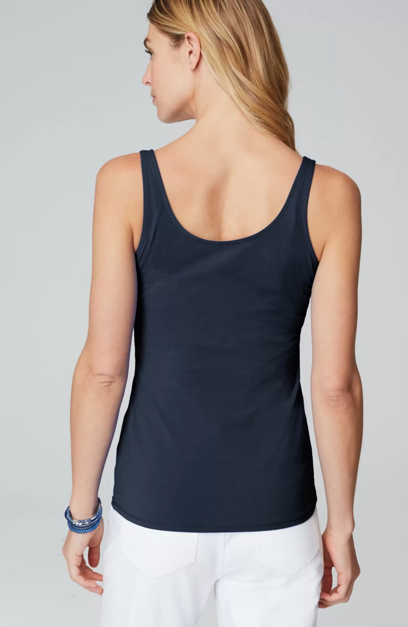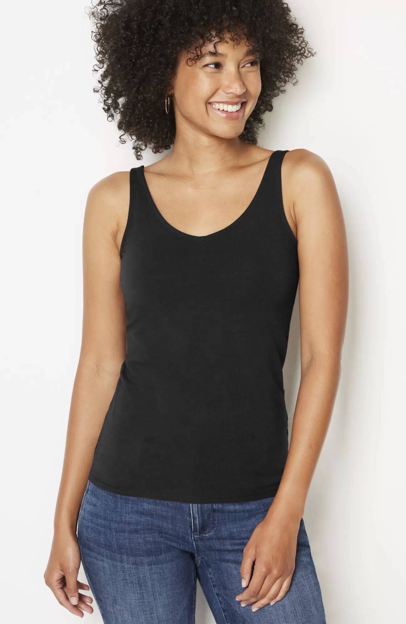 Our versatile two-in-one knit tank has a scoop neckline on one side and a V-neckline on the other so you can wear it either way. It’s the same fit and fabric as our much-loved Perfect Tank, with updated shoulder straps and the added V-neck option. Easy-to-remove interior tag.